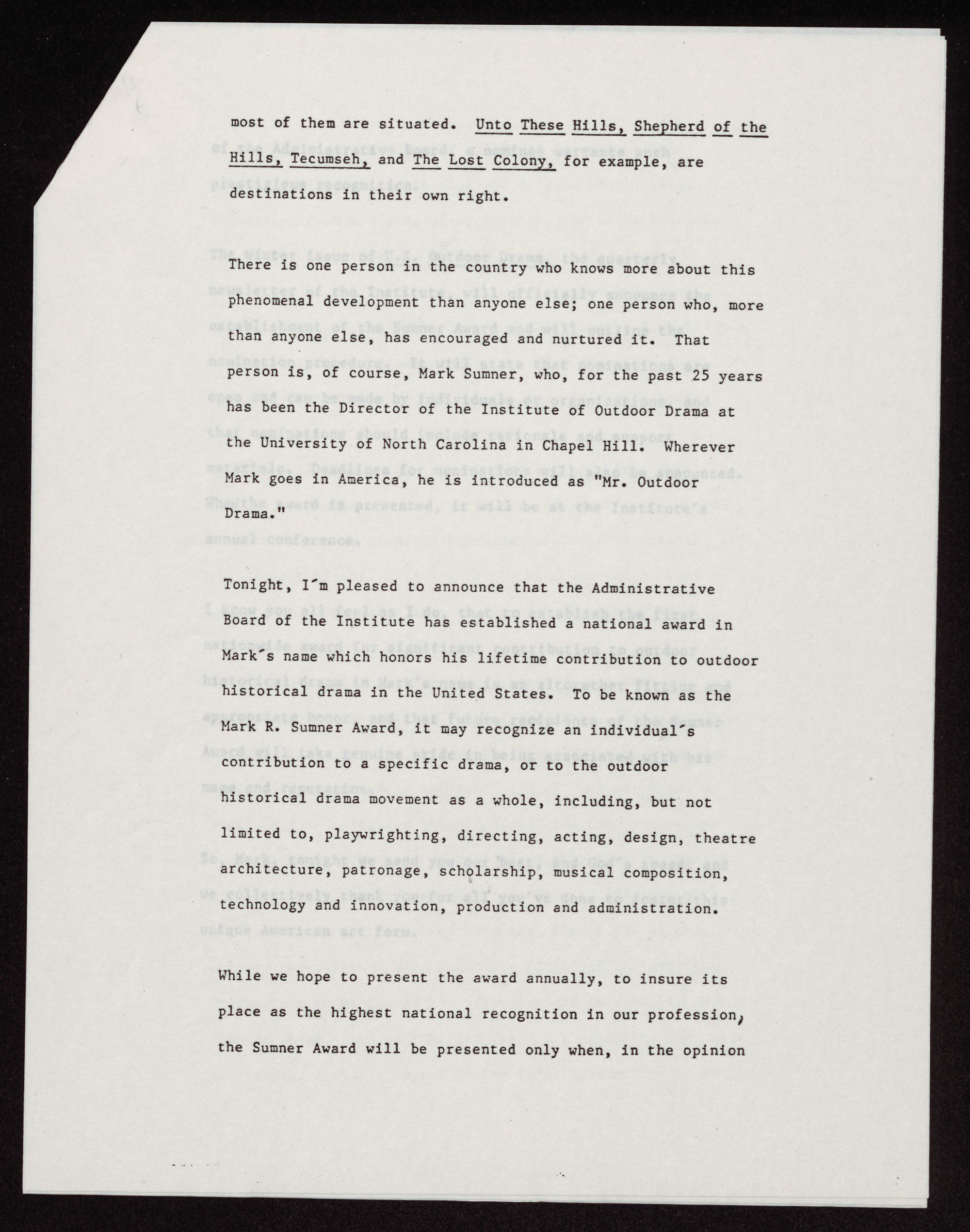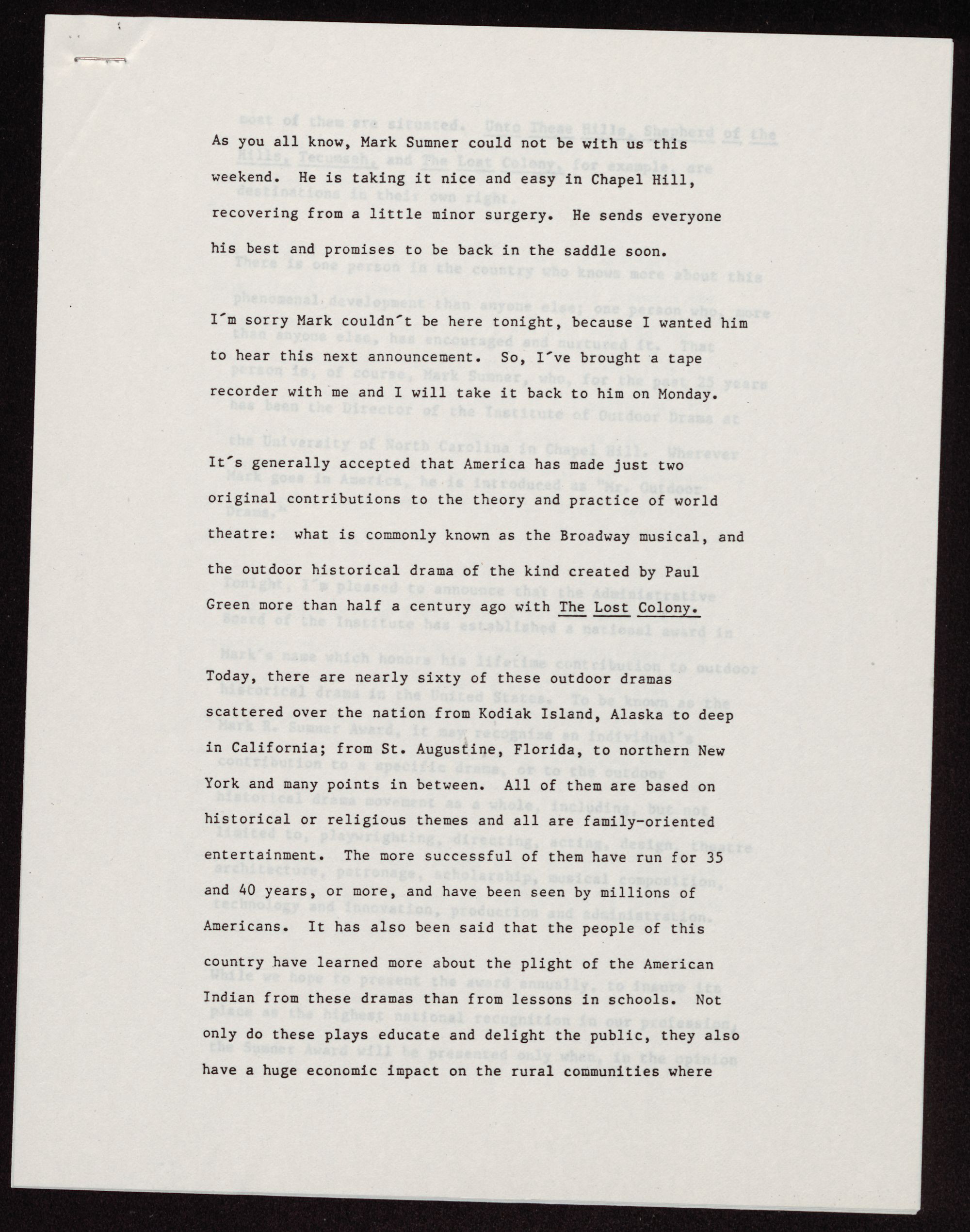 Hills, Tecumseh, and The Lost Colony, for example, are