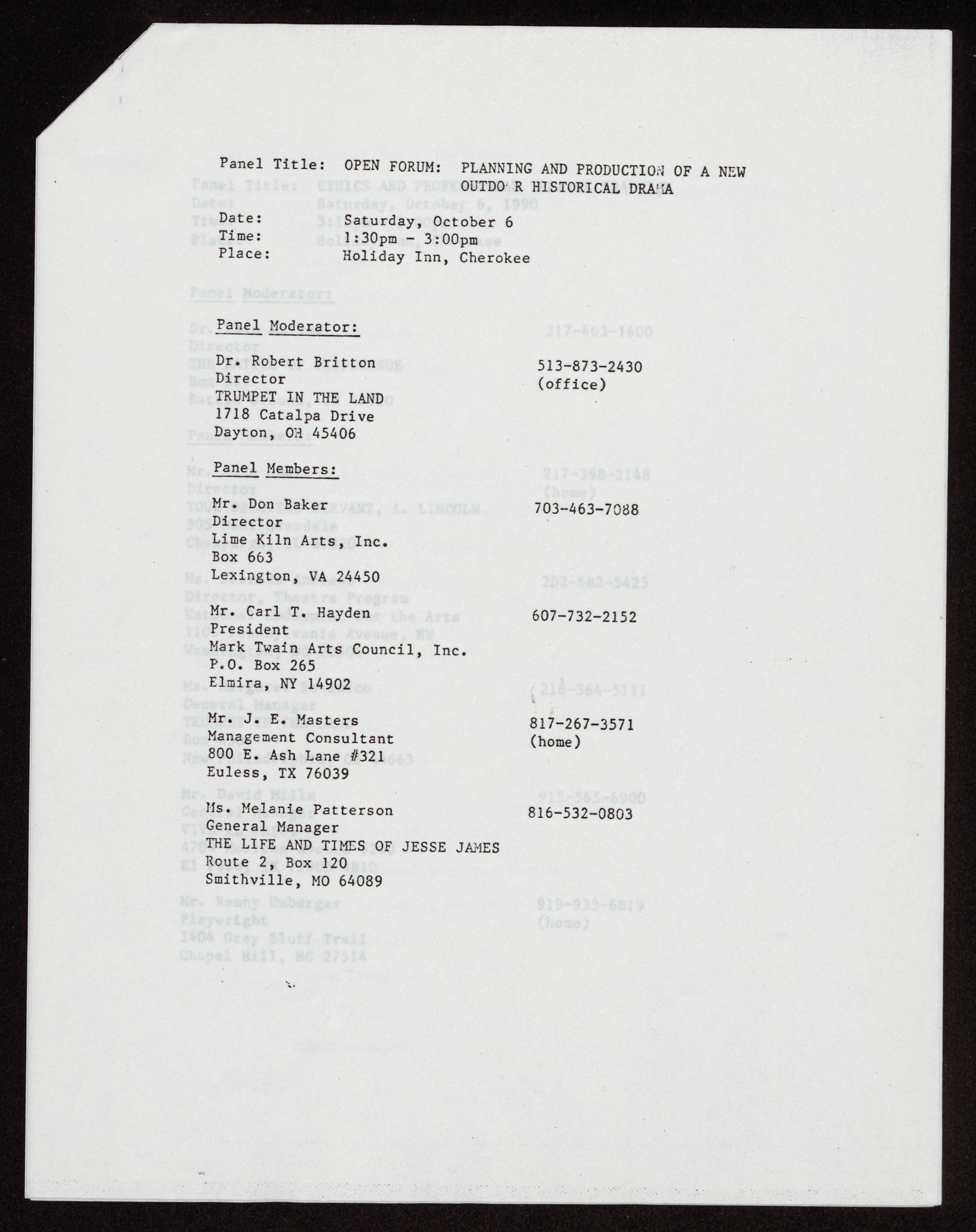 Open Forum: The Planning and Development of a New Outdoor Historical Drama