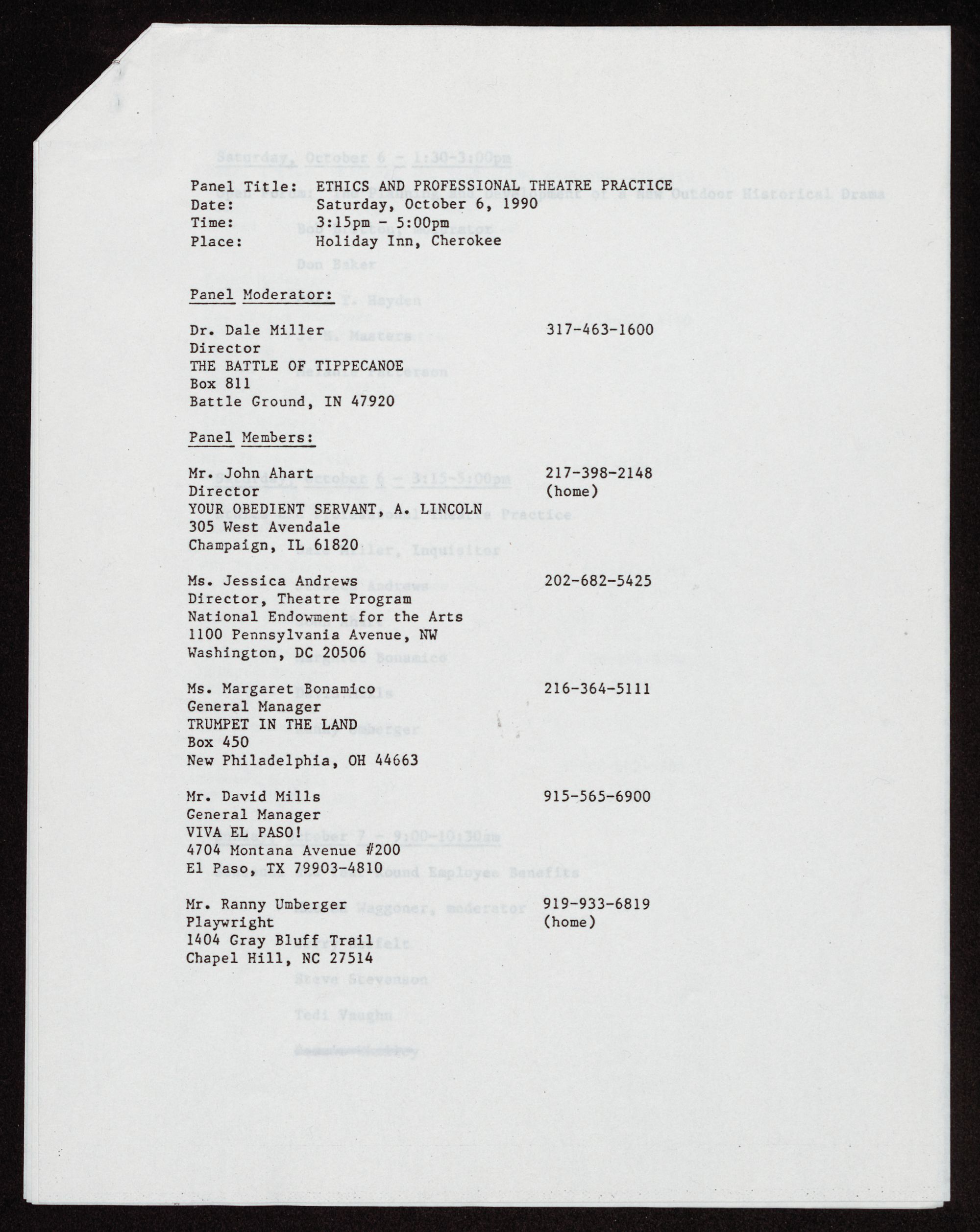 Panel Title: ETHICS AND PROFESSIONAL THEATRE PRACTICE
