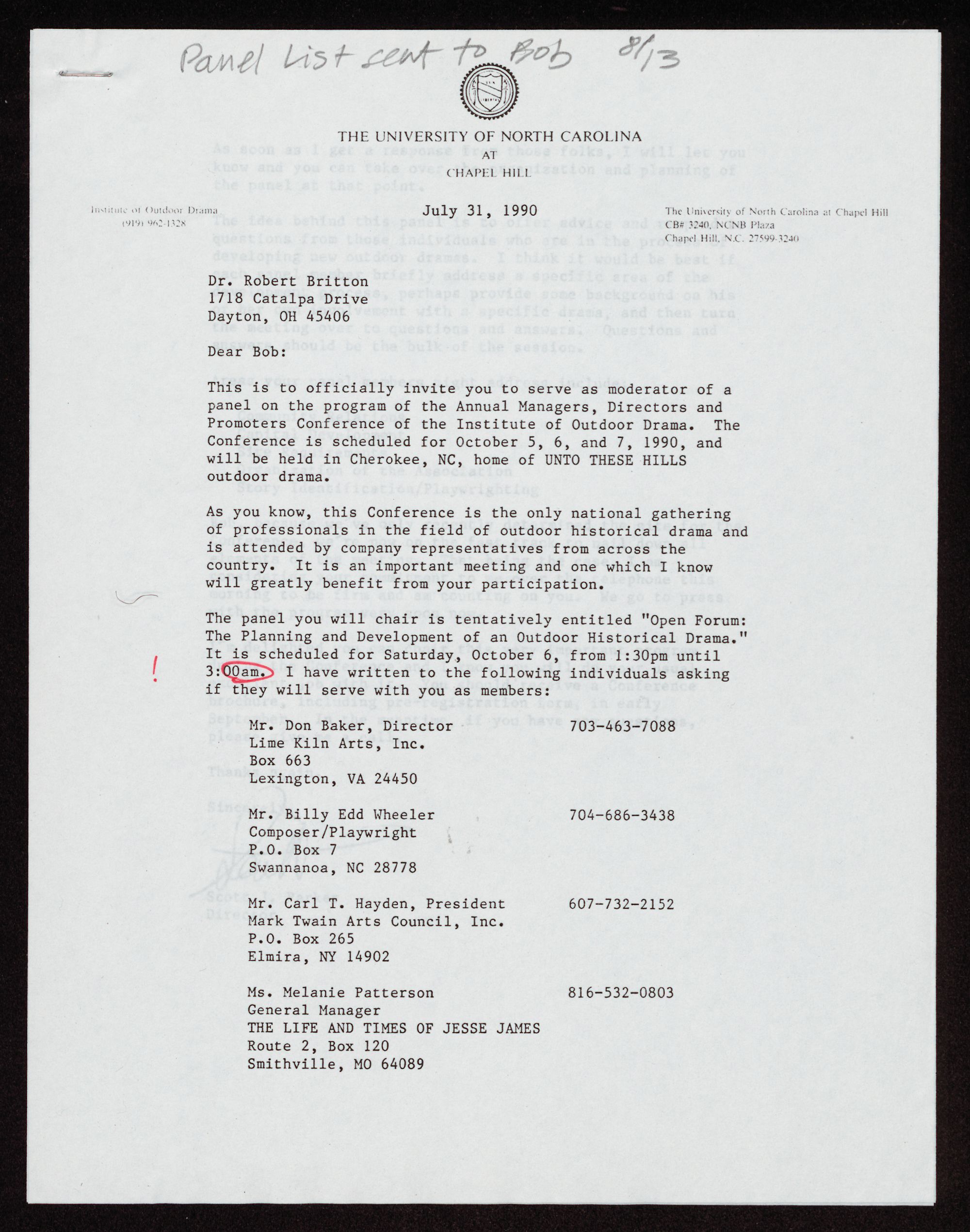 Promoters Conference of the Institute of Outdoor Drama. The