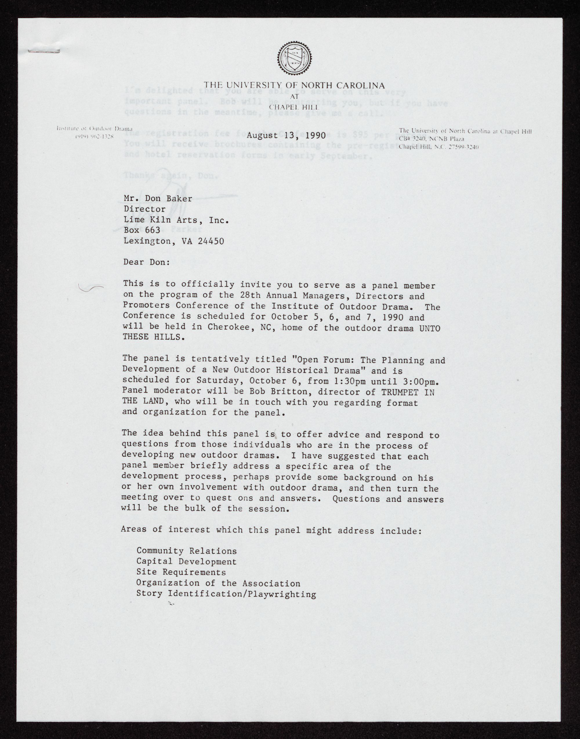 will be held in Cherokee, NC, home of the outdoor drama UNTO