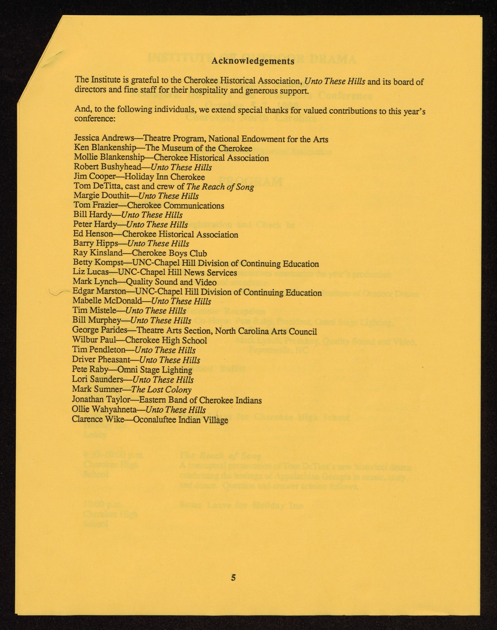 The Institute is grateful to the Cherokee Historical Association, Unto These Hills and its board of