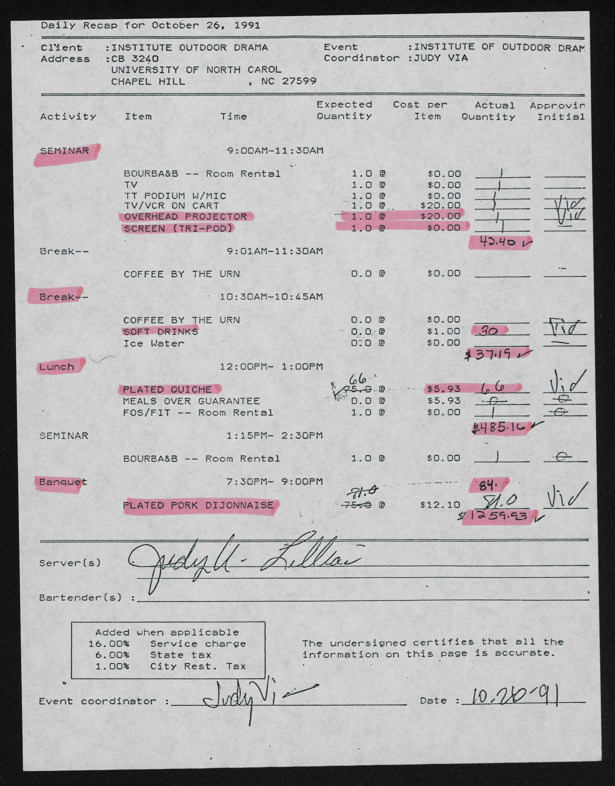 . Address :CB 3240 Coordinator :JUDY VIA