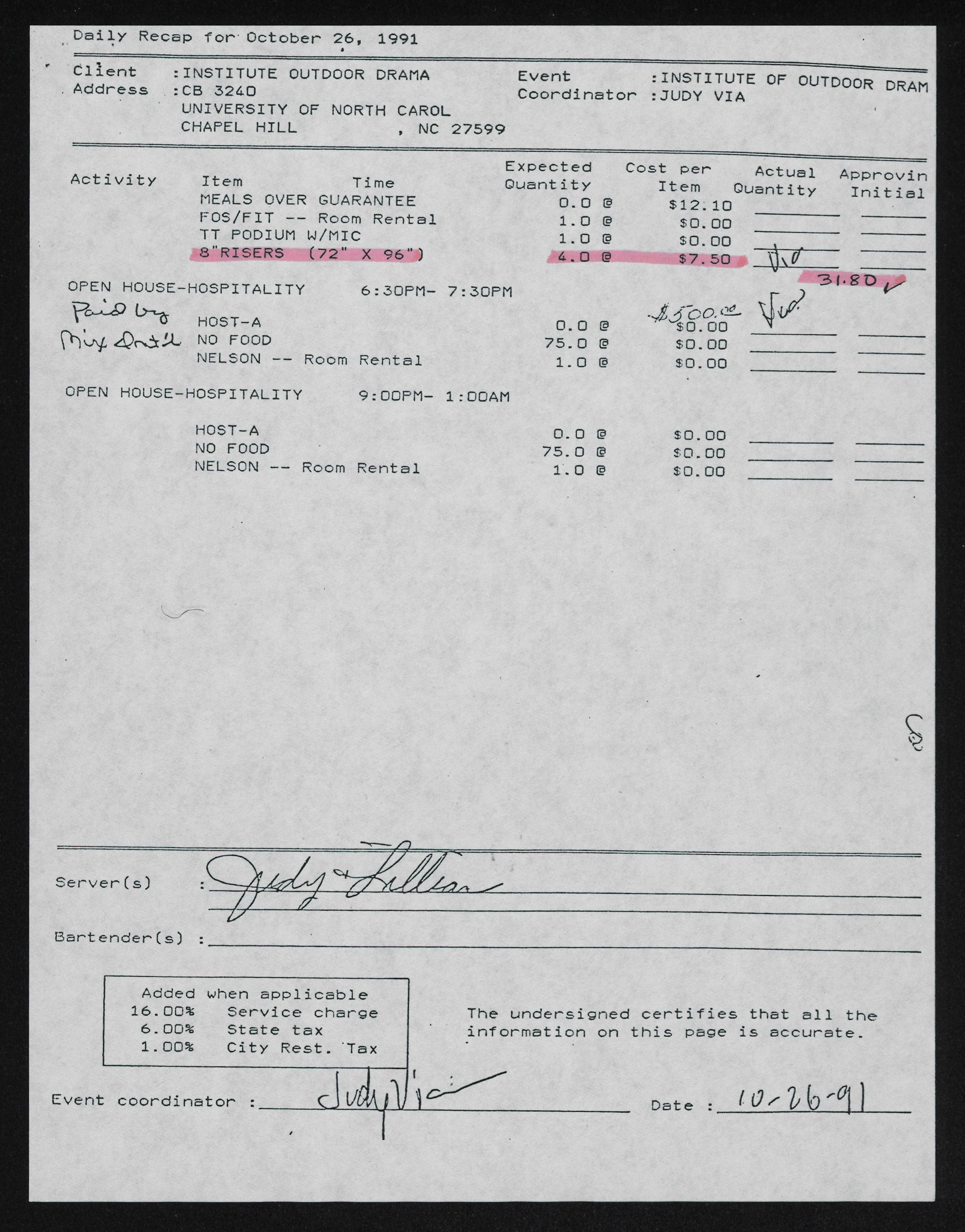 f Client : INSTITUTE OUTDOOR DRAMA Event :INSTITUTE OF OUTDOOR DRAM