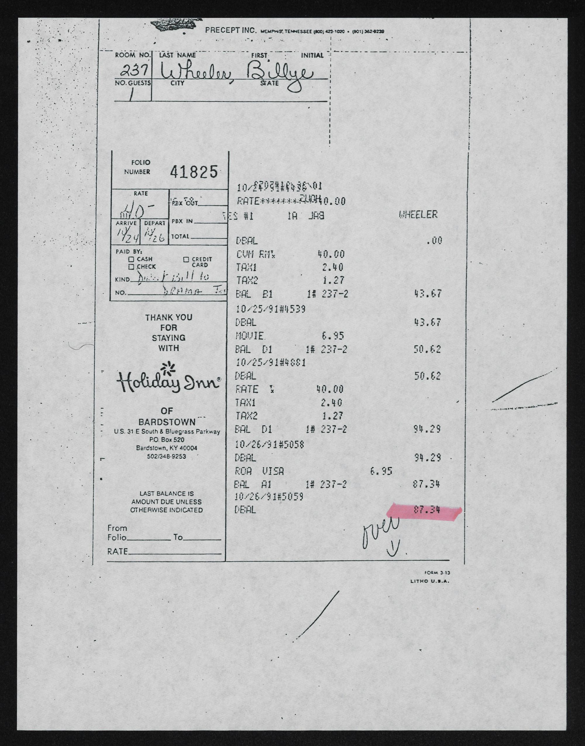 NO. GUESTS CITY STATE