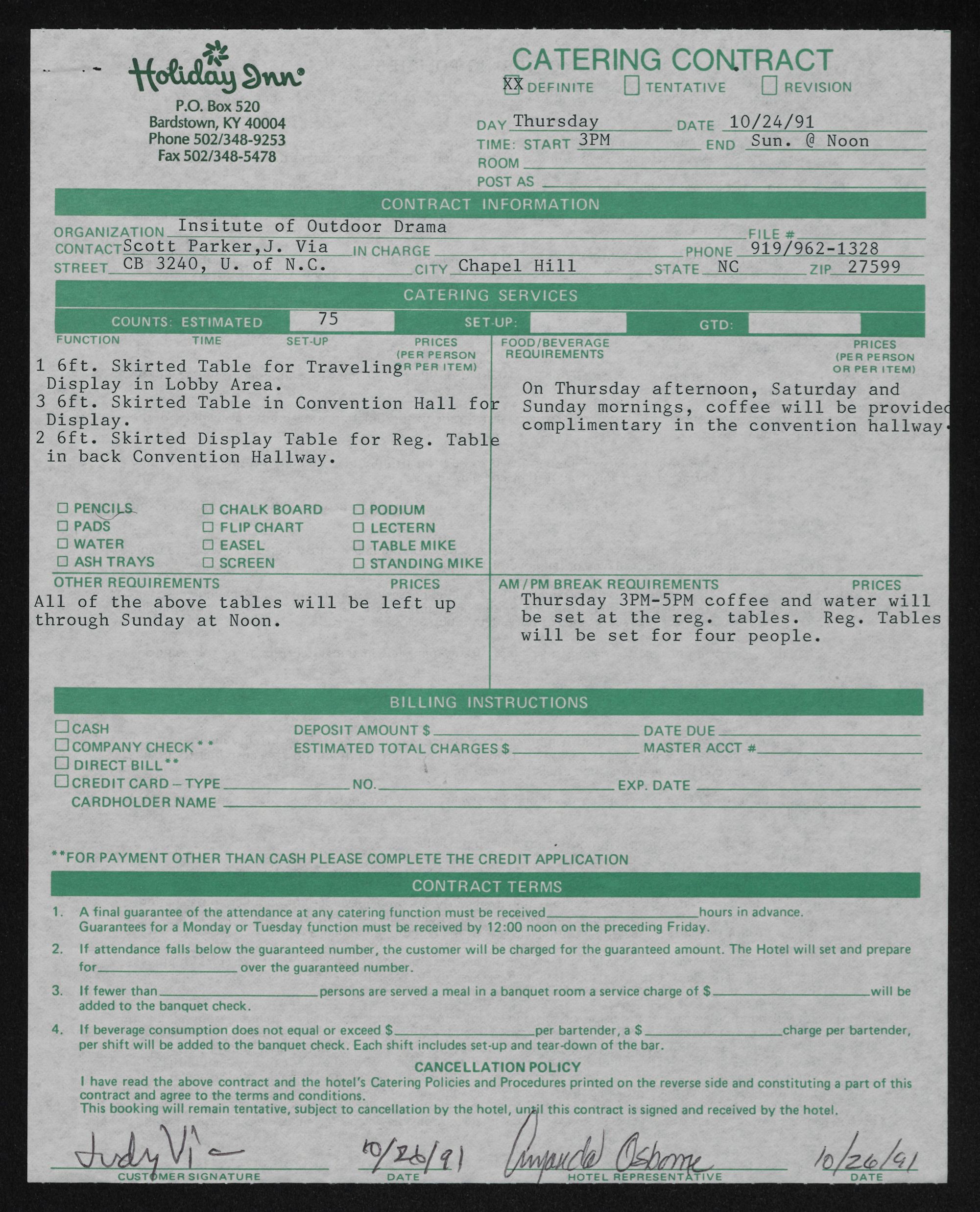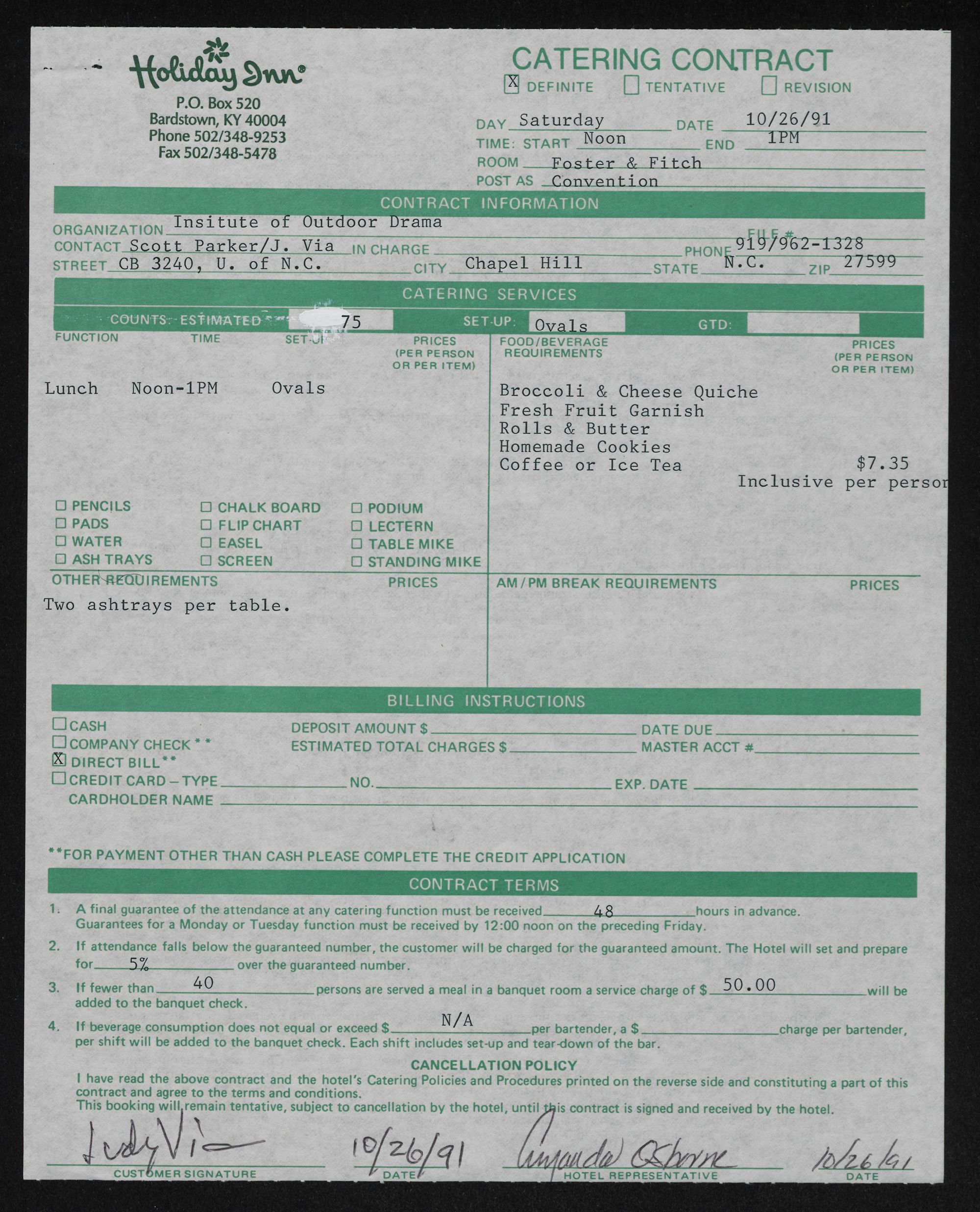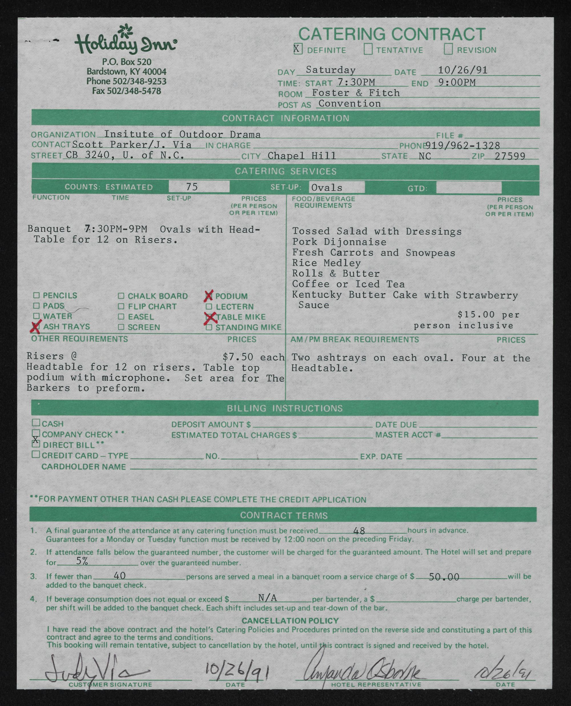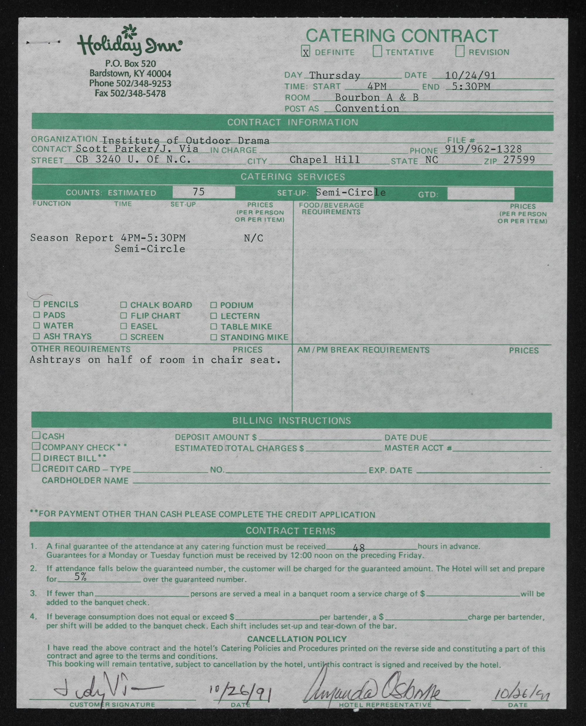 | have read the above contract and the hotel's Catering Policies and Procedures printed on the reverse side and constituting a part of this