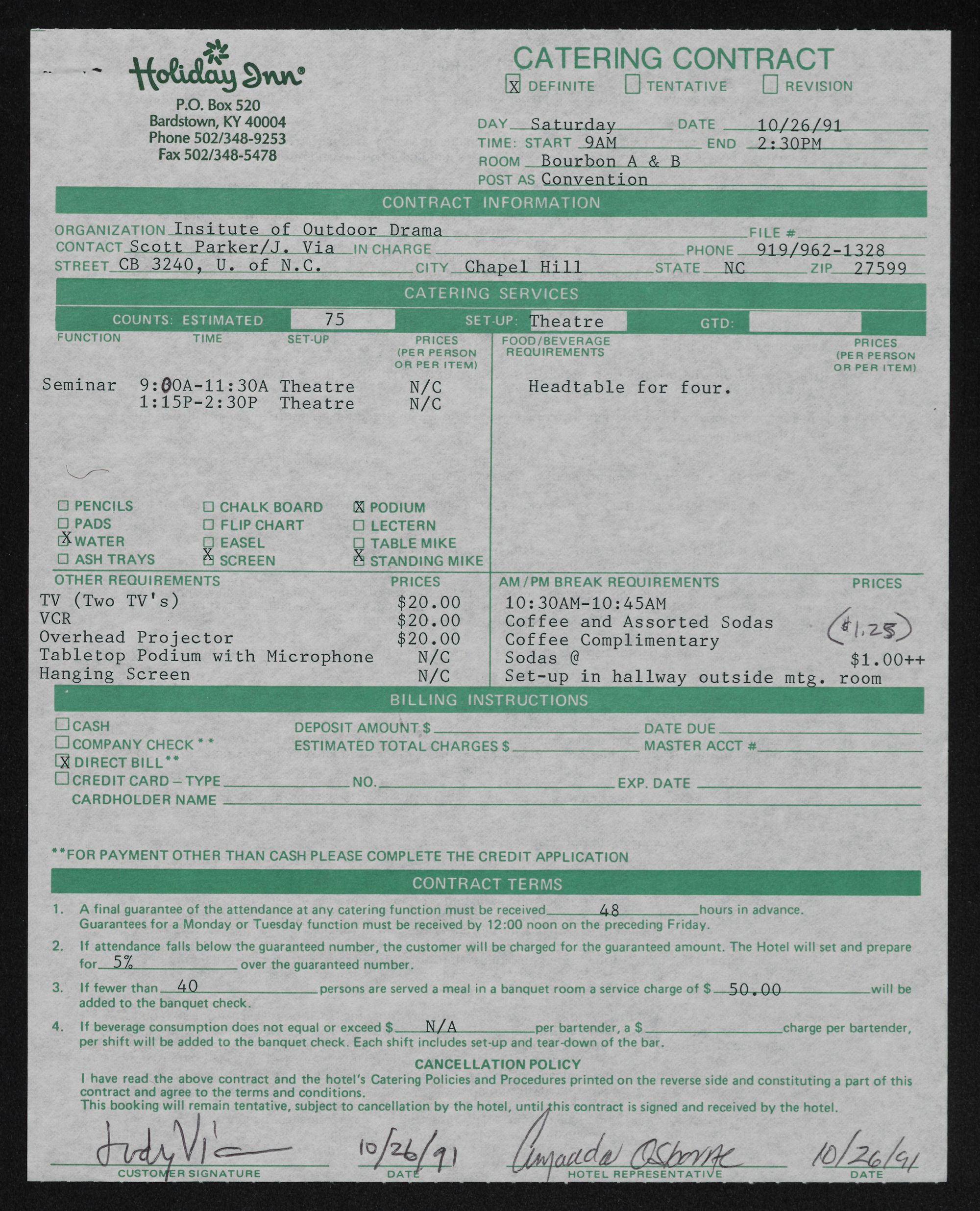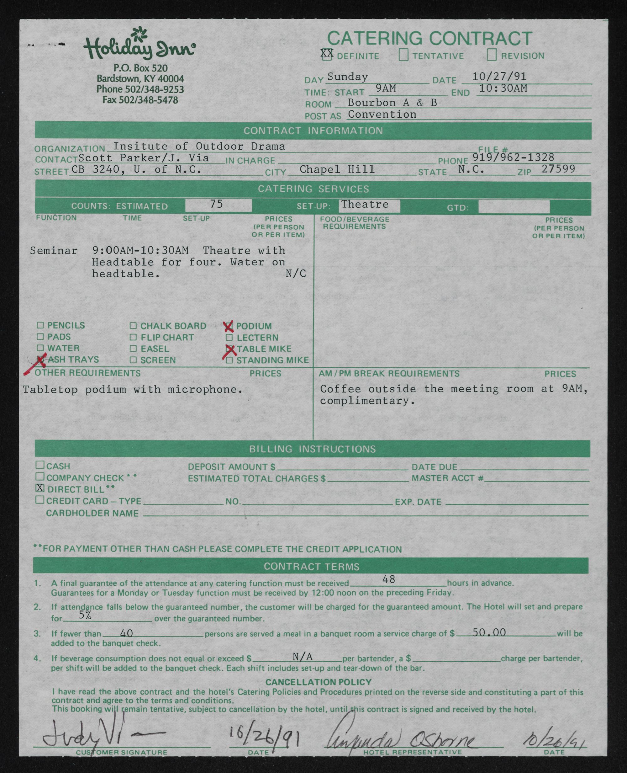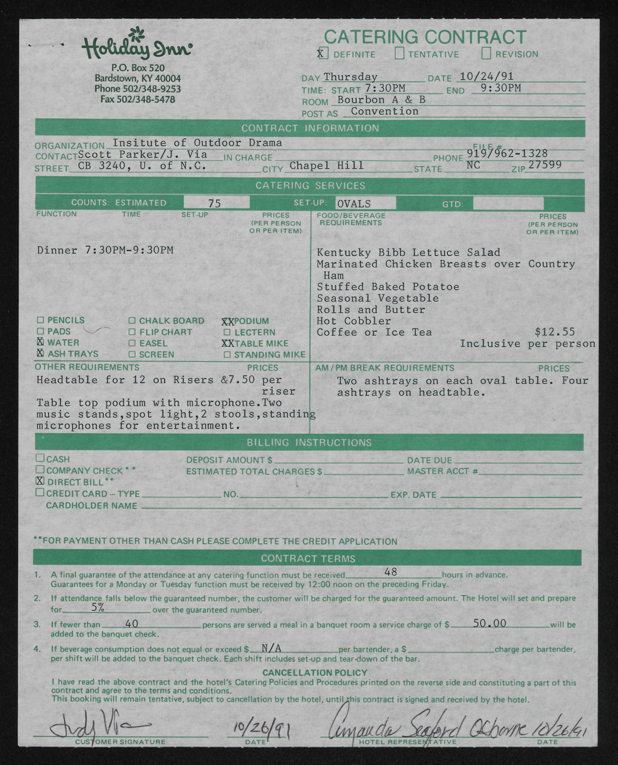 | have read the above contract and the hotel??Ts Catering Policies and Procedures printed on the reverse side and constituting a part of this