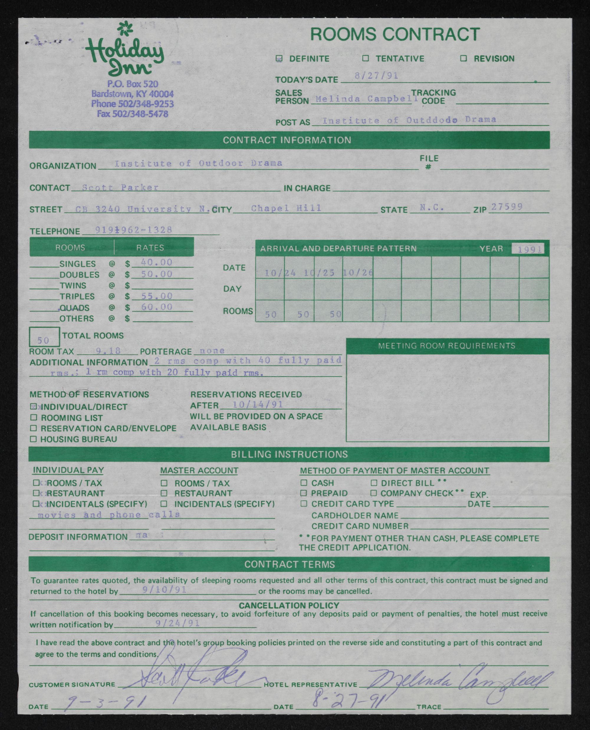 This booking will remain tentative, subject to cancellation by the hotel, until this contract is signed and received by the hotel.