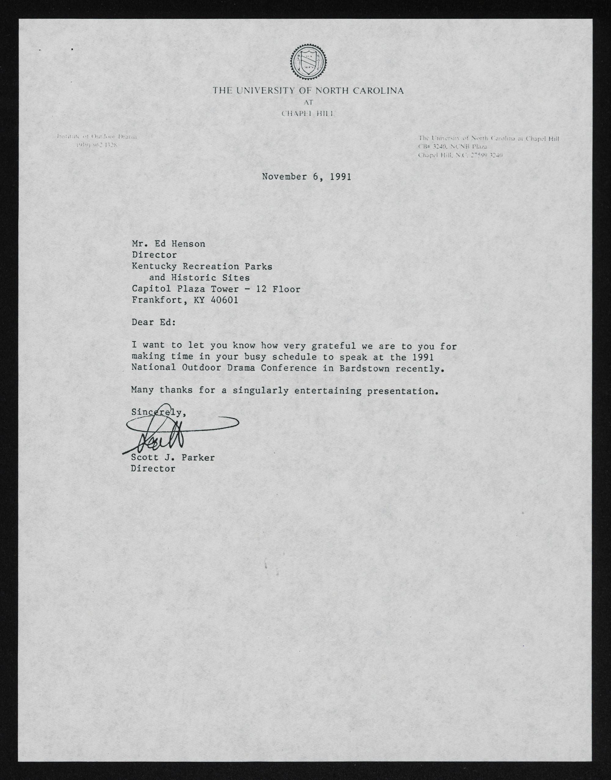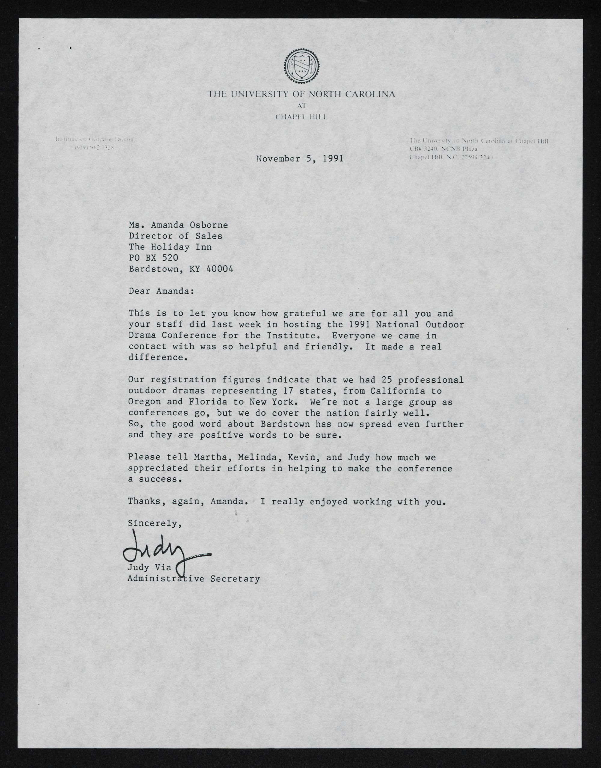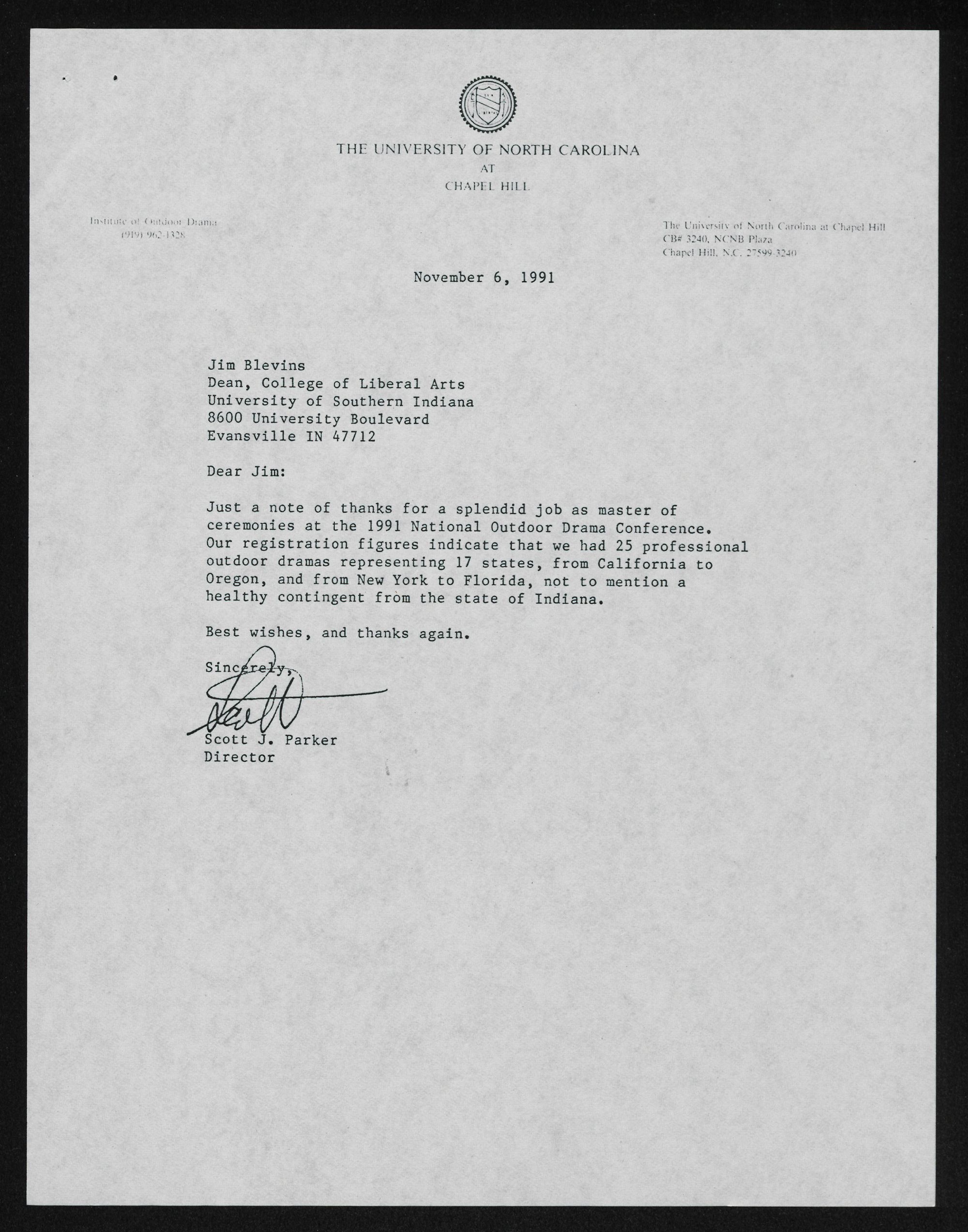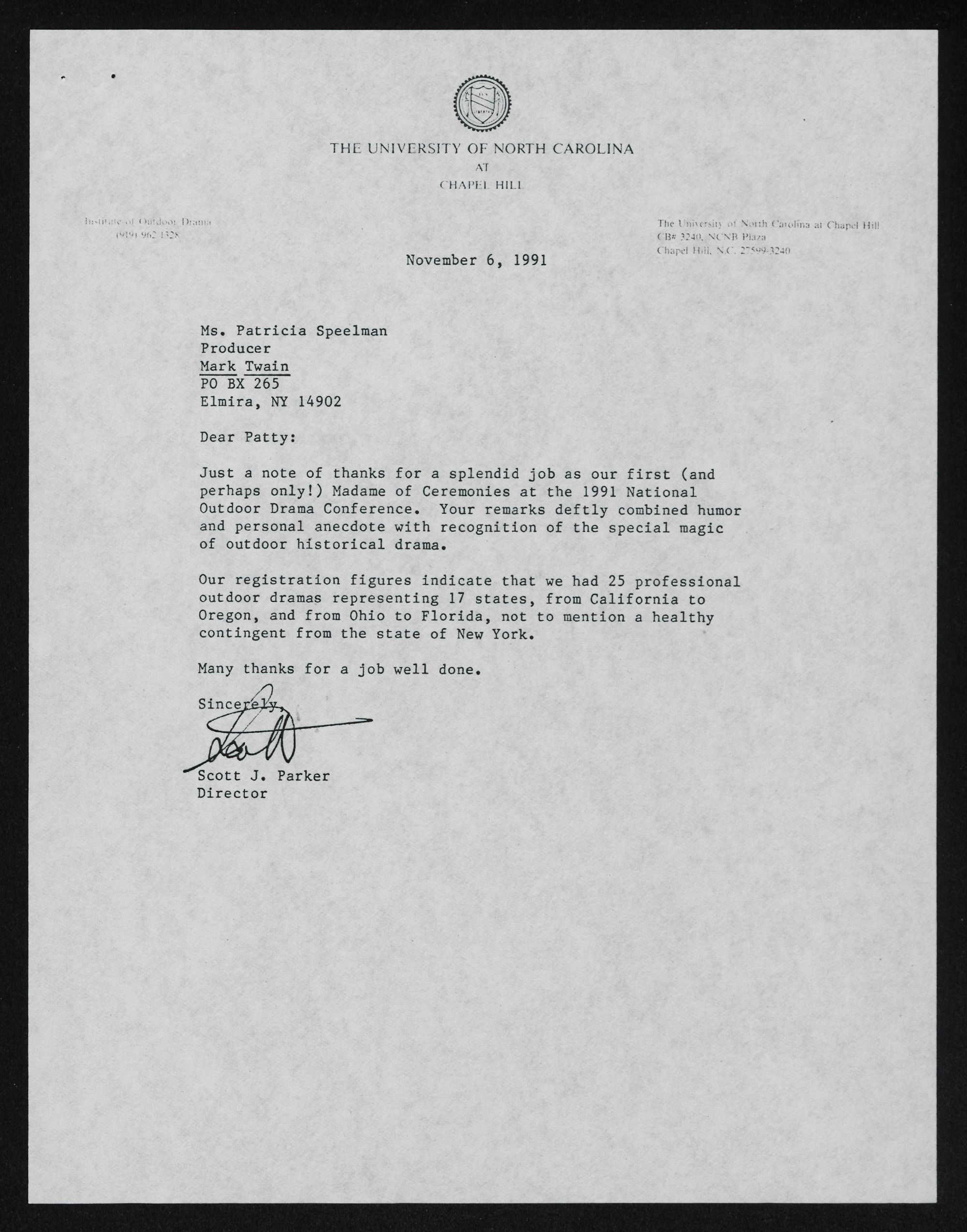 Outdoor Drama Conference. Your remarks deftly combined humor
