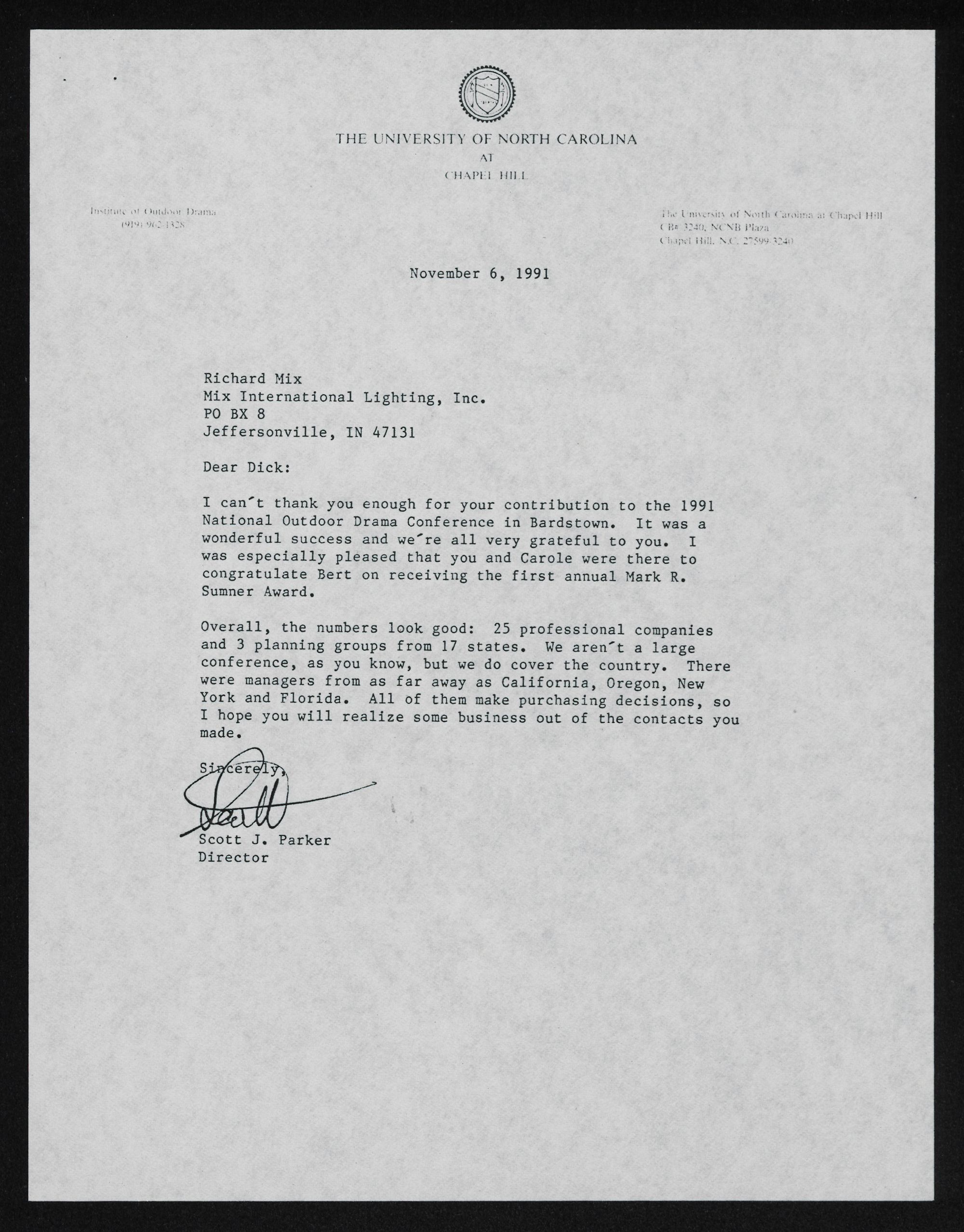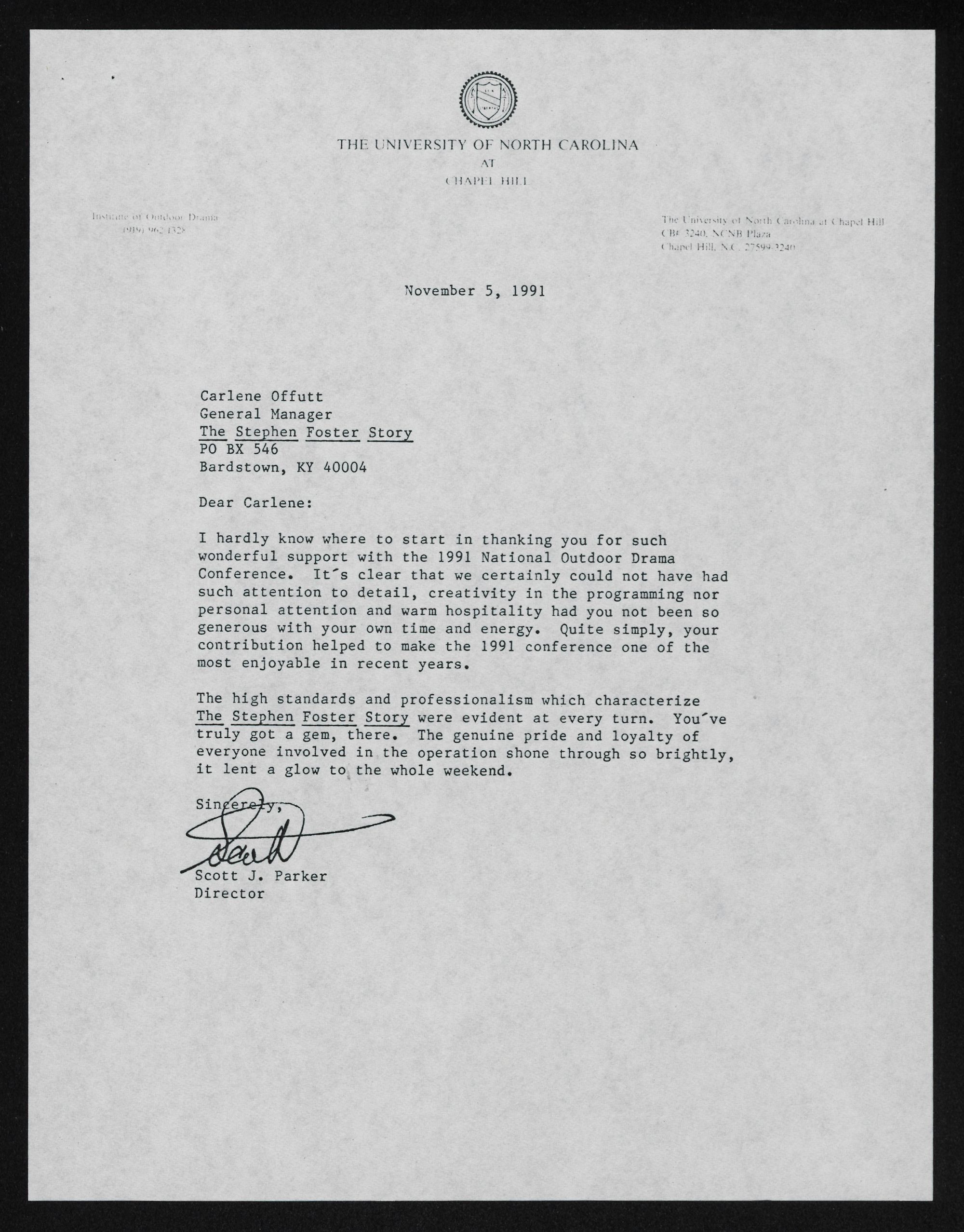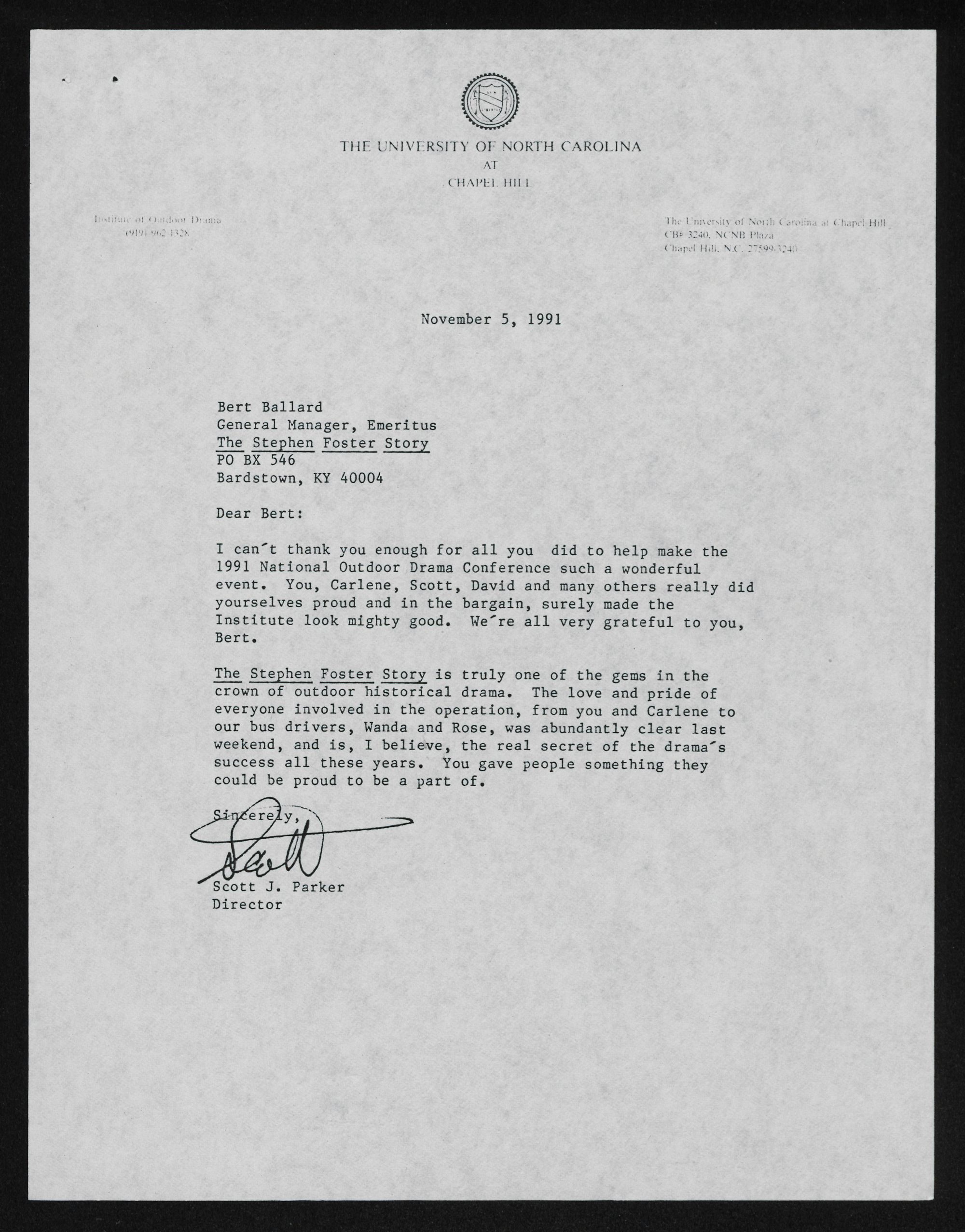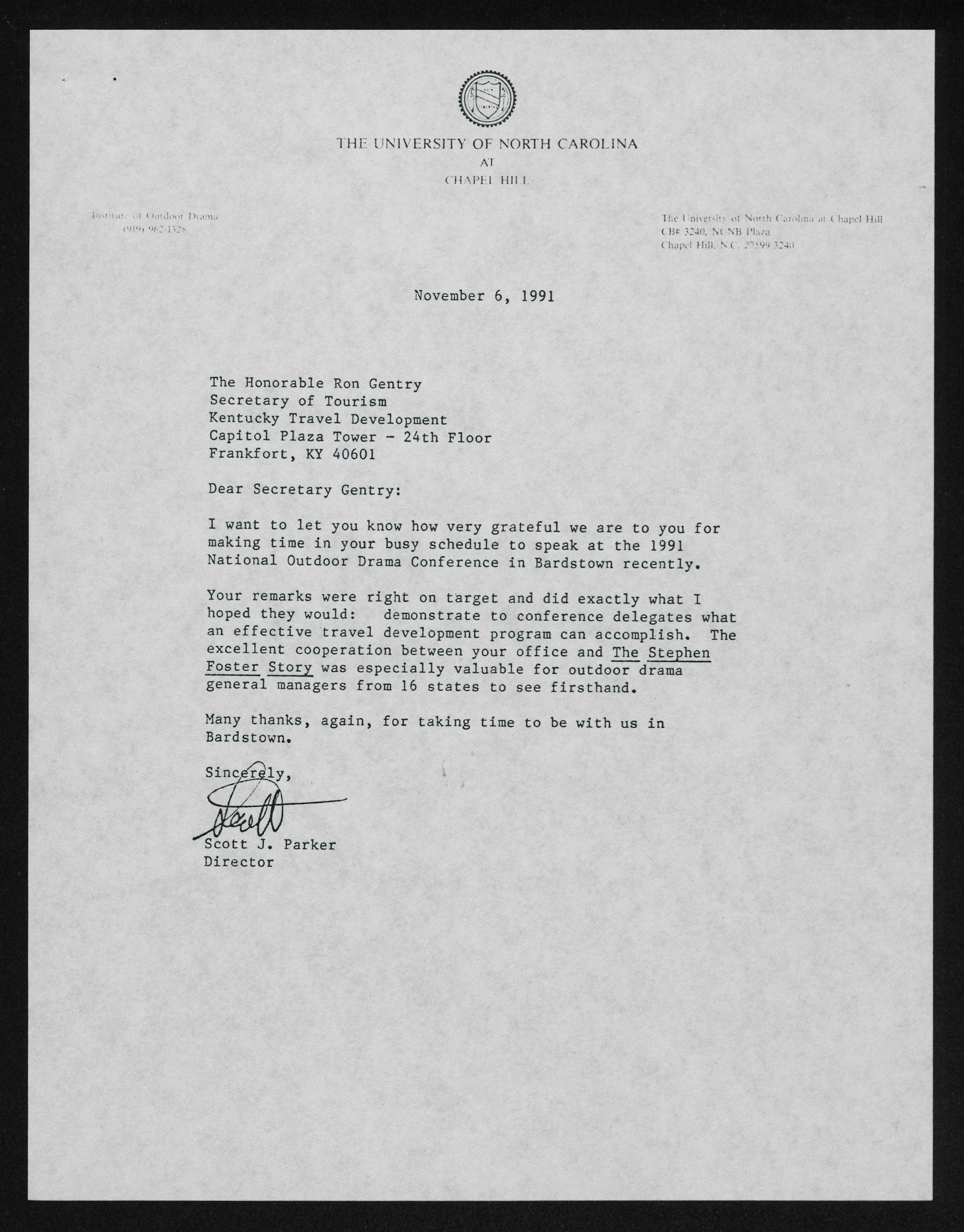 Outdoor Drama Conference. Your remarks deftly combined humor