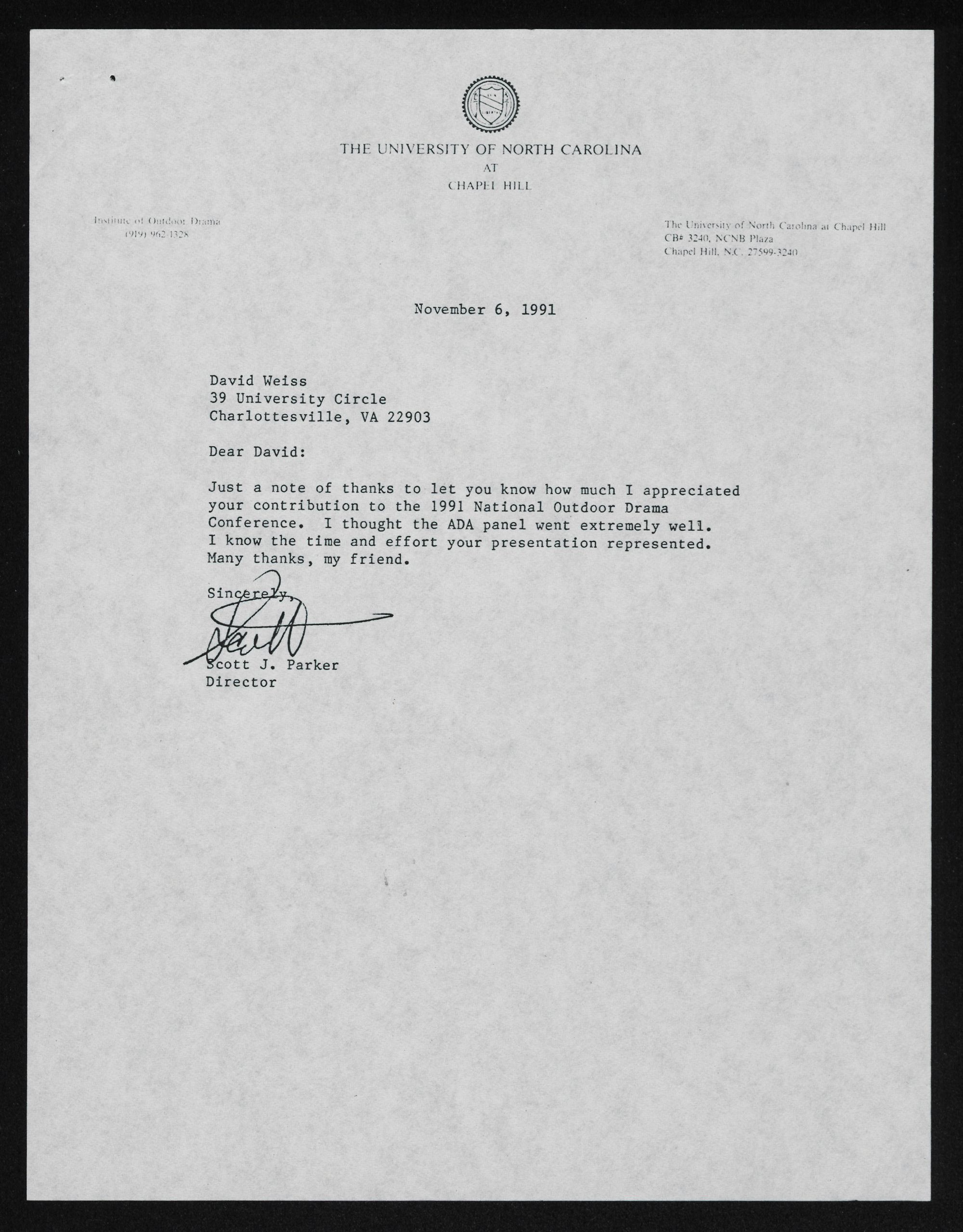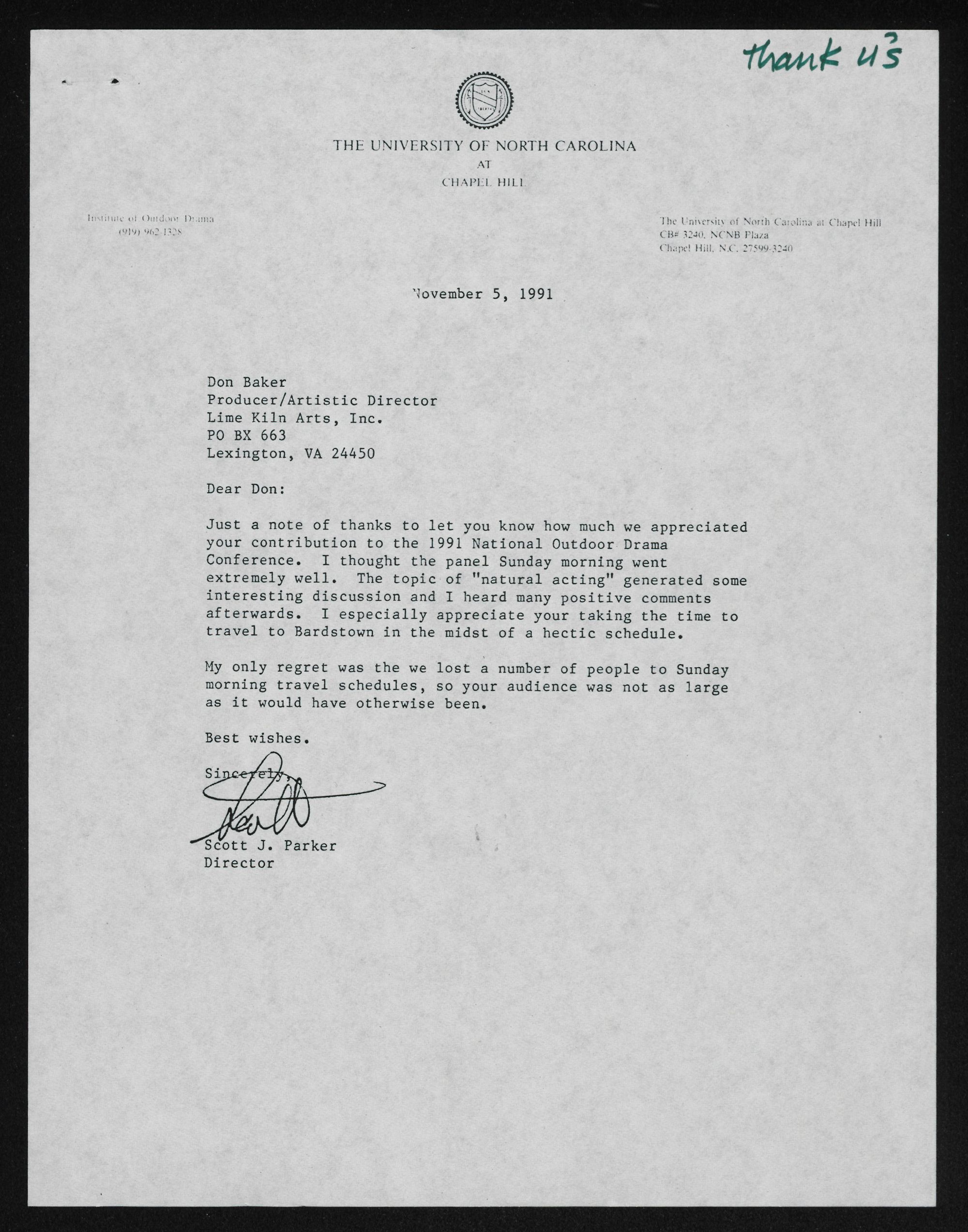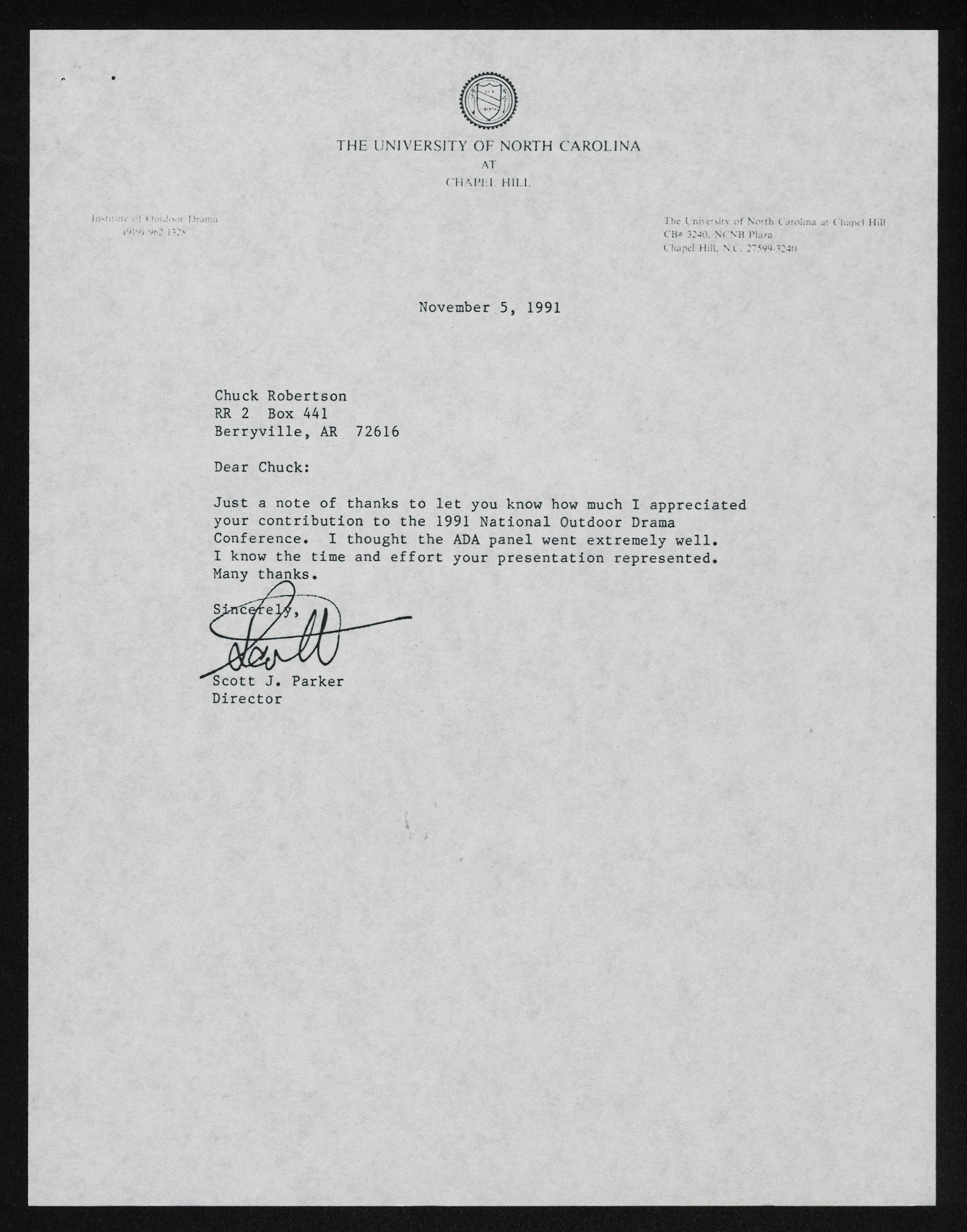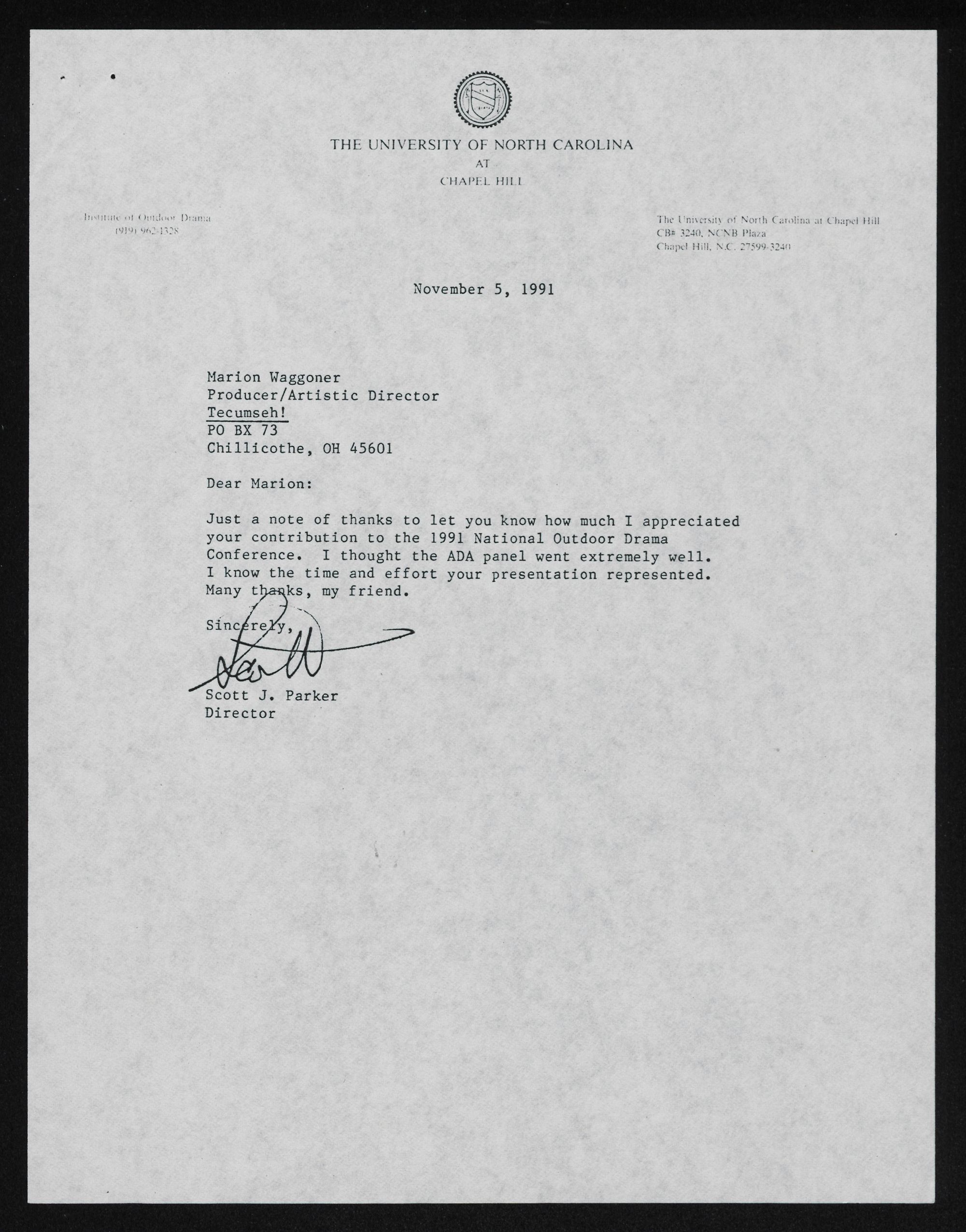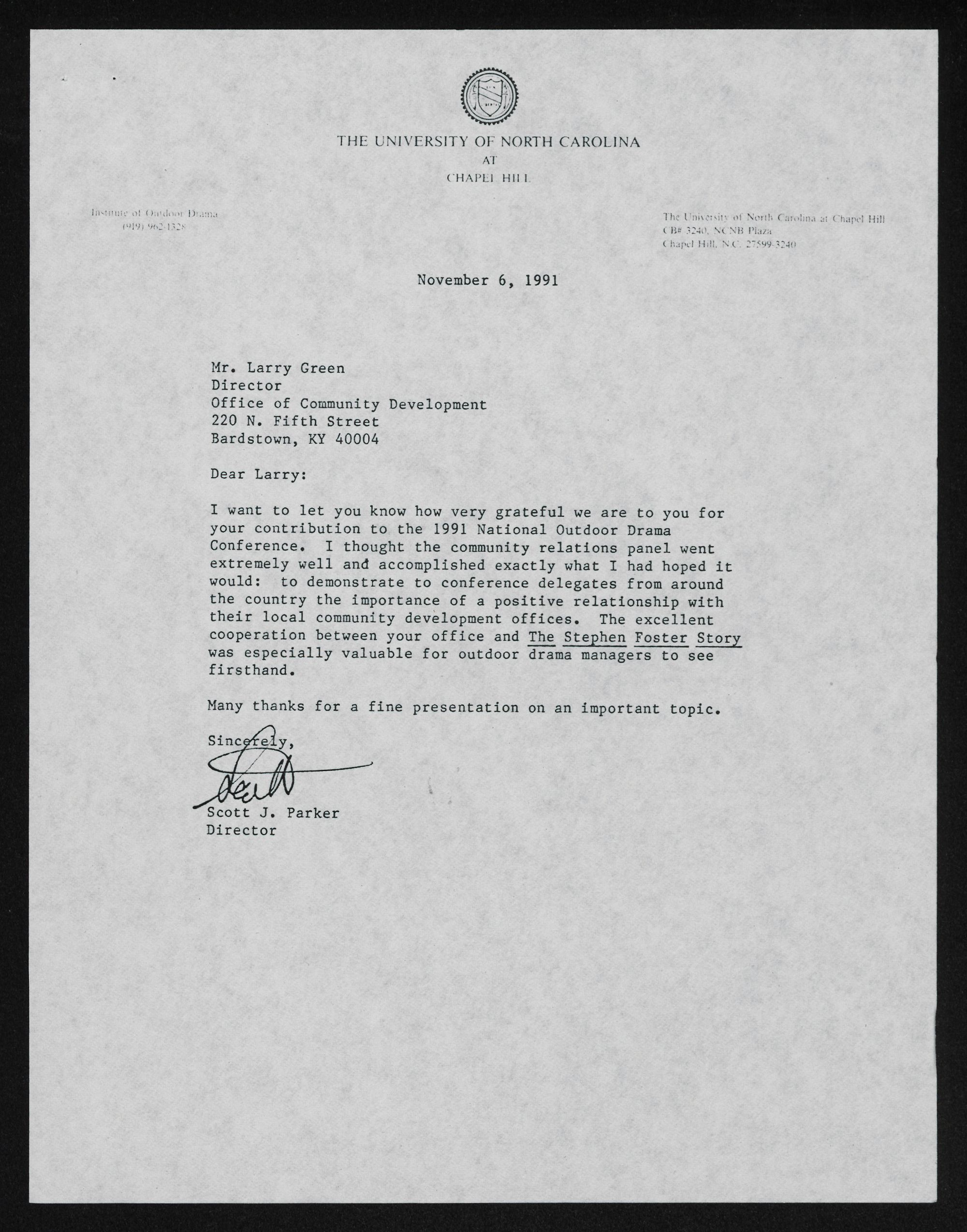 Outdoor Drama Conference. Your remarks deftly combined humor