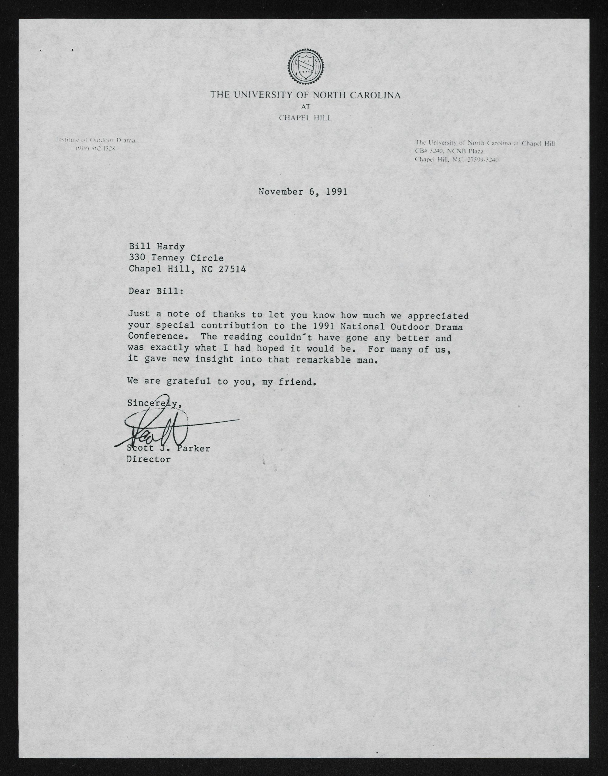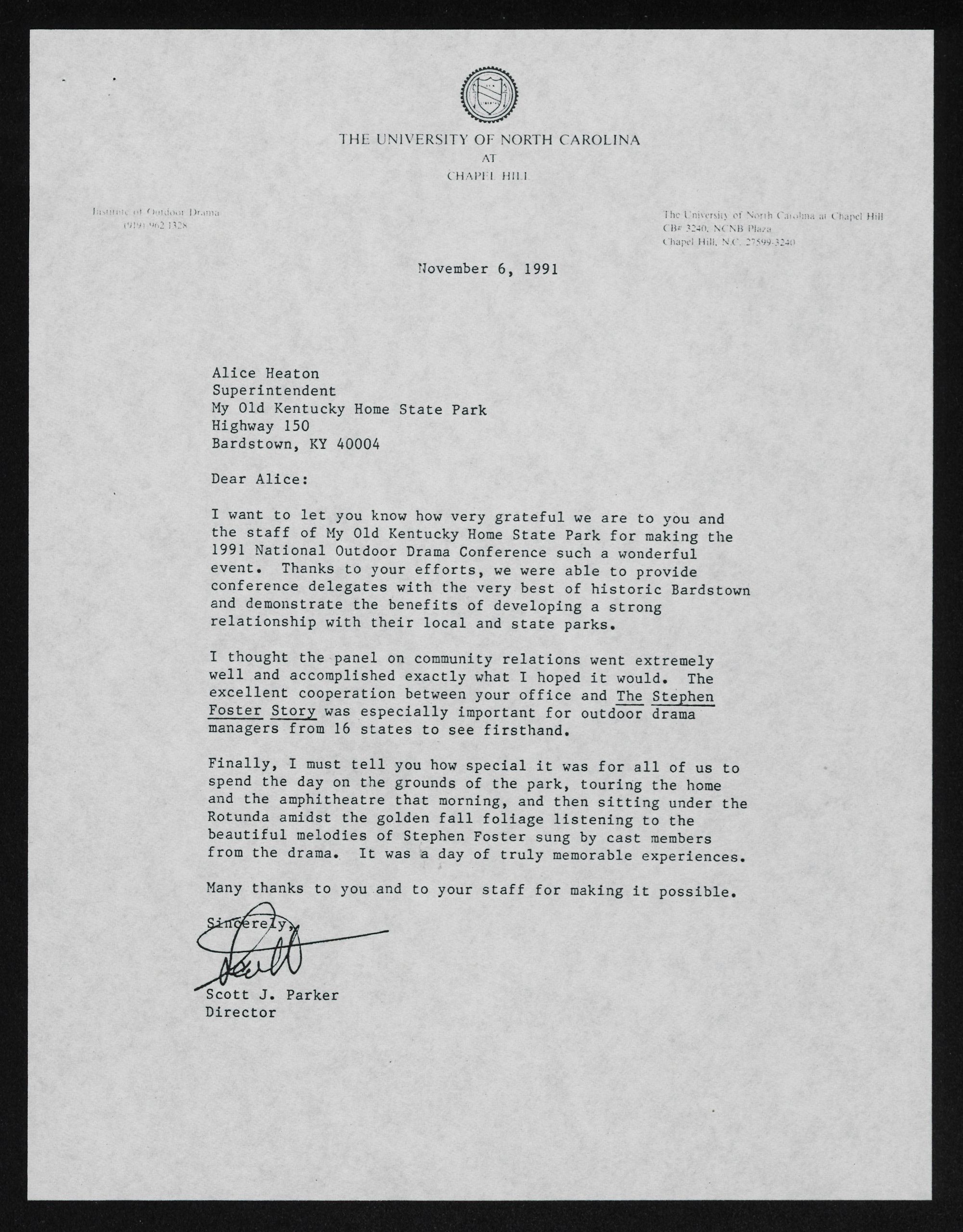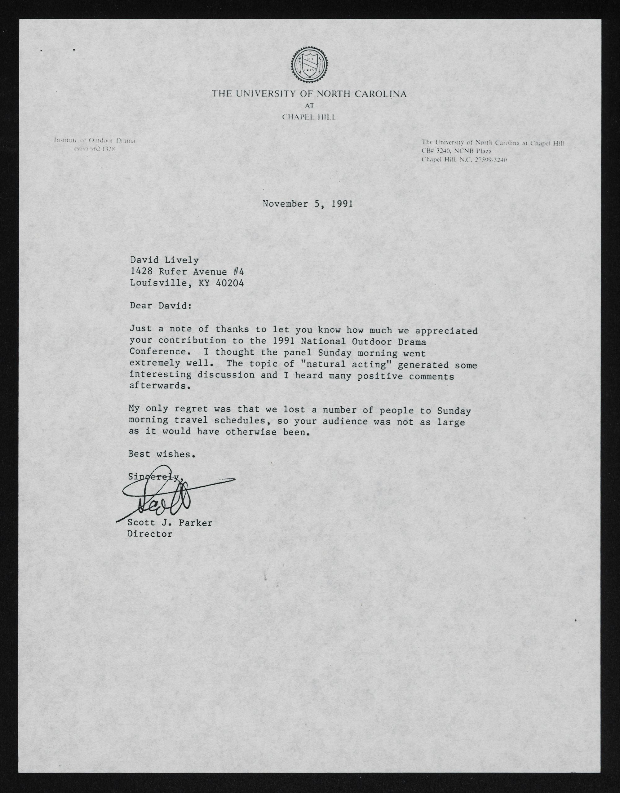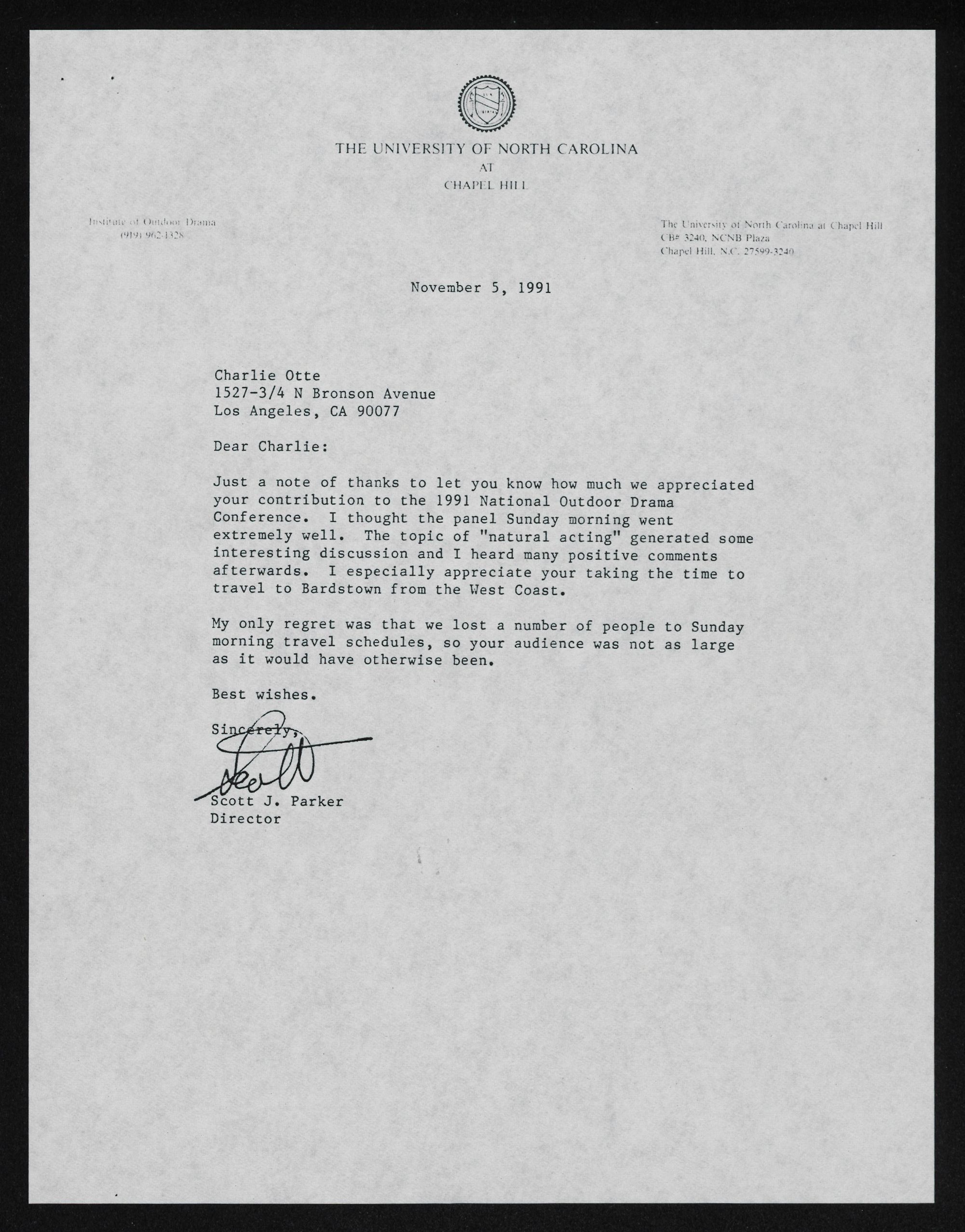 Outdoor Drama Conference. Your remarks deftly combined humor