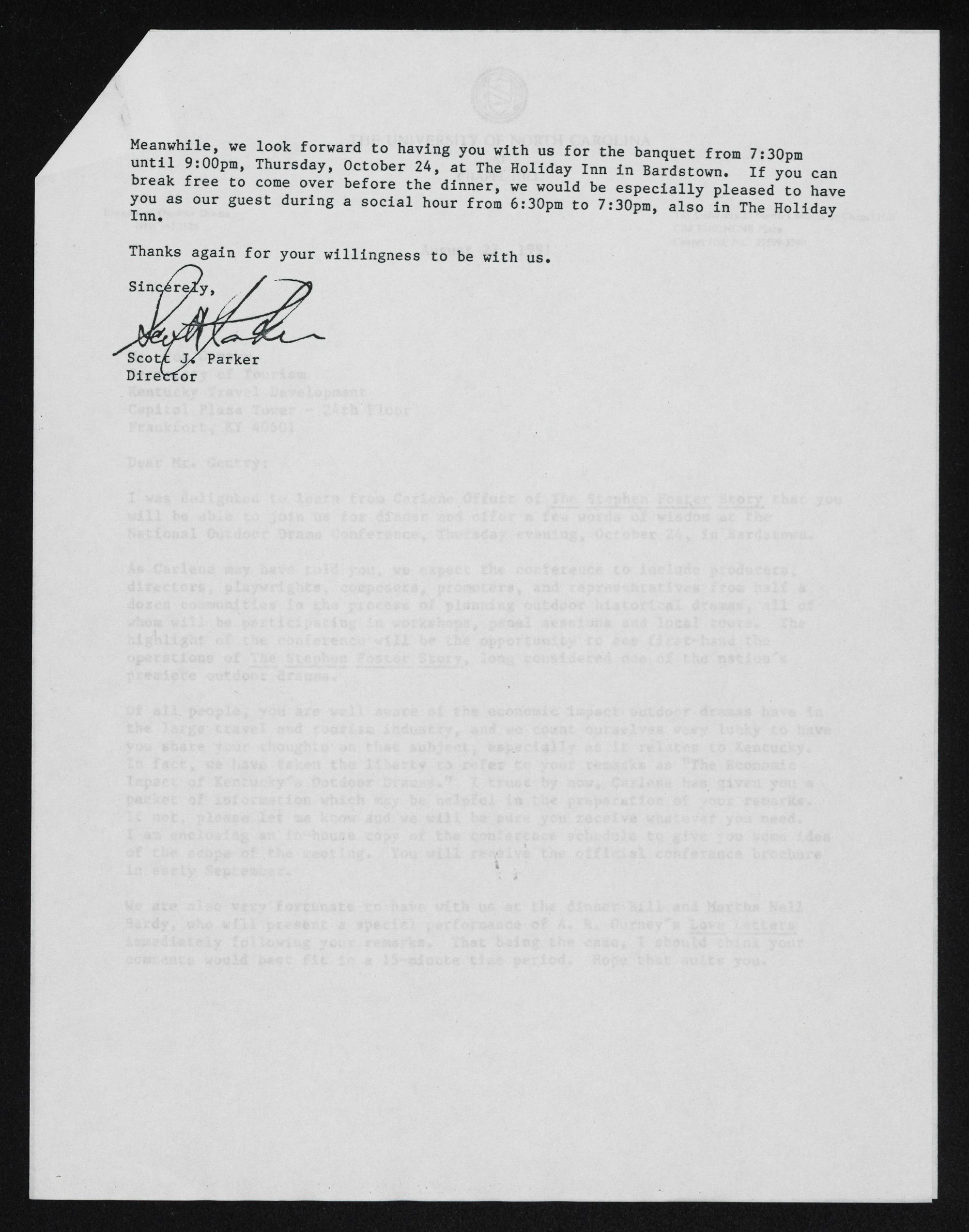 National Outdoor Drama Conference, Thursday evening, October 24, in Bardstown.