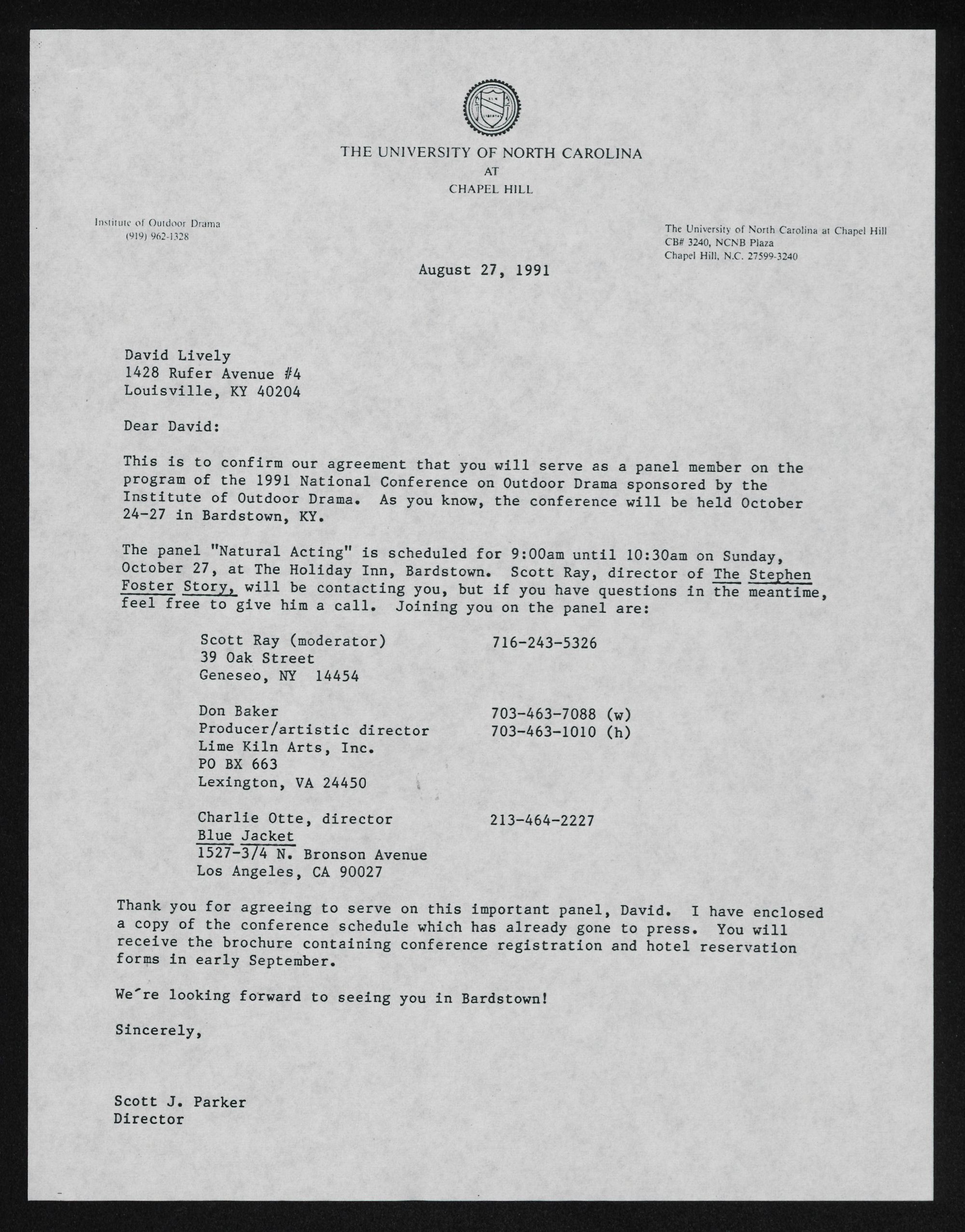 Institute of Outdoor Drama. As you know, the conference will be held October