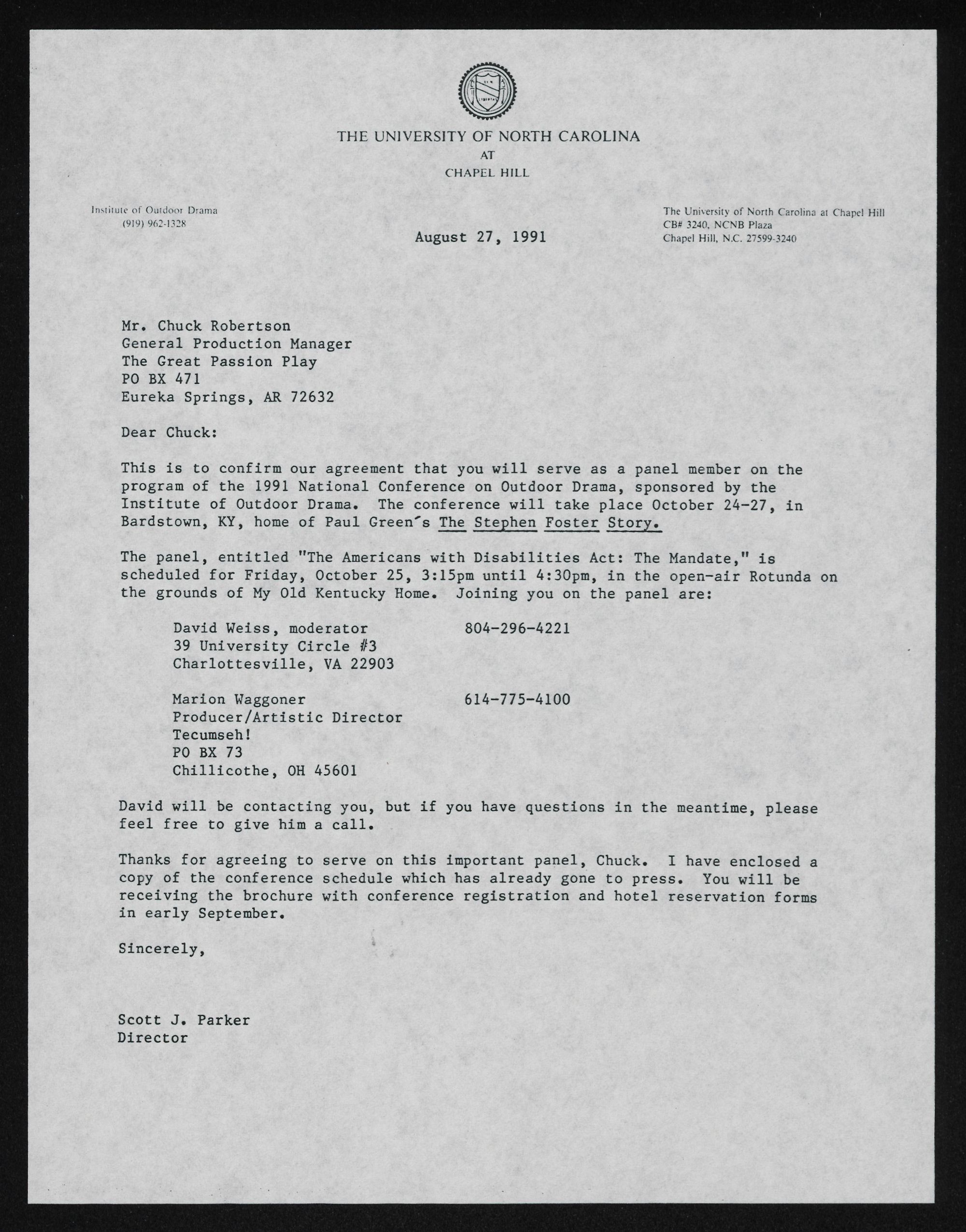 Institute of Outdoor Drama. The conference will take place October 24-27, in