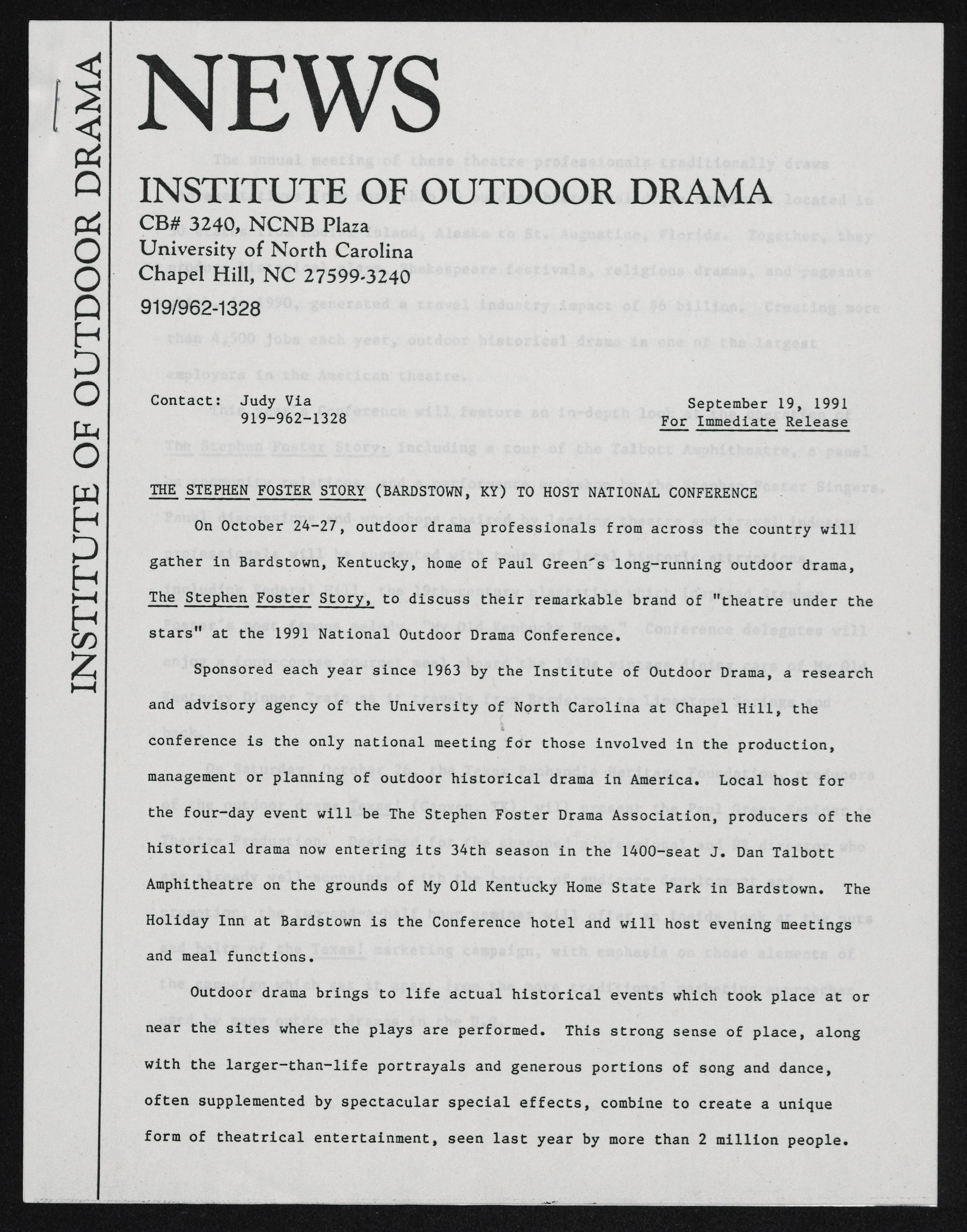 Sponsored each year since 1963 by the Institute of Outdoor Drama, a research