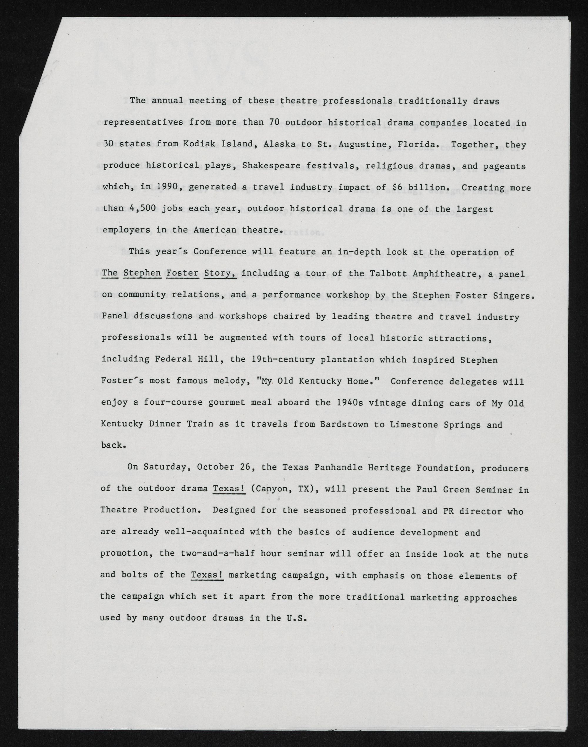 THE STEPHEN FOSTER STORY (BARDSTOWN, KY) TO HOST NATIONAL CONFERENCE