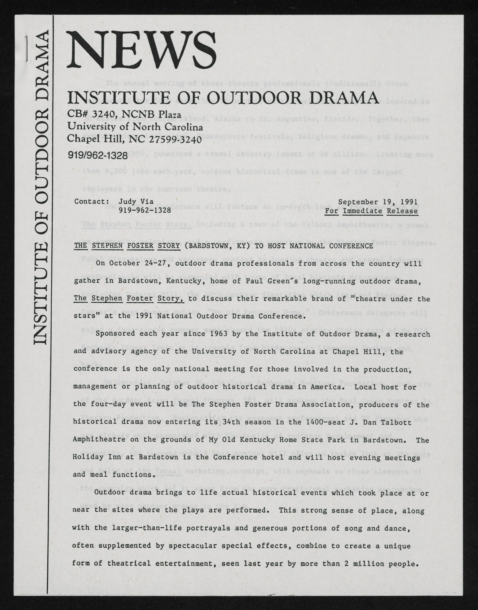Sponsored each year since 1963 by the Institute of Outdoor Drama, a research