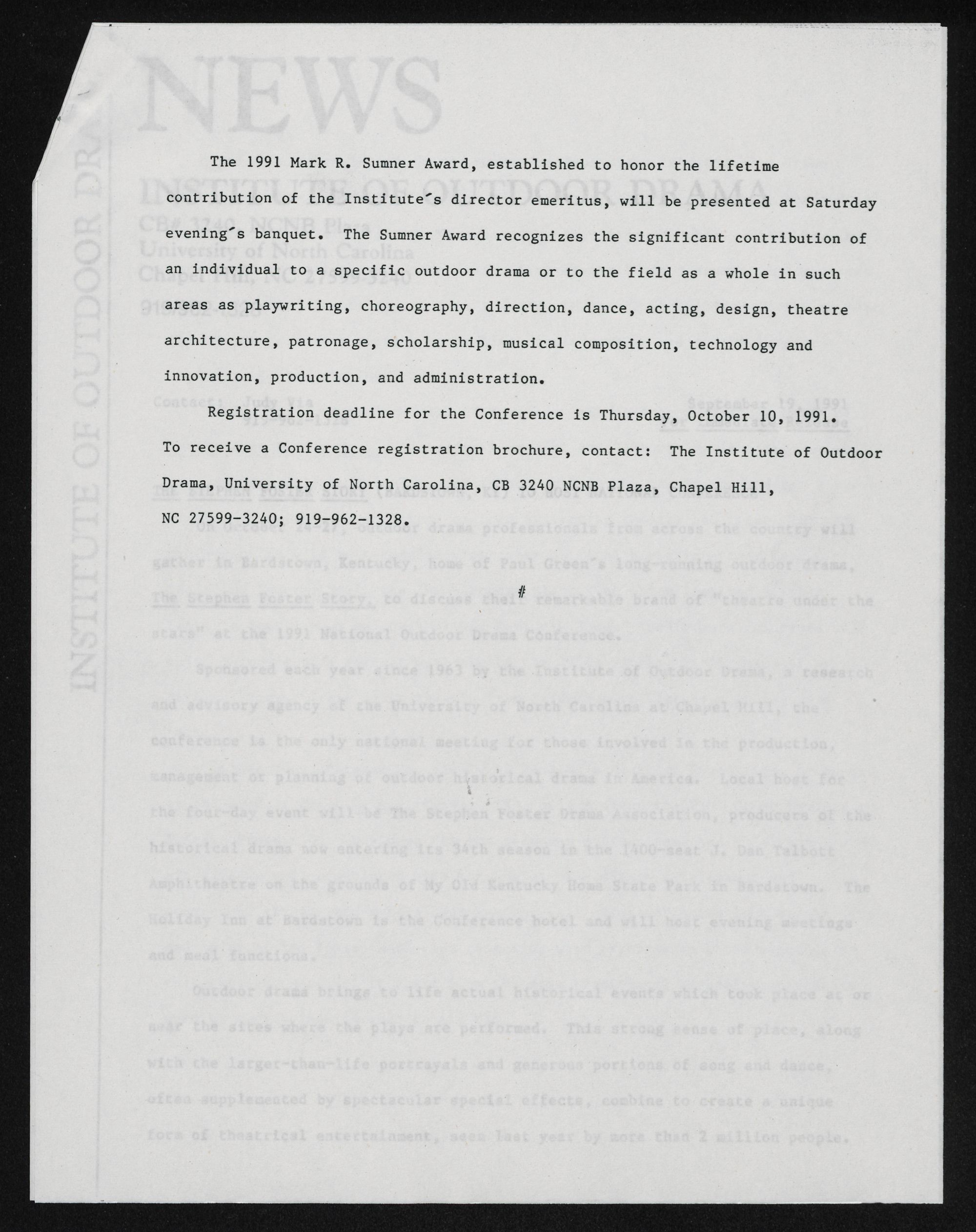 Registration deadline for the Conference is Thursday, October 10, 1991.