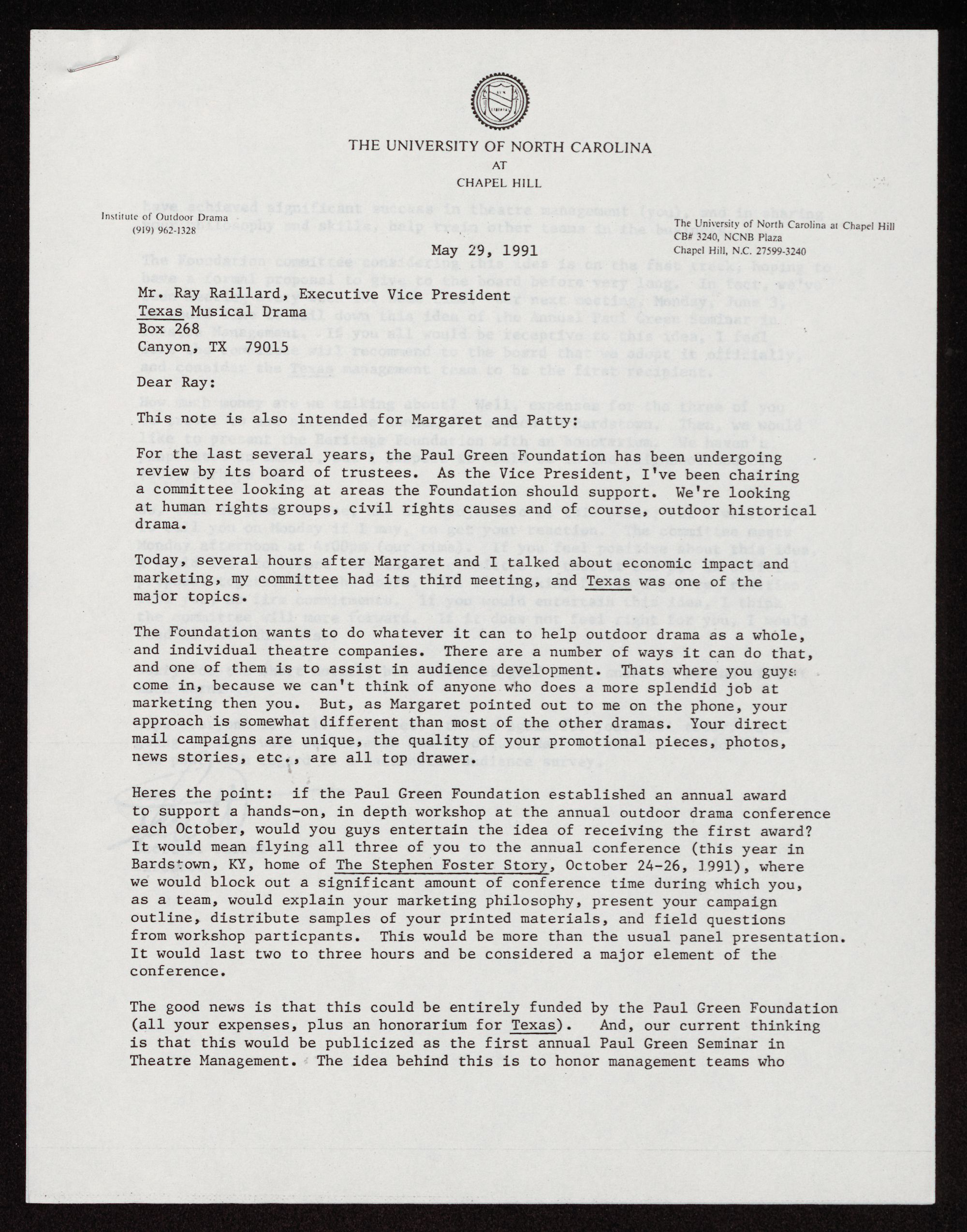 The Foundation wants to do whatever it can to help outdoor drama as a whole,