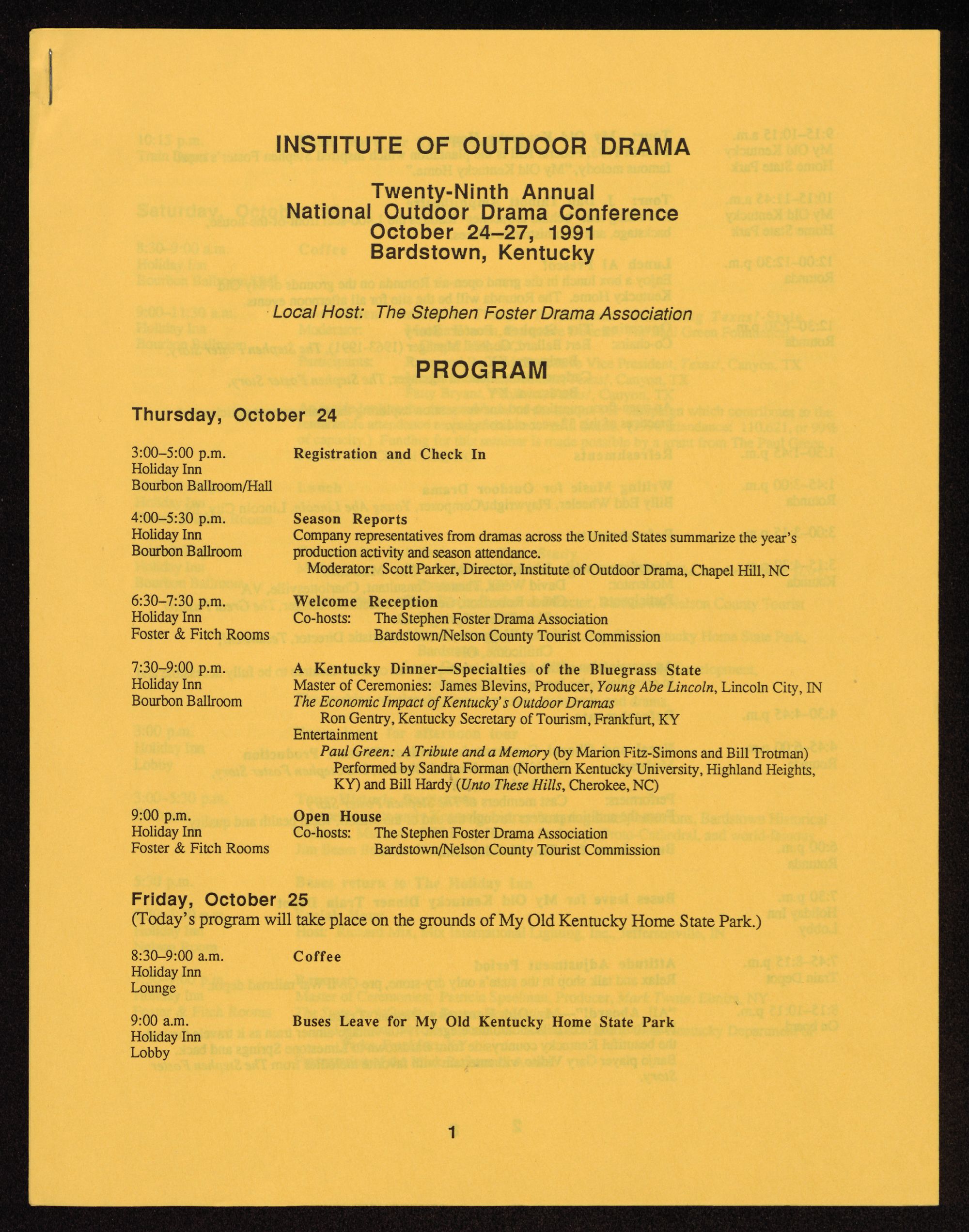 Co-chairs: Bert Ballard, General Manager (1963-1991), The Stephen Foster Story,