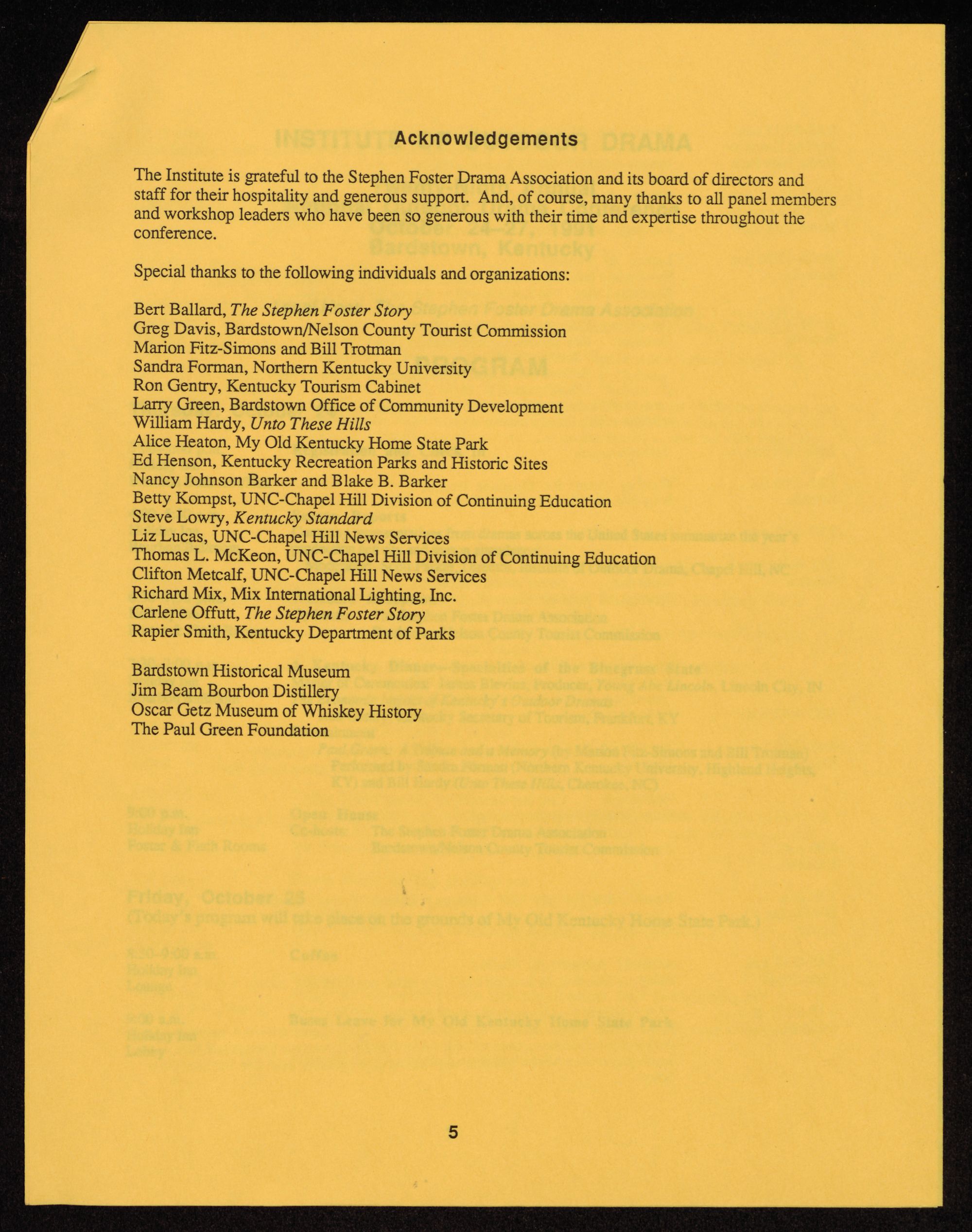 The Institute is grateful to the Stephen Foster Drama Association and its board of directors and