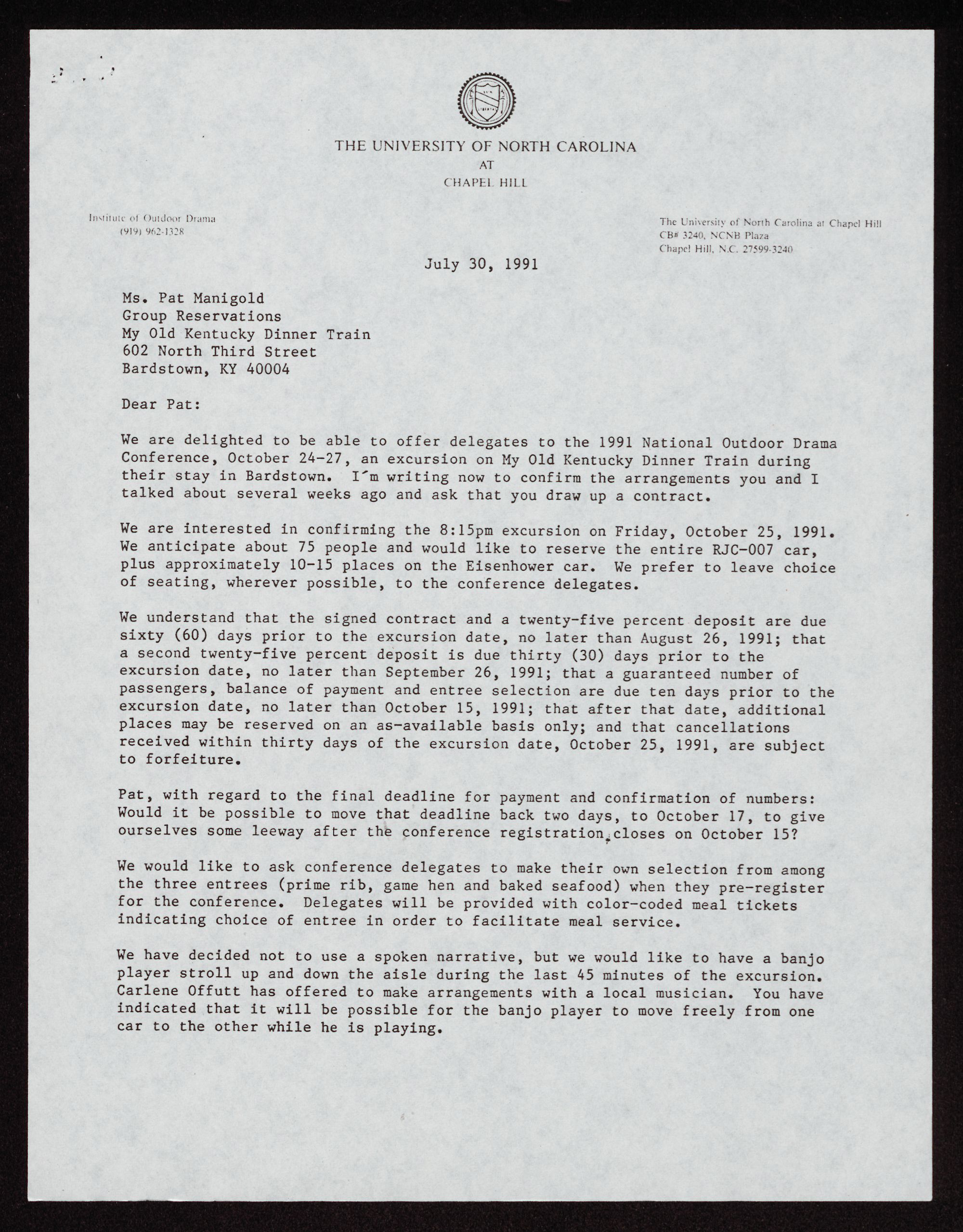 Institute of Outdoor Drama The University of North Carolina at Chapel Hill
