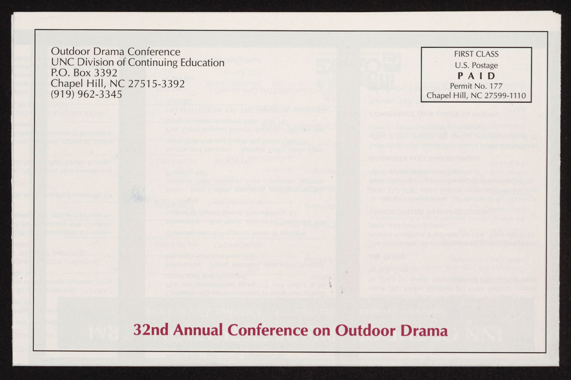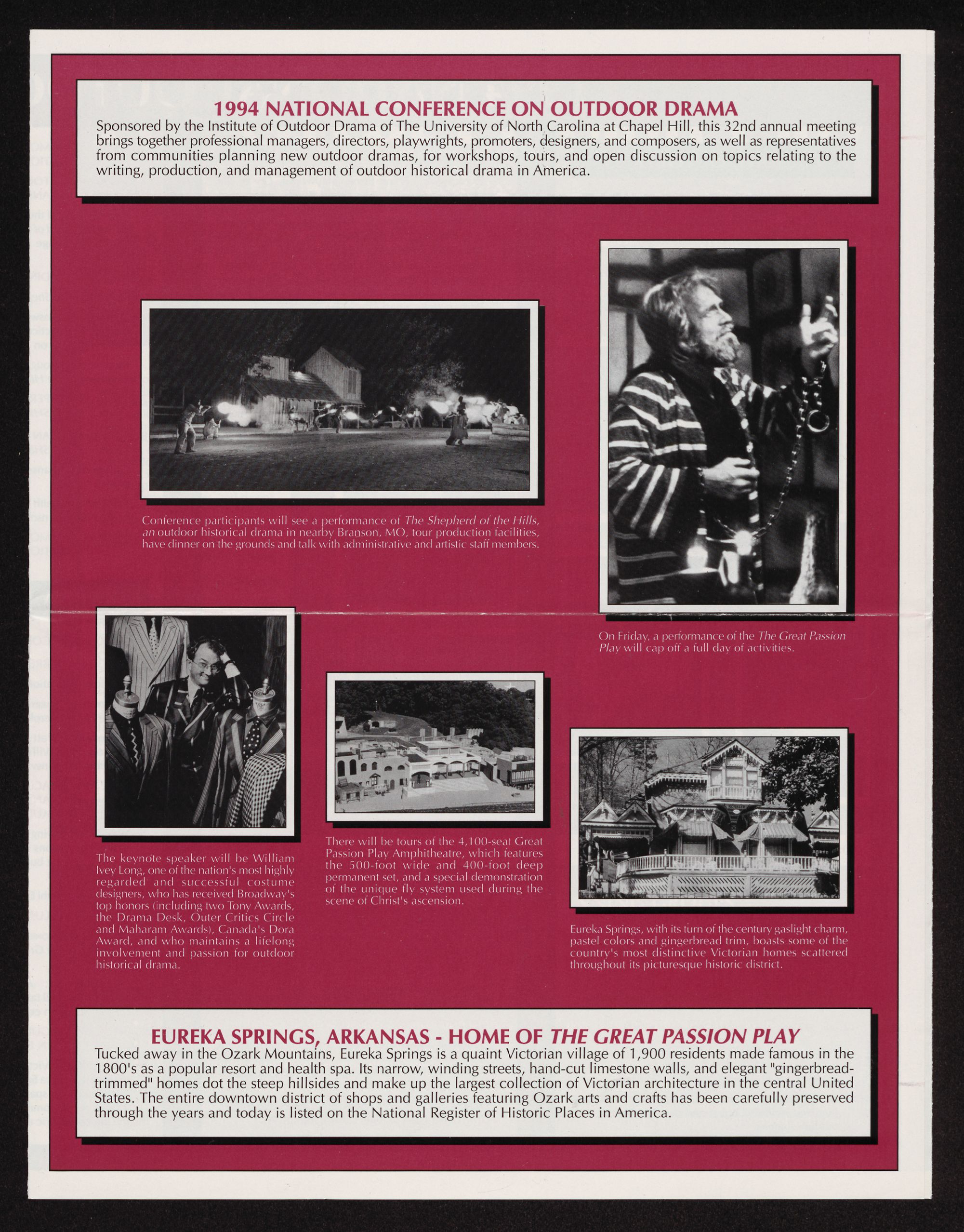 Sponsored by the Institute of Outdoor Drama of The University of North Carolina at Chapel Hill, this 32nd annual meeting