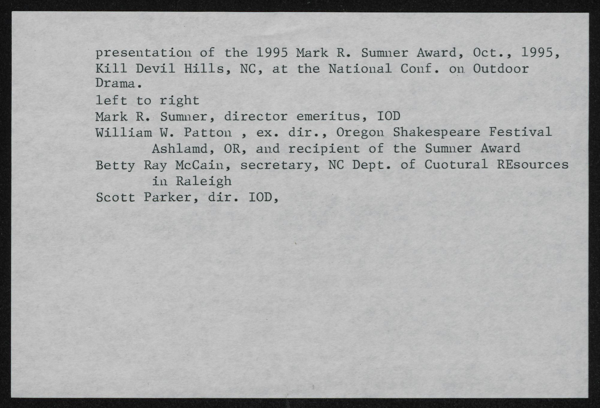 Conference 1995. Kill Devil Hills, NC