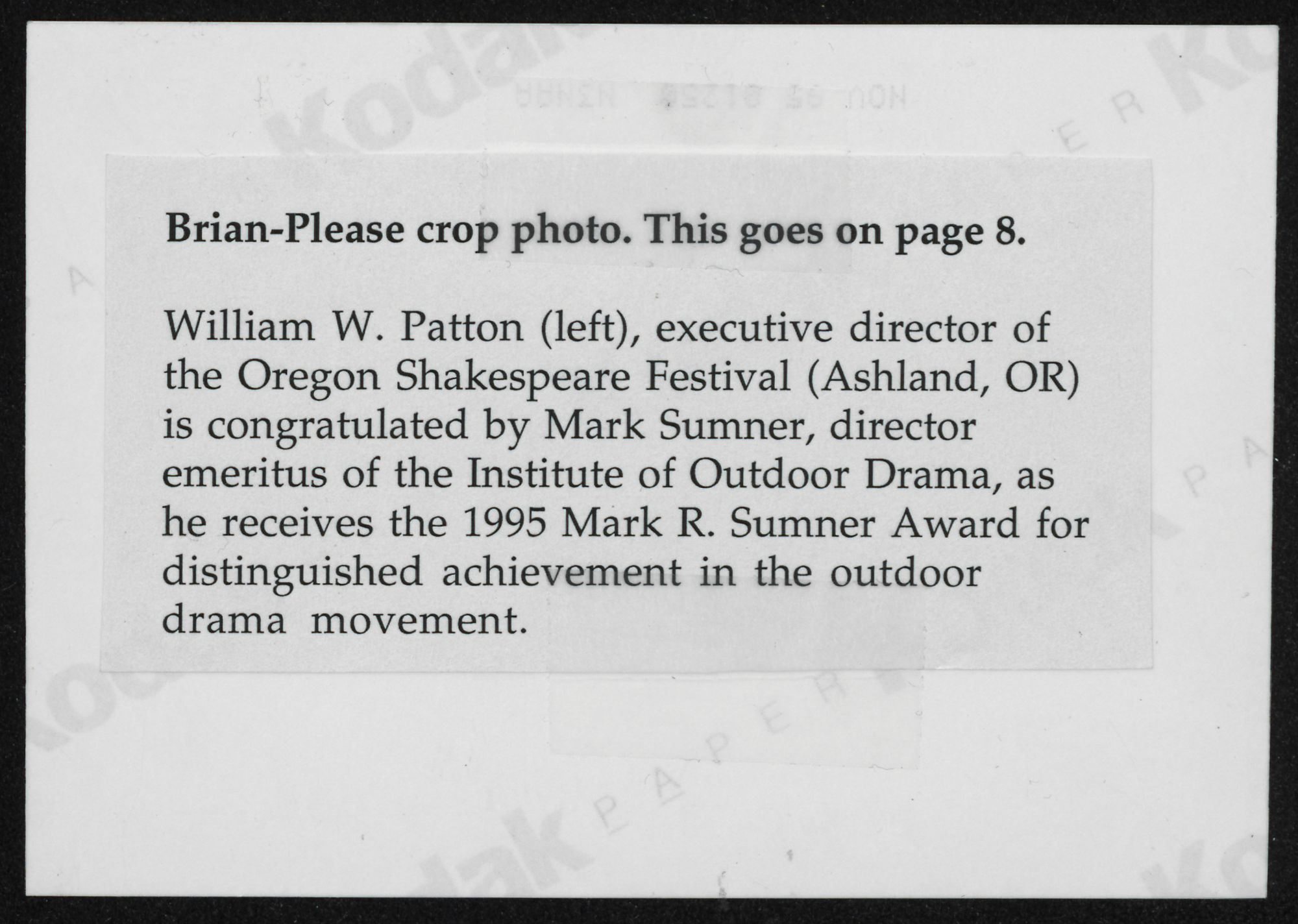 William W. Patton , ex. dir., Oregon Shakespeare Festival