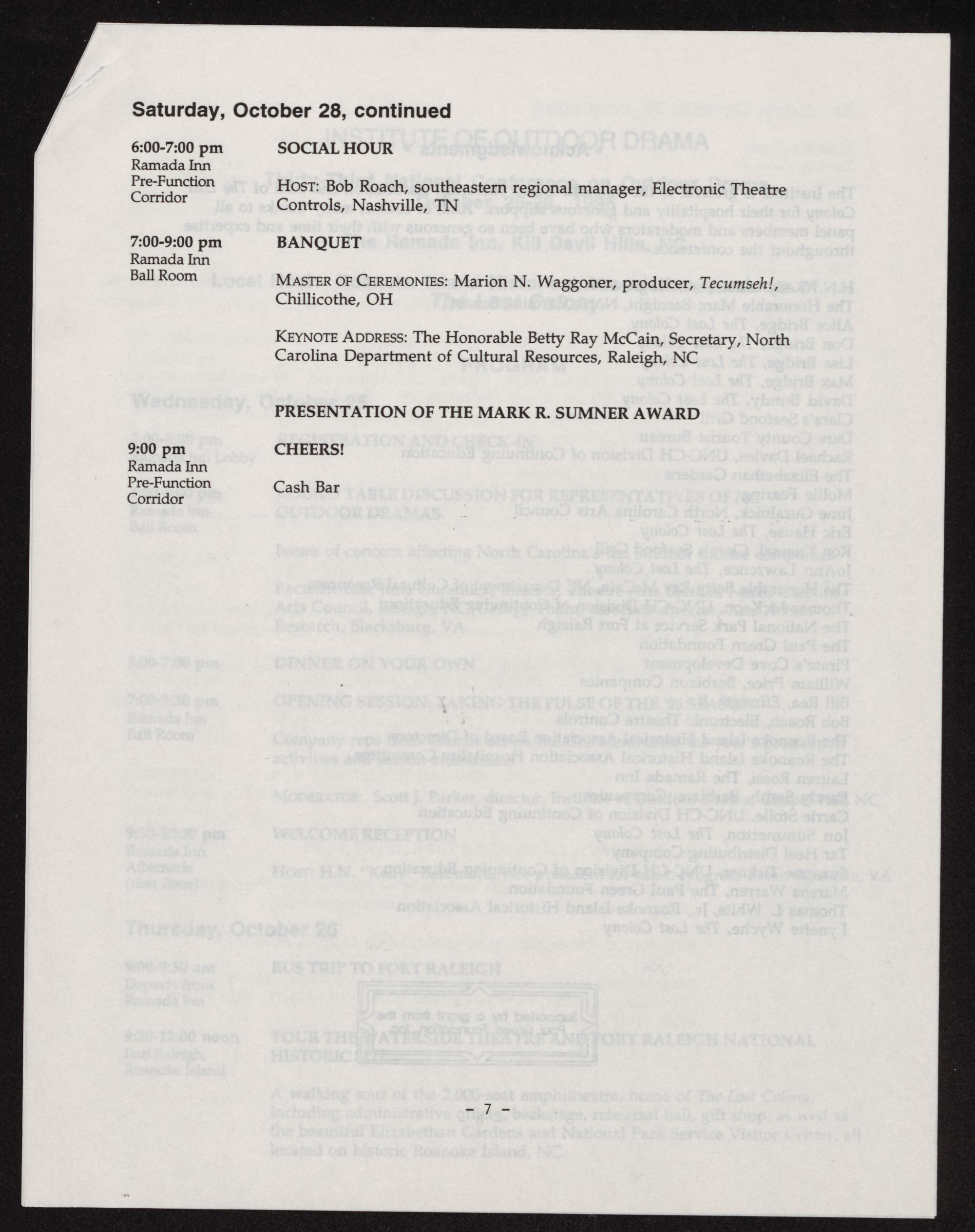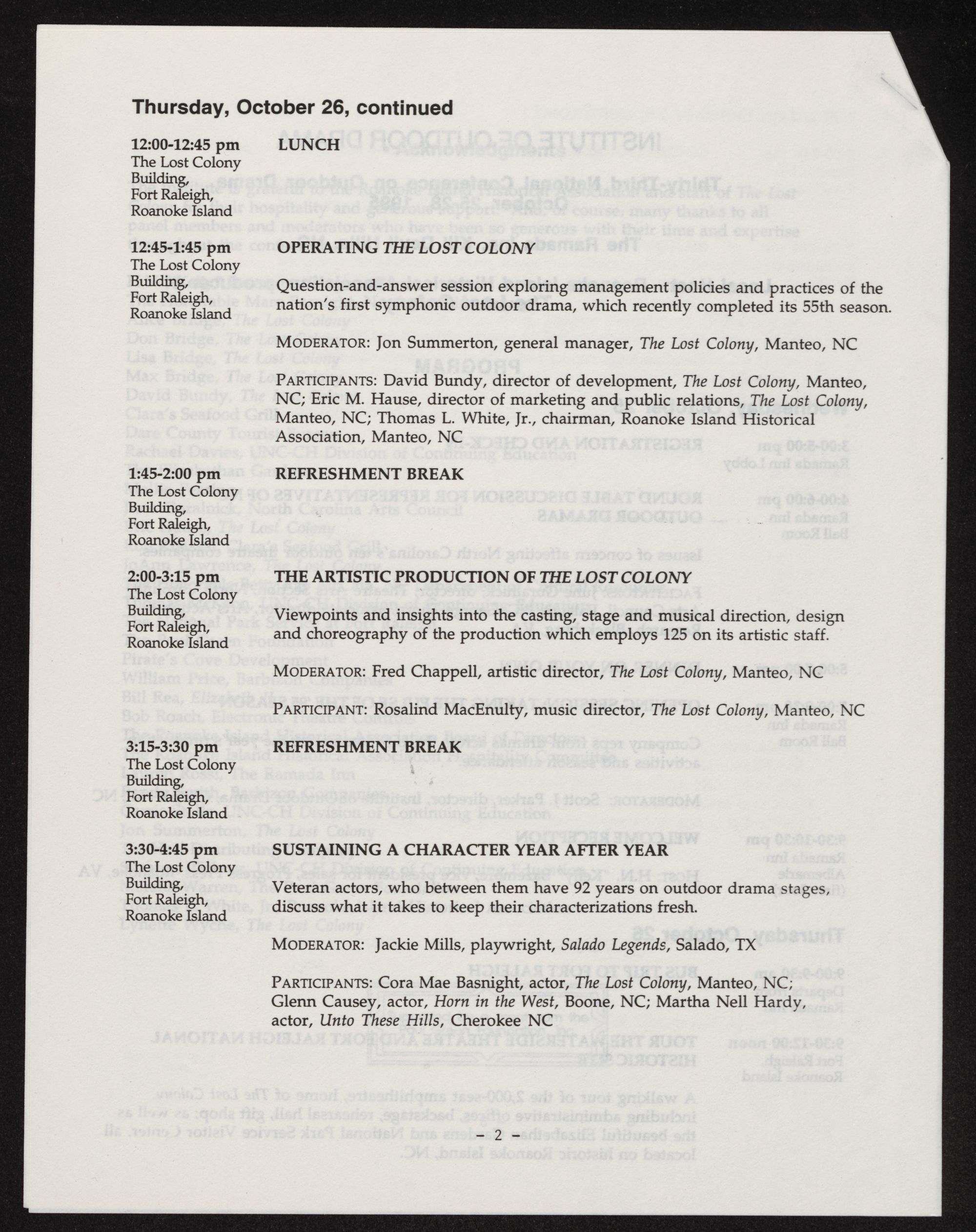 PARTICIPANTS: Fred Chappell, director, The Lost Colony, Manteo, NC:
