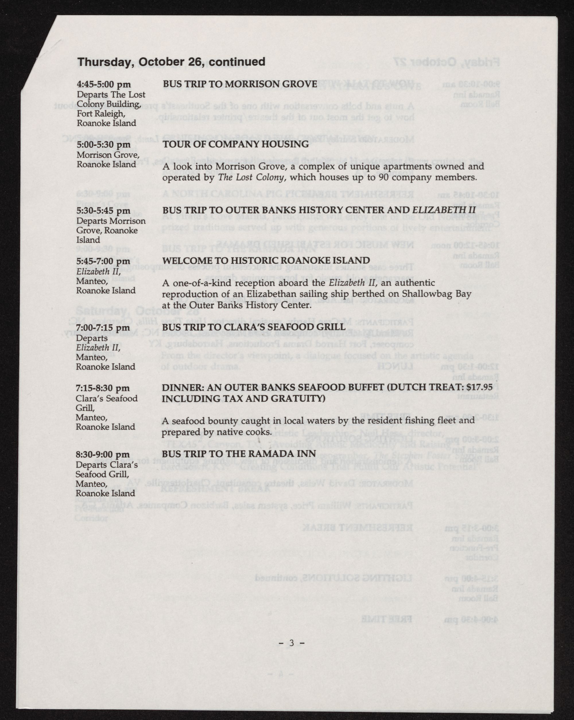 5:30-5:45 pm BUS TRIP TO OUTER BANKS HISTORY CENTER AND ELIZABETH II