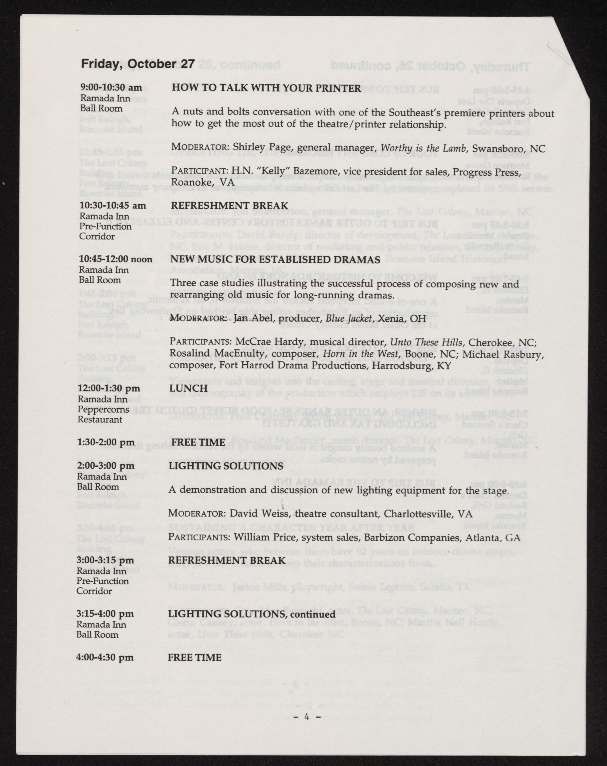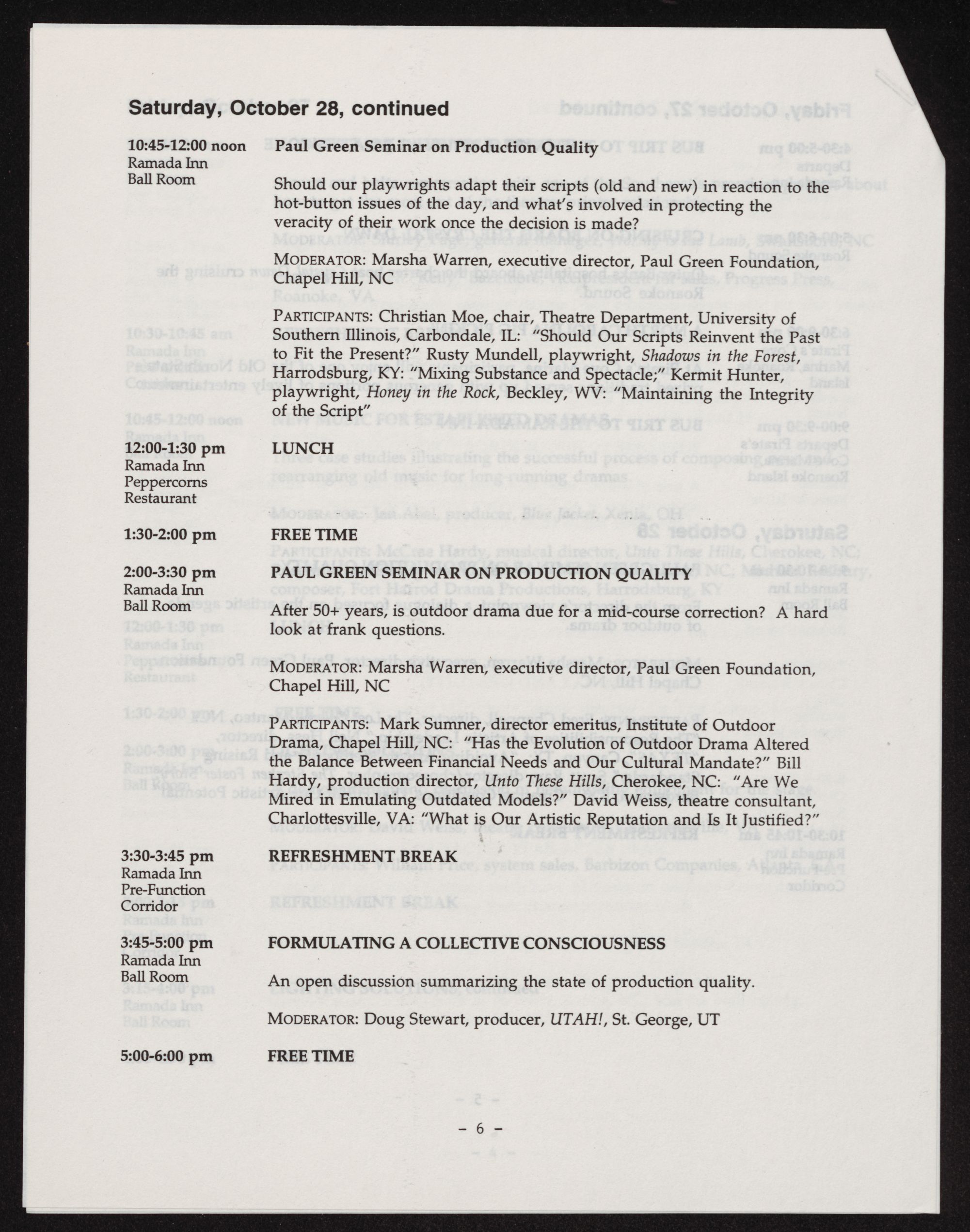 MODERATOR: Scott J. Parker, director, Institute of Outdoor Drama, Chapel Hill, NC