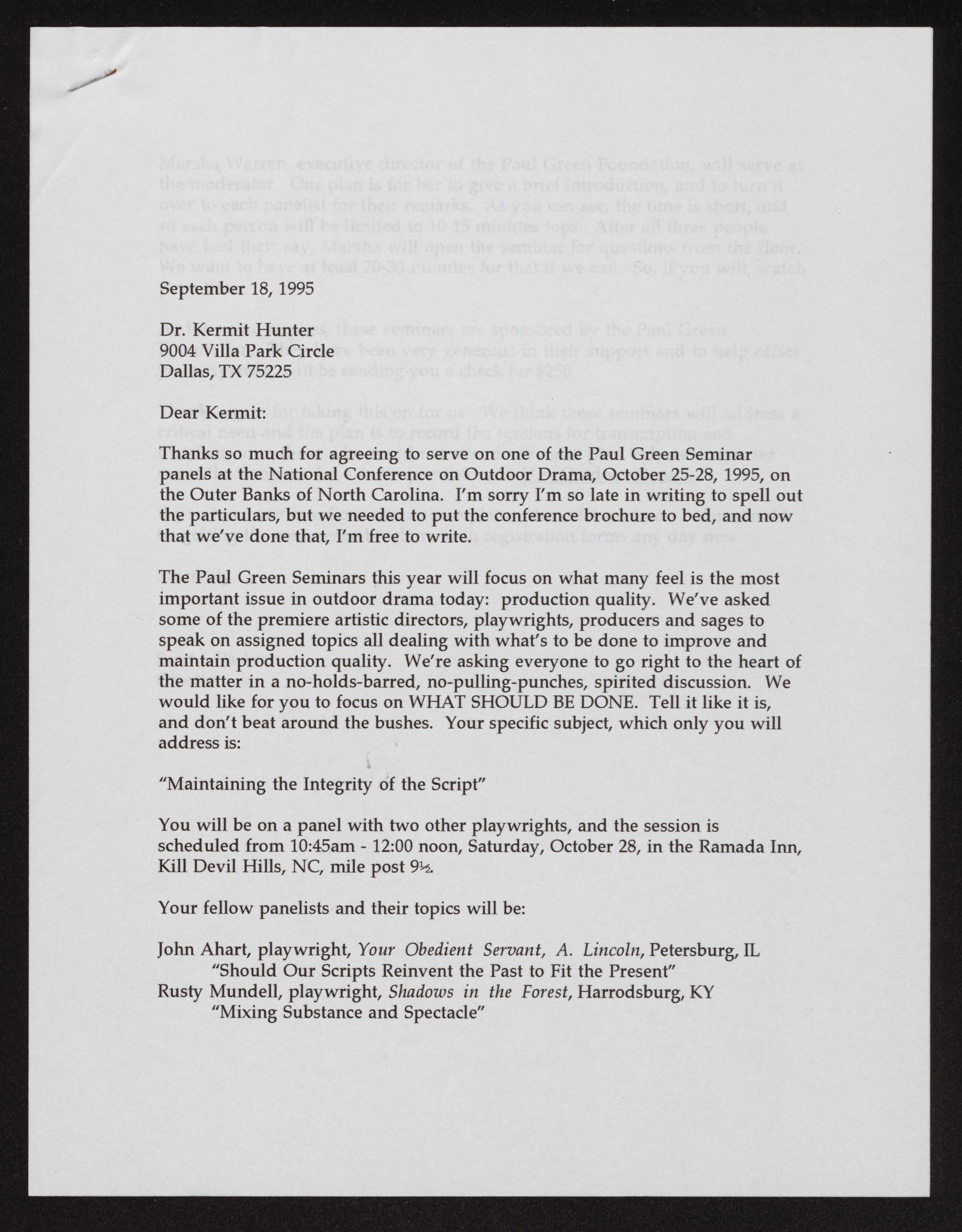 panels at the National Conference on Outdoor Drama, October 25-28, 1995, on