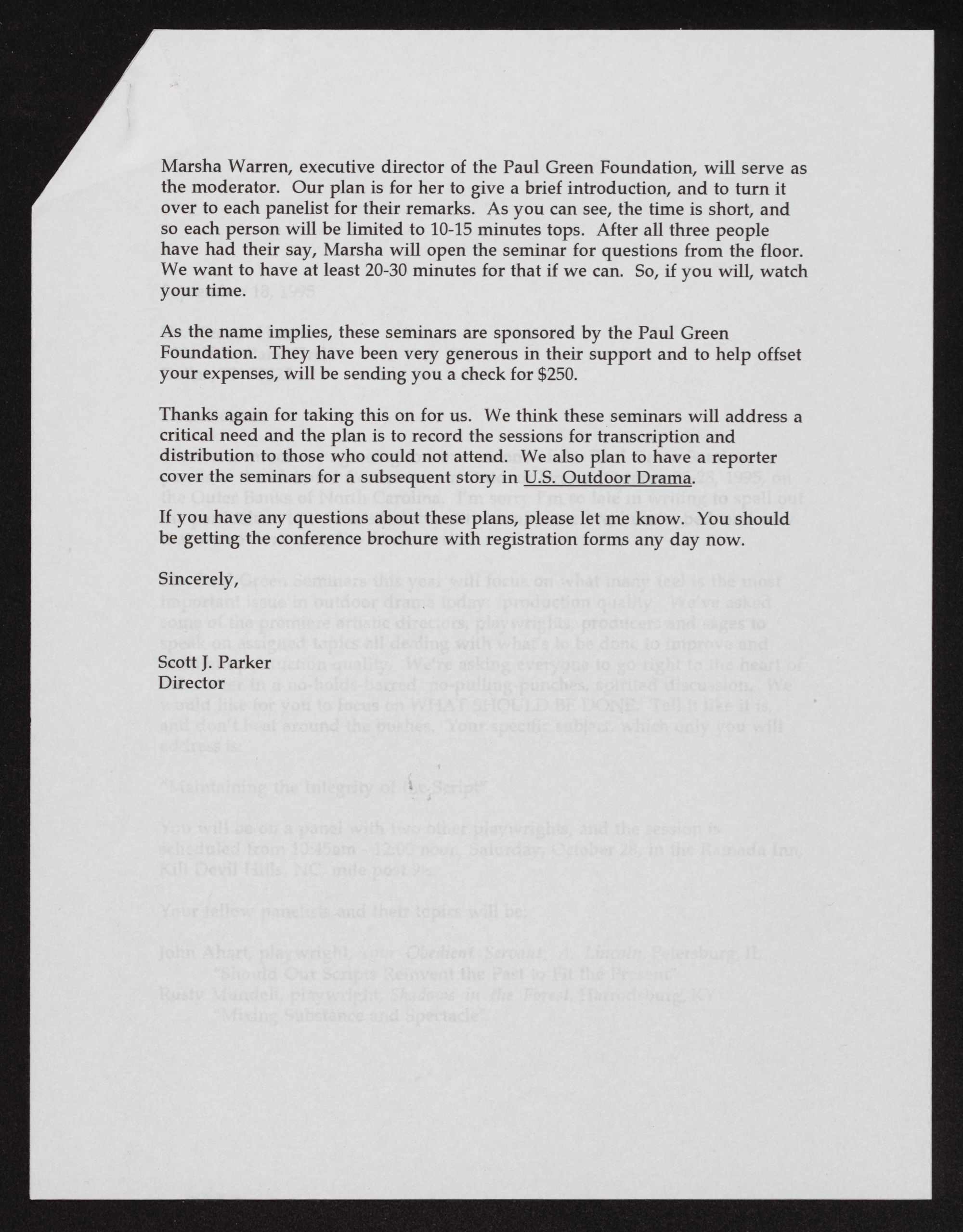 cover the seminars for a subsequent story in U.S. Outdoor Drama.