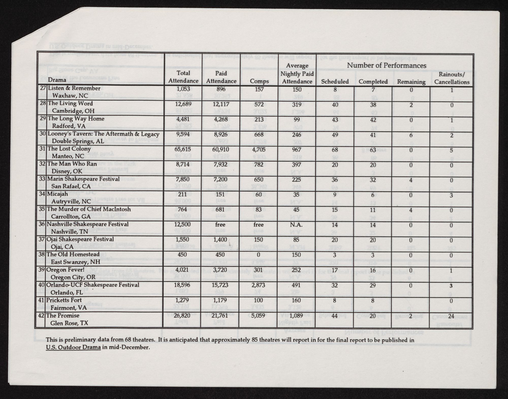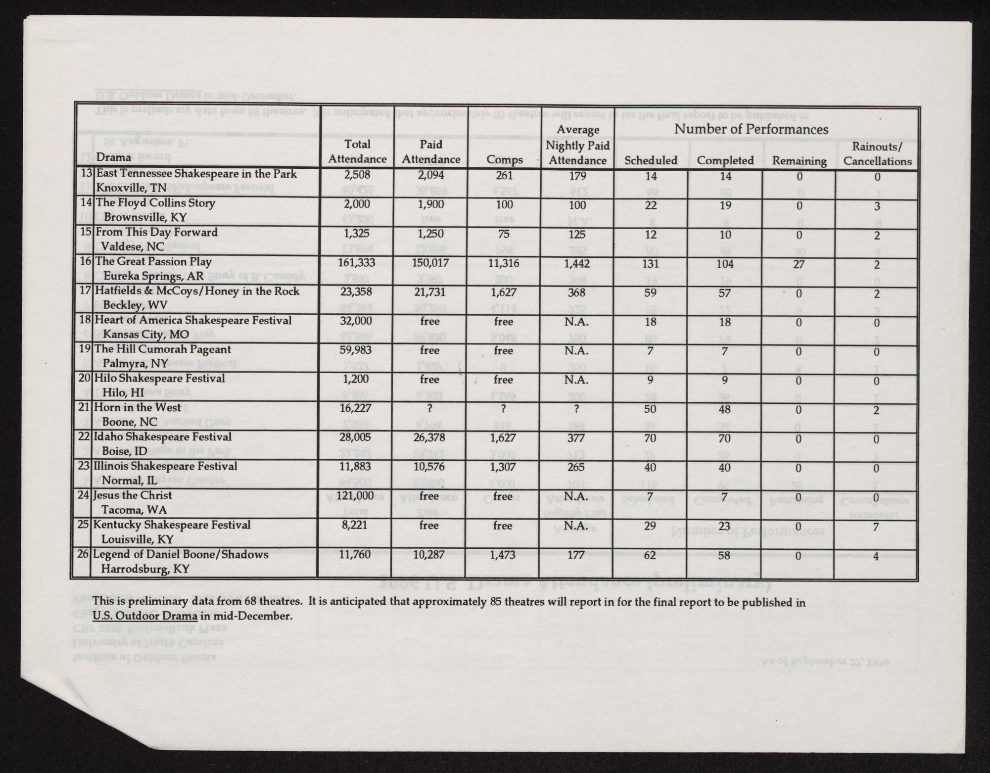 21|Horn in the West 16,227 ? ? ? 50 48 0 2