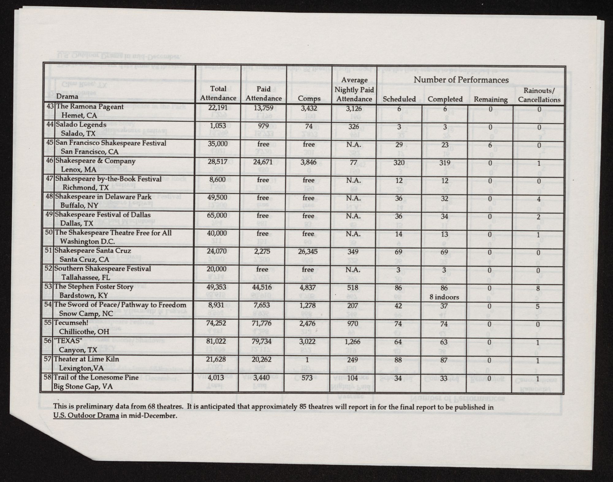 49|Shakespeare Festival of Dallas 65,000 free free N.A. 36 34 0 2