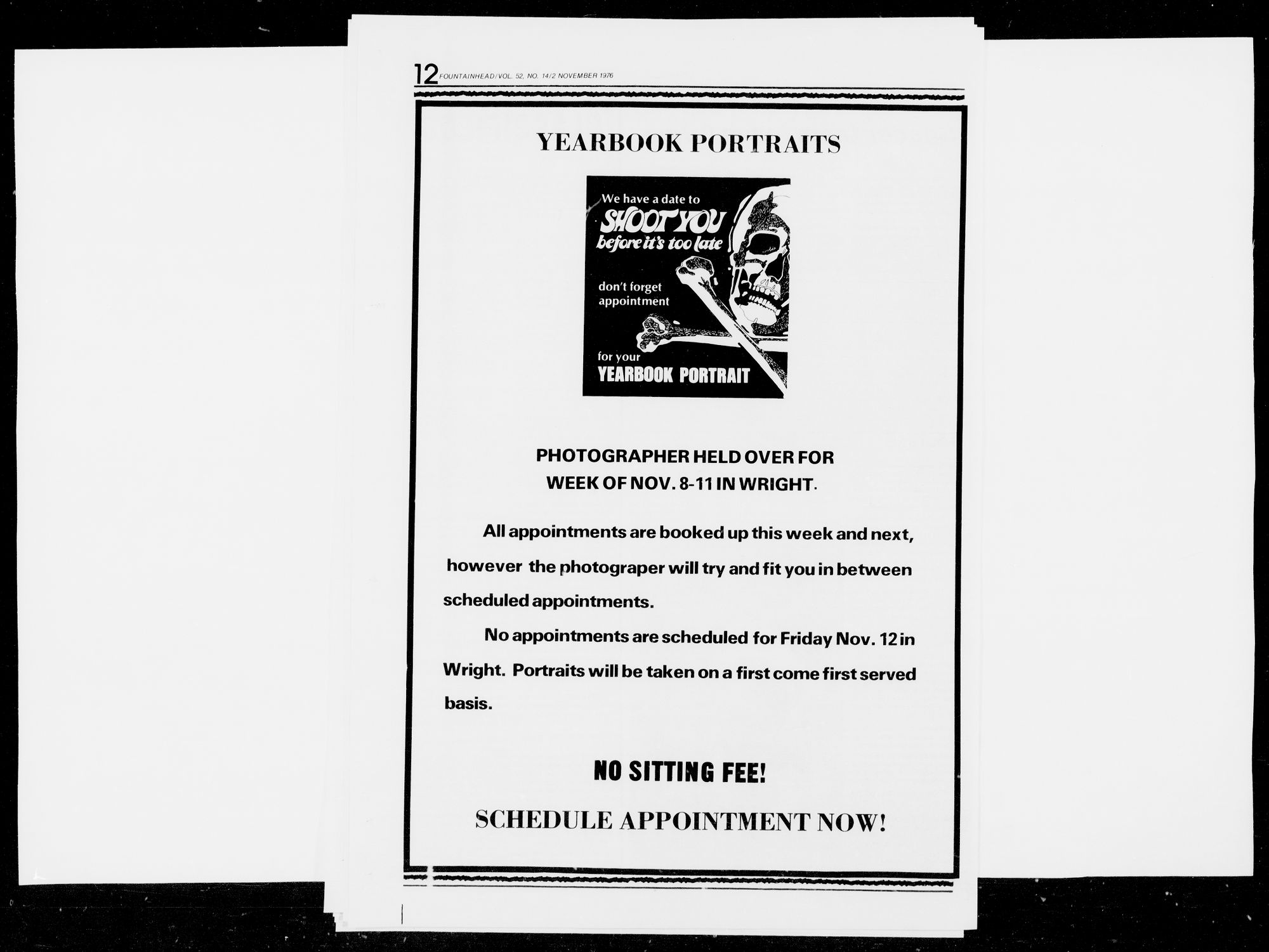 Wright. Portraits will be taken on a first come first served