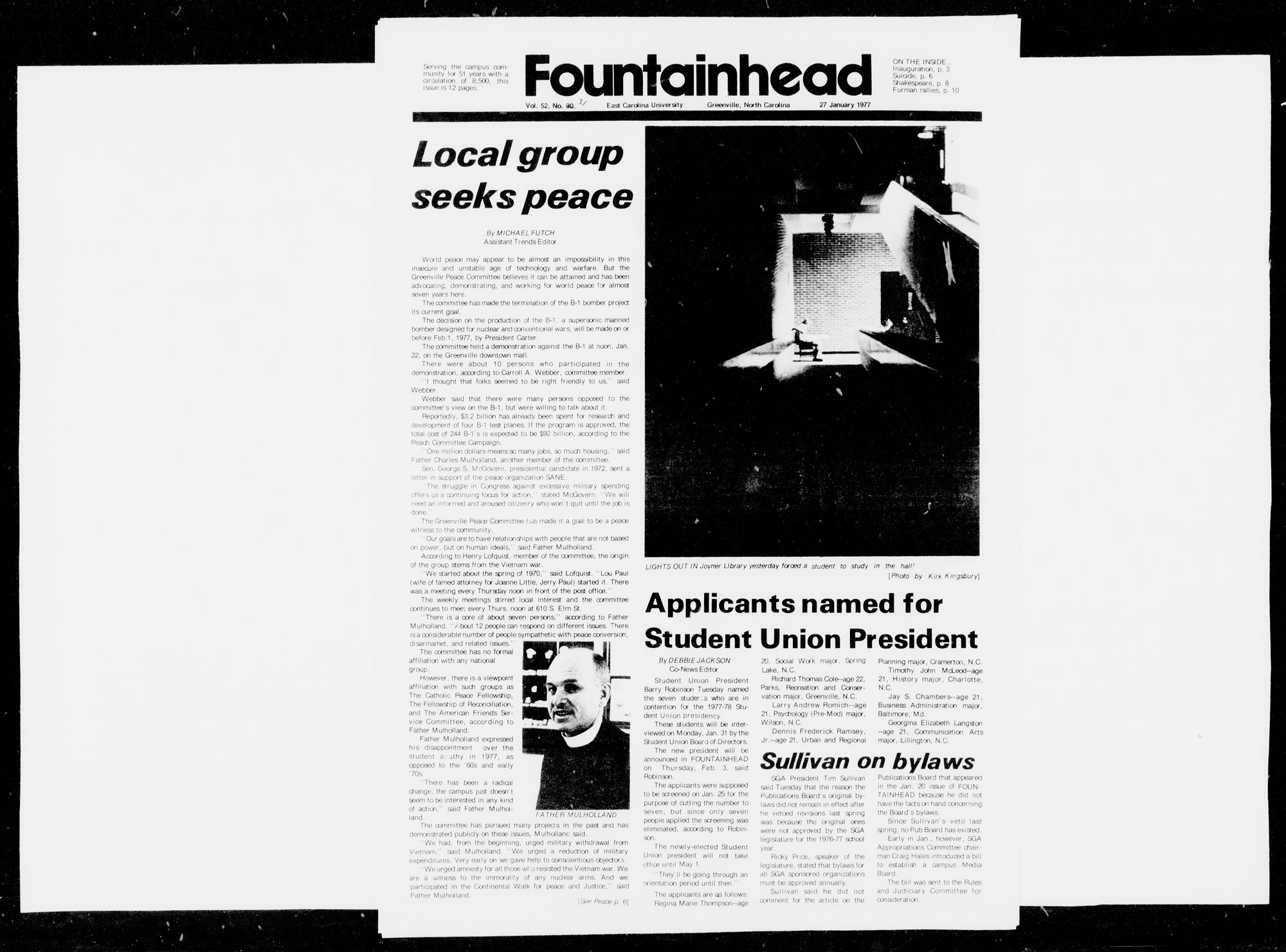 LIGHTS OUT IN Joyner Library yesterday forced a student to study in the hall!