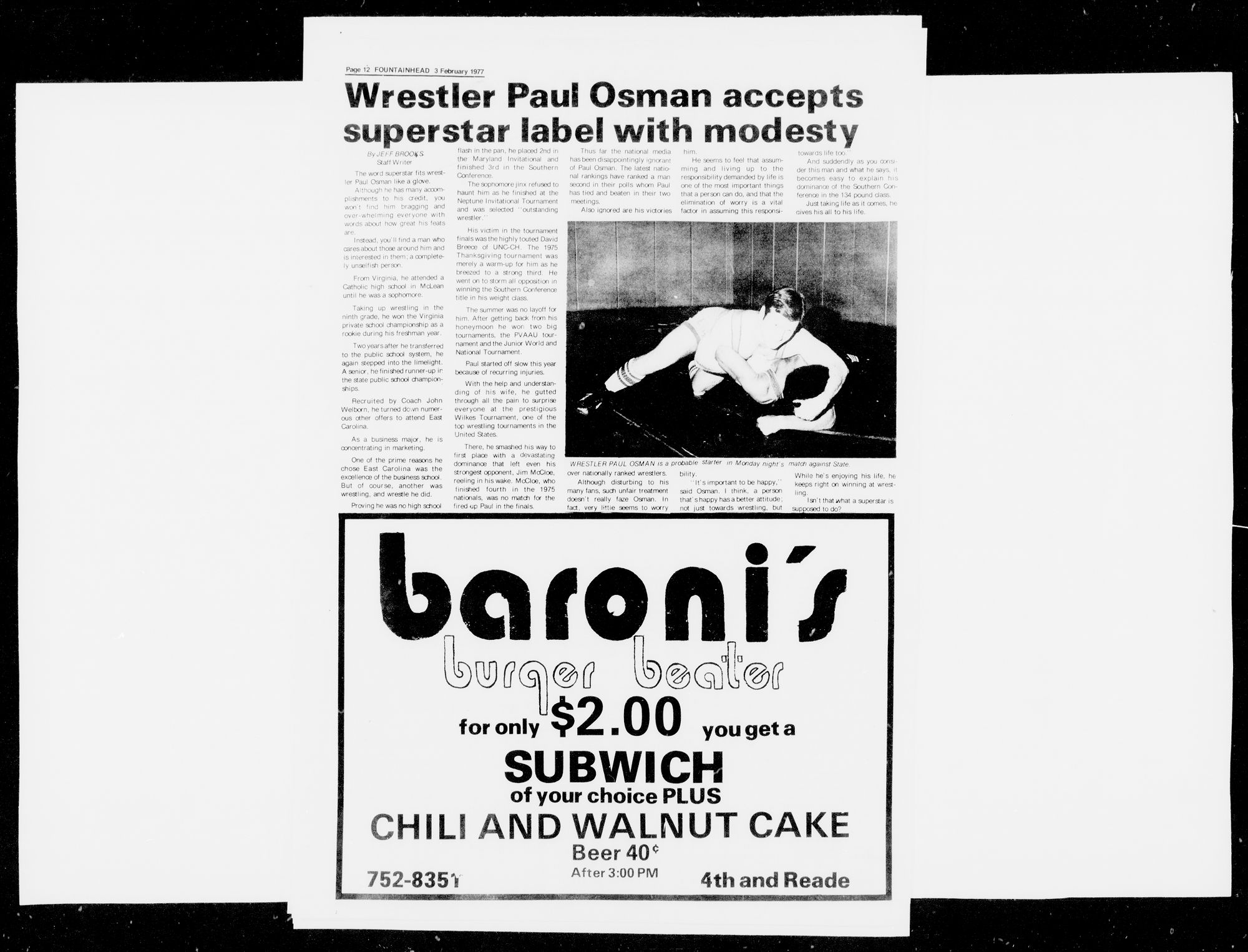 WRESTLER PAUL OSMAN is a probable starter m Monday night's match against State.