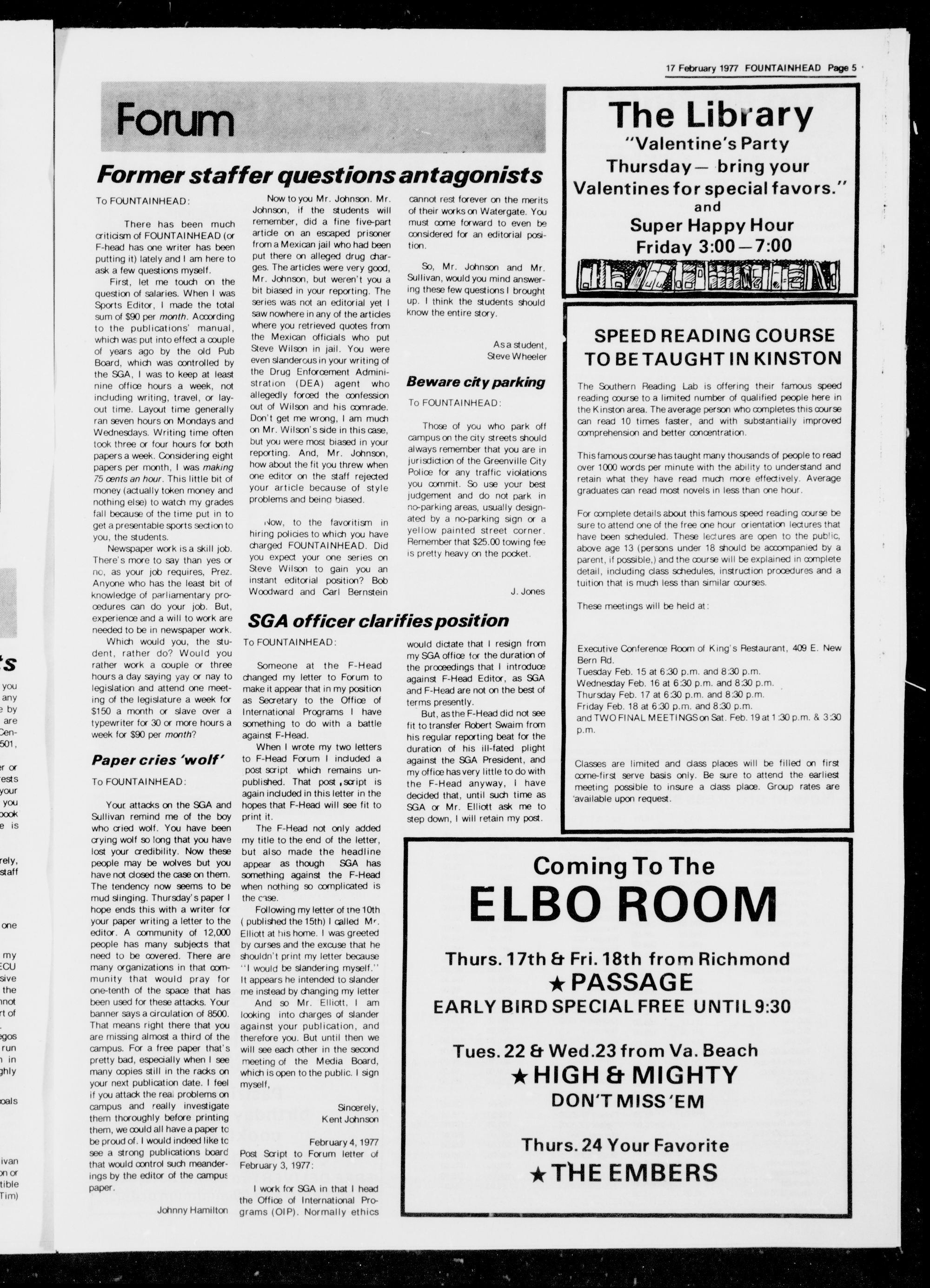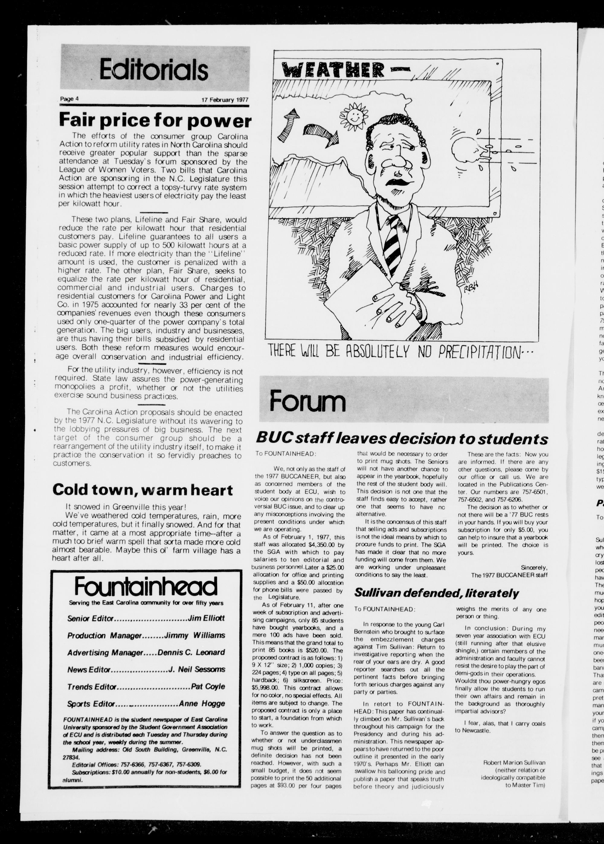 Vol. 52, No. 3fr East Carolina University Greenville, North Carolina 17 February 1977