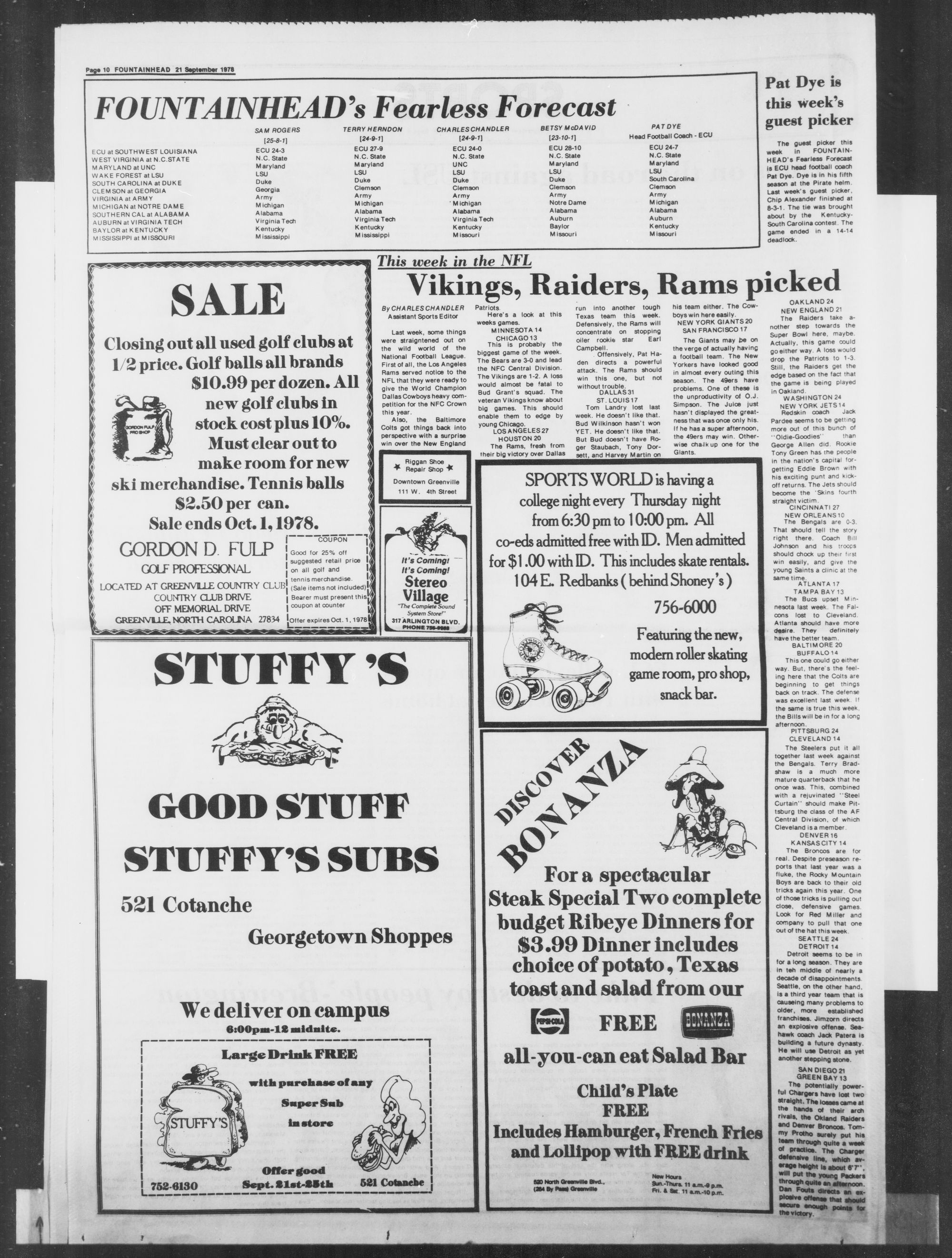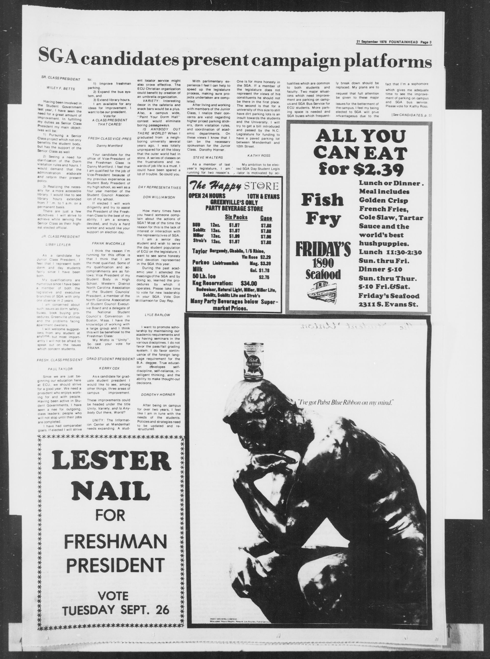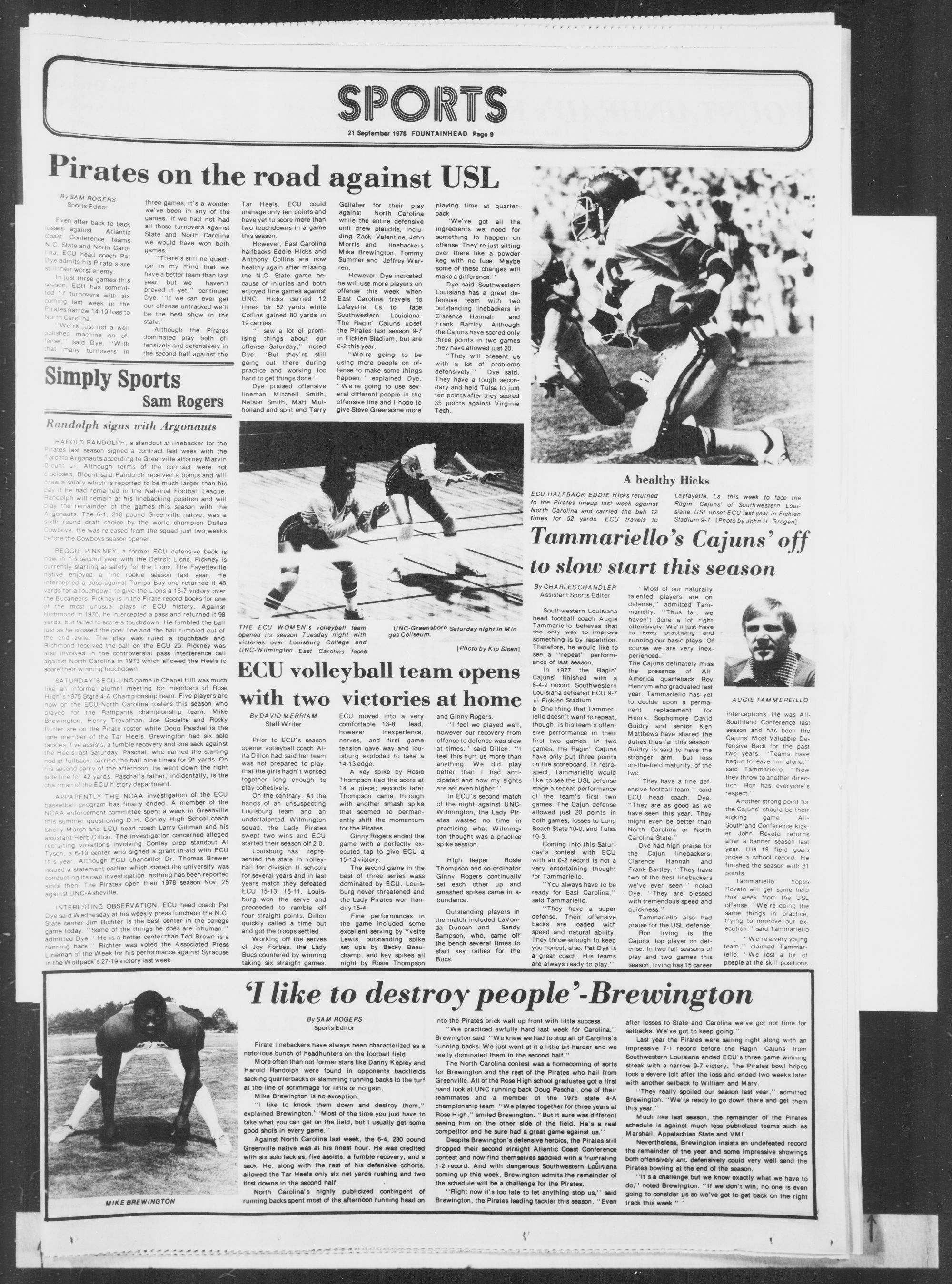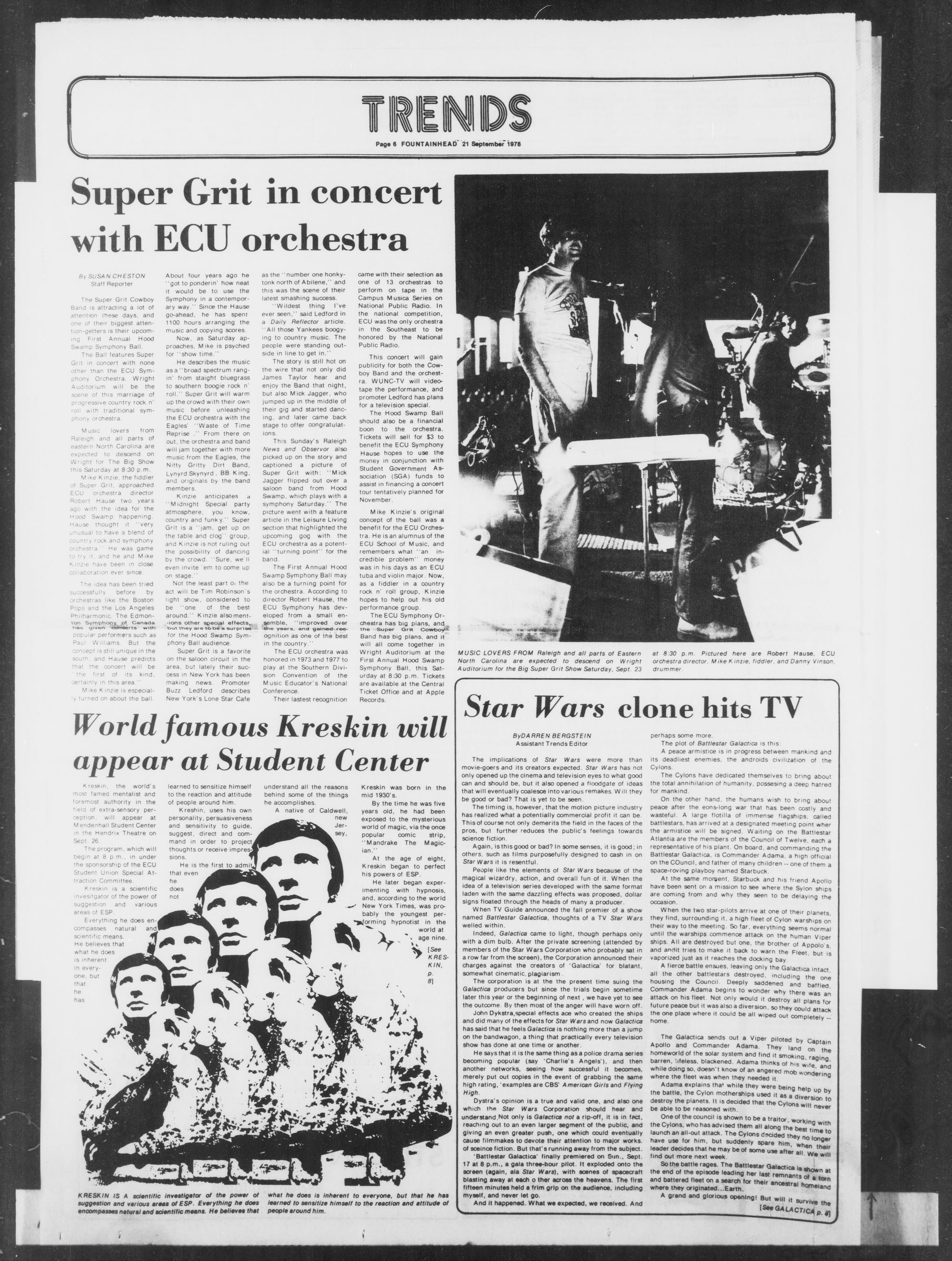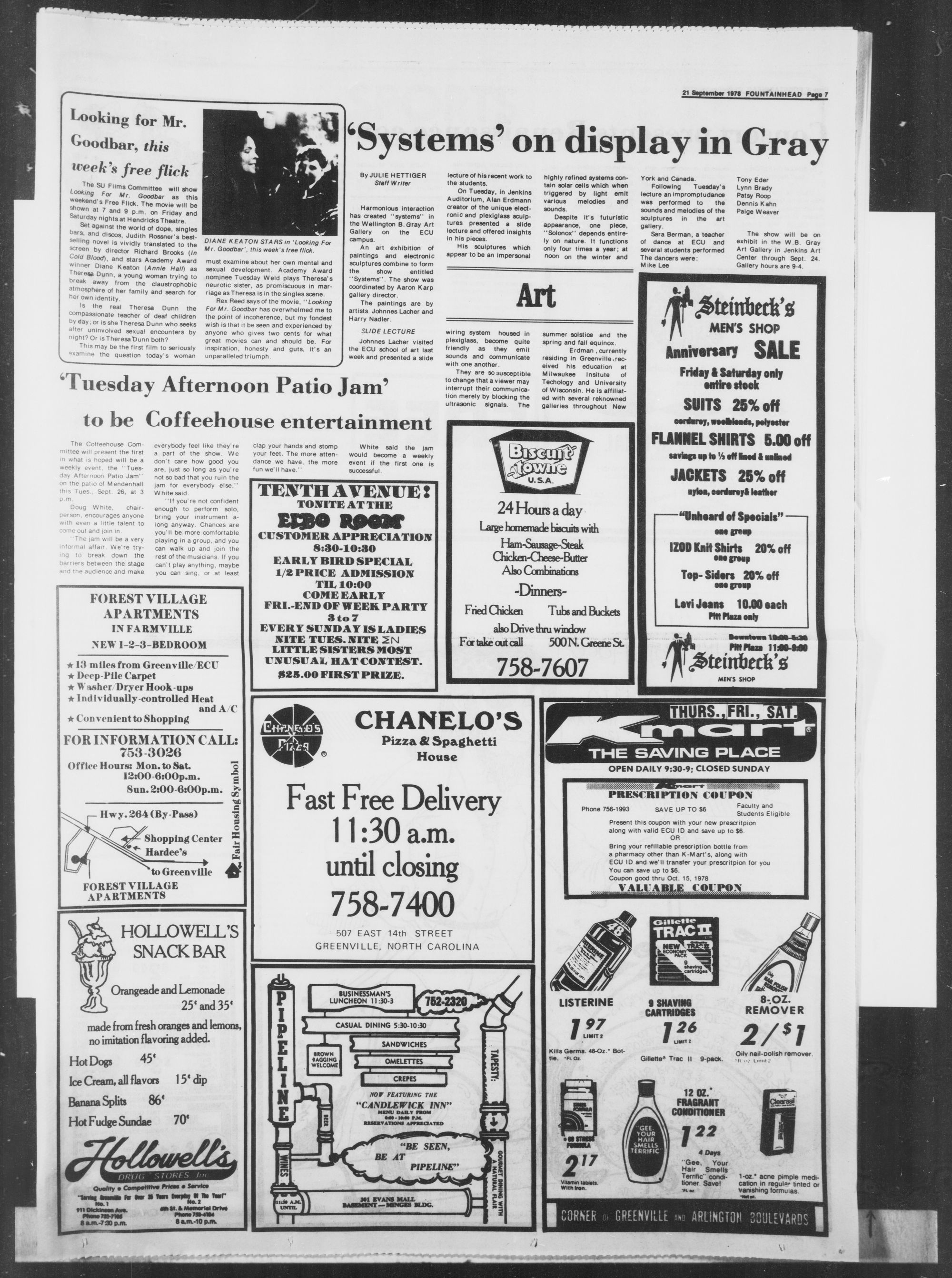 East Carolina's student-run campus newspaper was first published in 1923 as the East Carolina Teachers College News (1923-1925). It has been re-named as The Teco Echo (1925, 1926-1952), East Carolinian (1952-1969), Fountainhead (1969-1979), and The East Carolinian (1969, 1979-present). It includes local, state, national, and international stories with a focus on campus events.