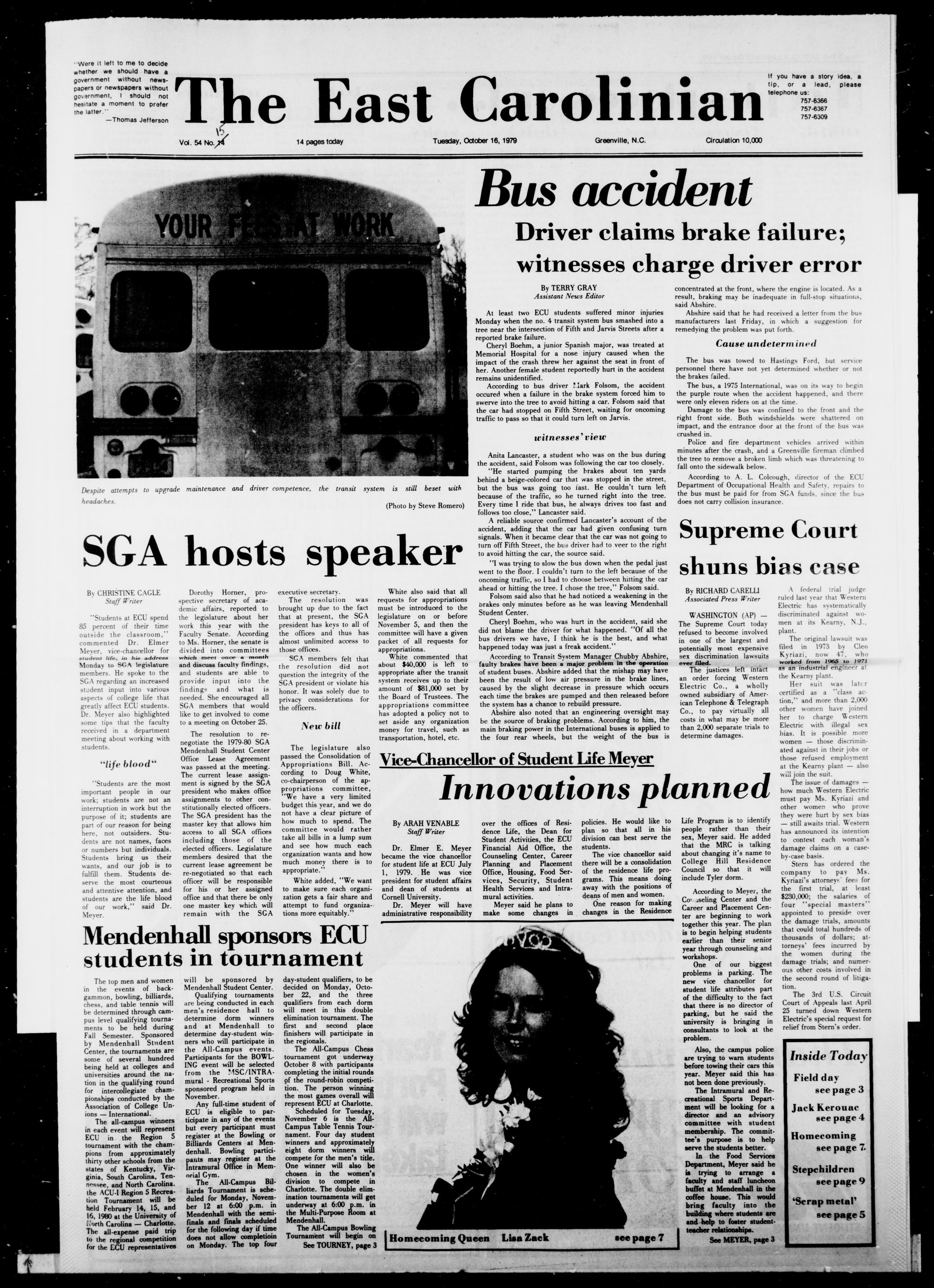 Vol. 54 No.yW 14 pages today Tuesday, October 16,1979 Greenville, N.C. Circulation 10,000