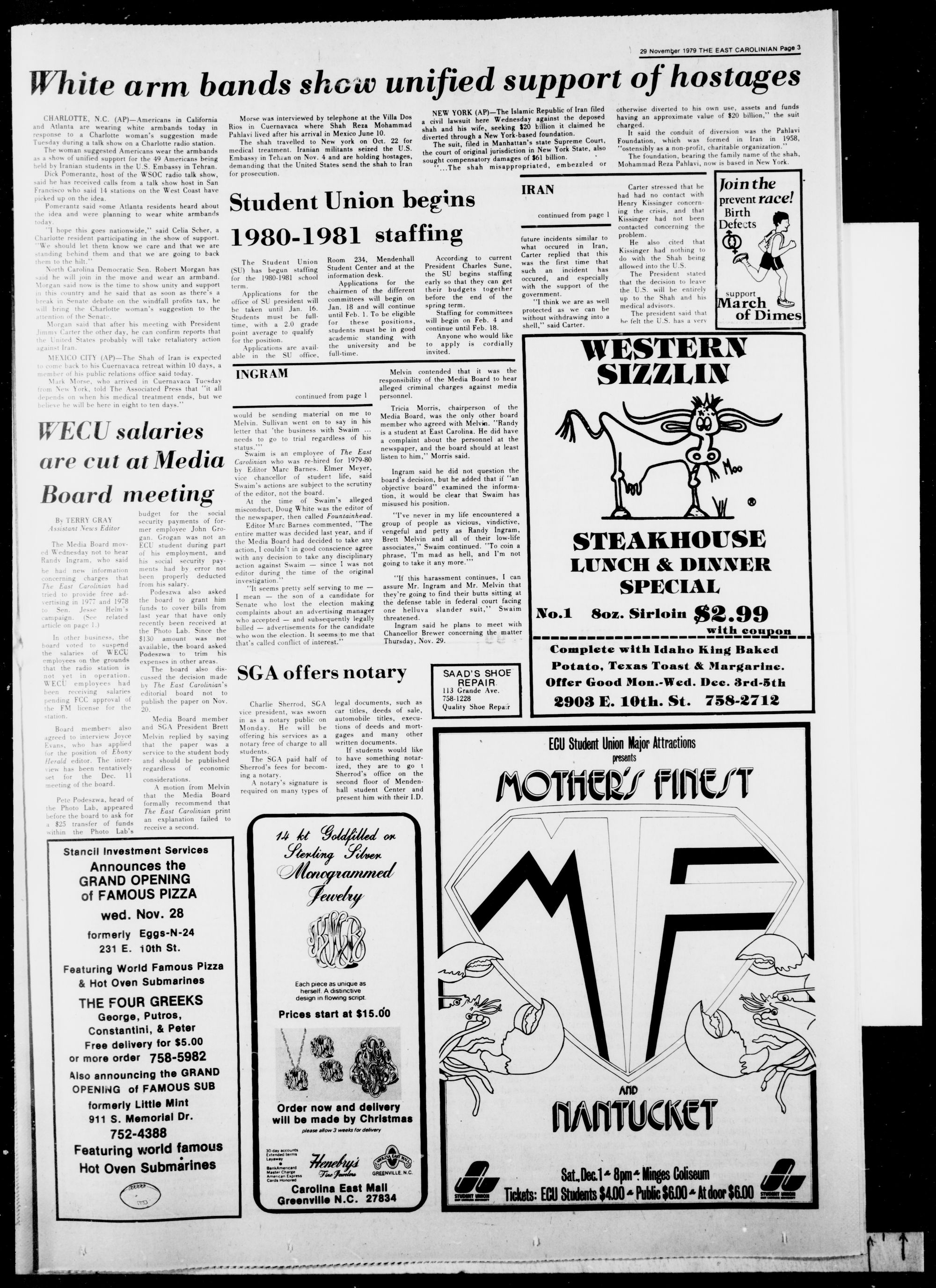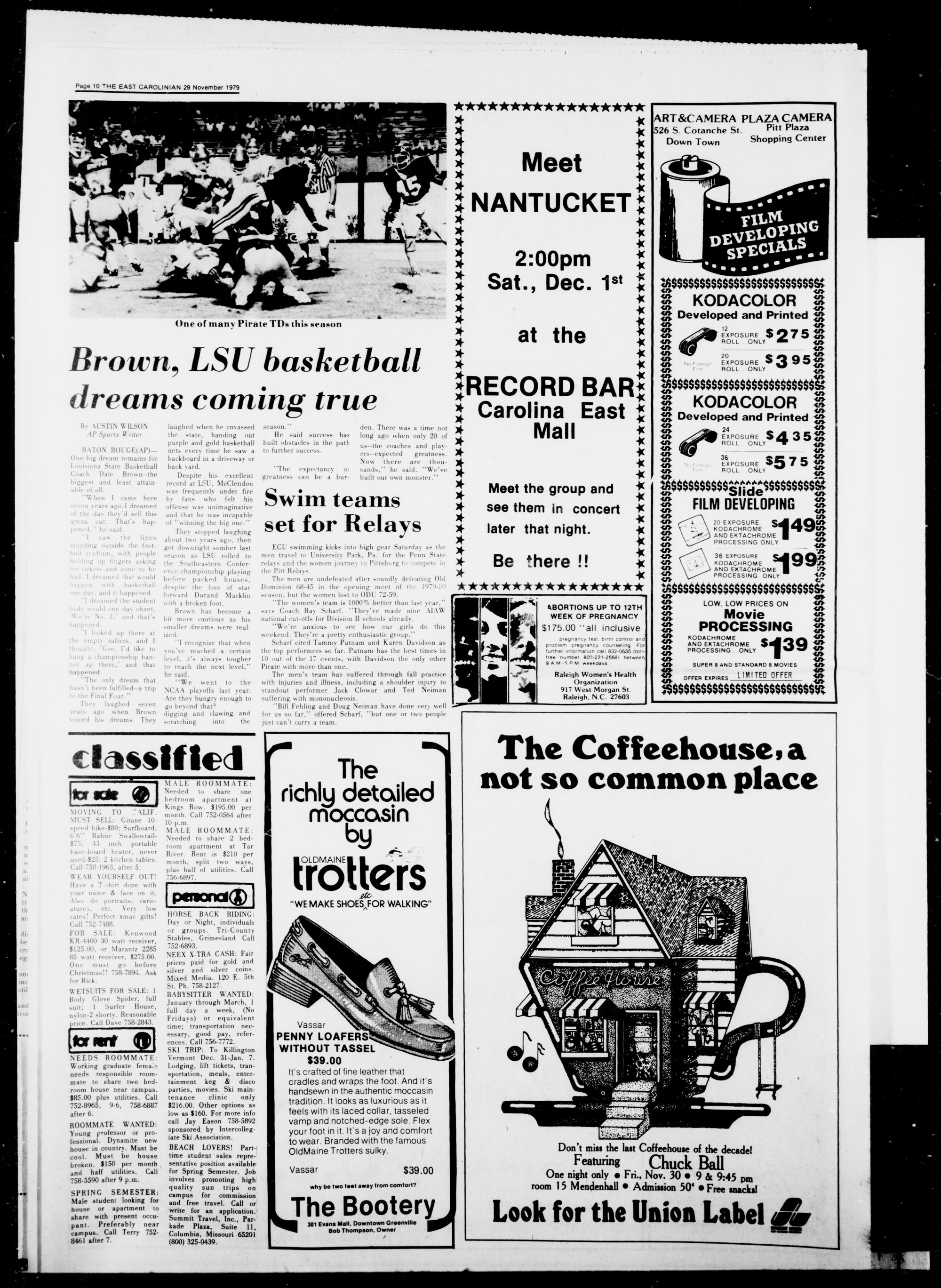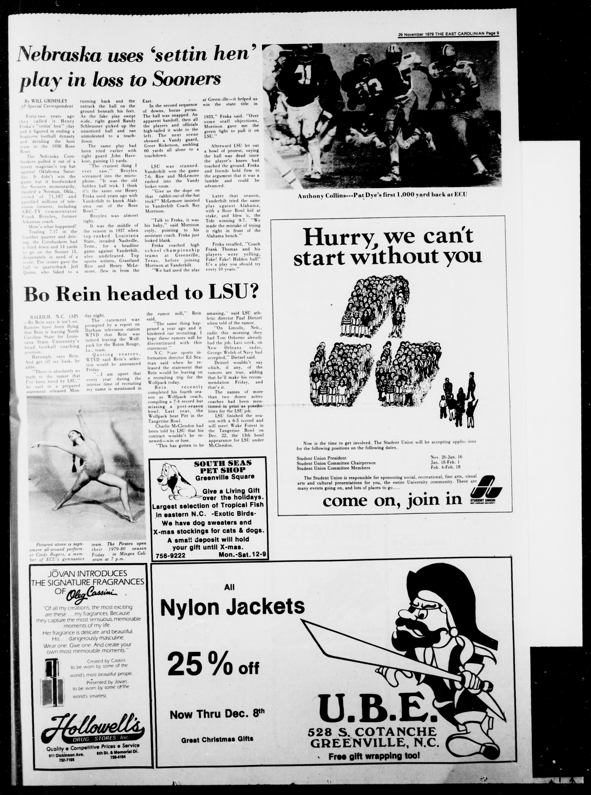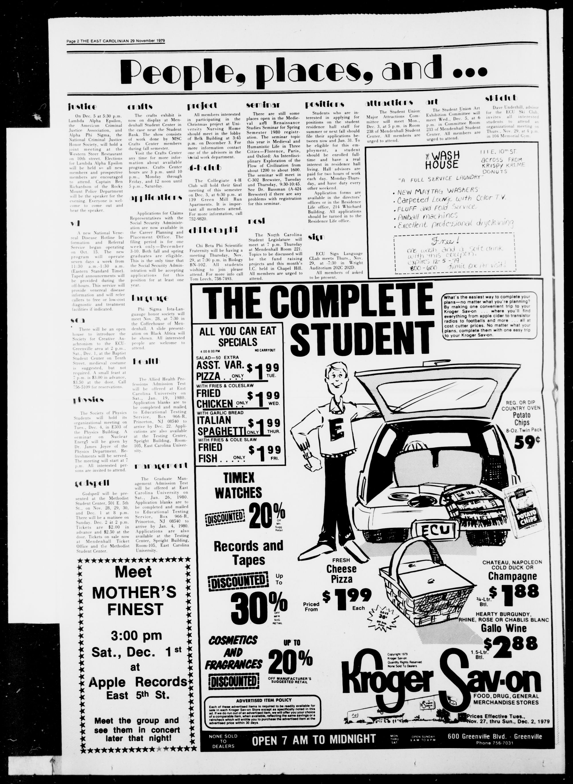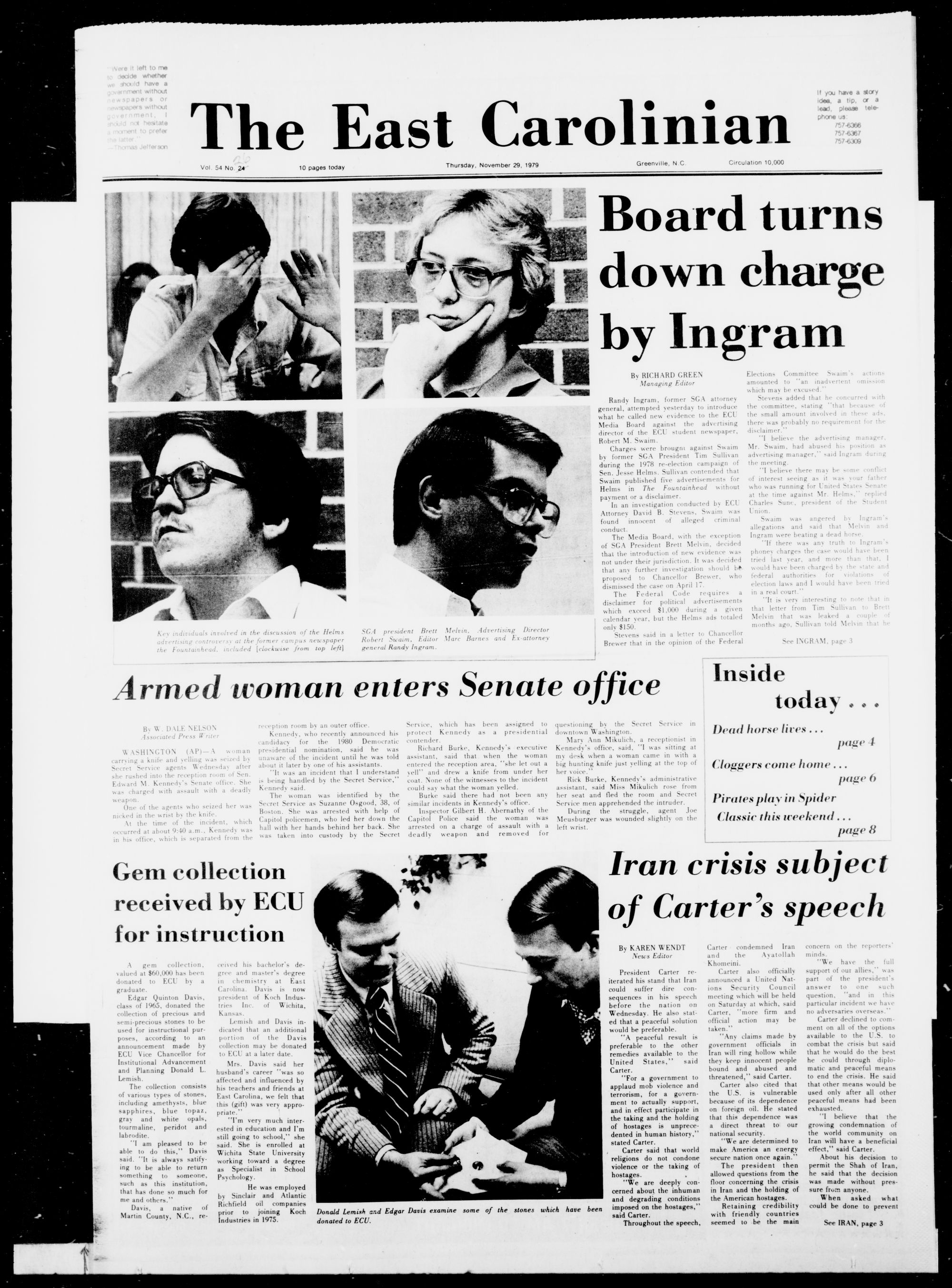East Carolina's student-run campus newspaper was first published in 1923 as the East Carolina Teachers College News (1923-1925). It has been re-named as The Teco Echo (1925, 1926-1952), East Carolinian (1952-1969), Fountainhead (1969-1979), and The East Carolinian (1969, 1979-present). It includes local, state, national, and international stories with a focus on campus events.