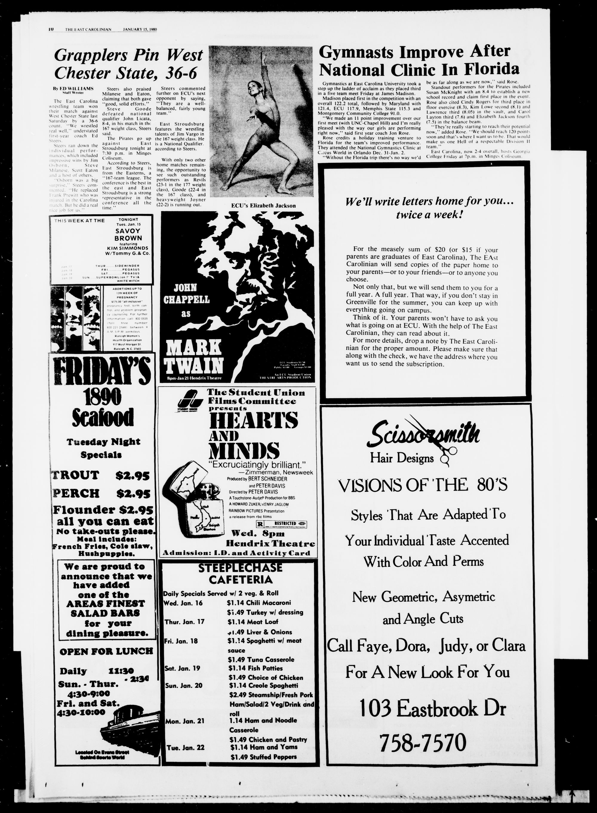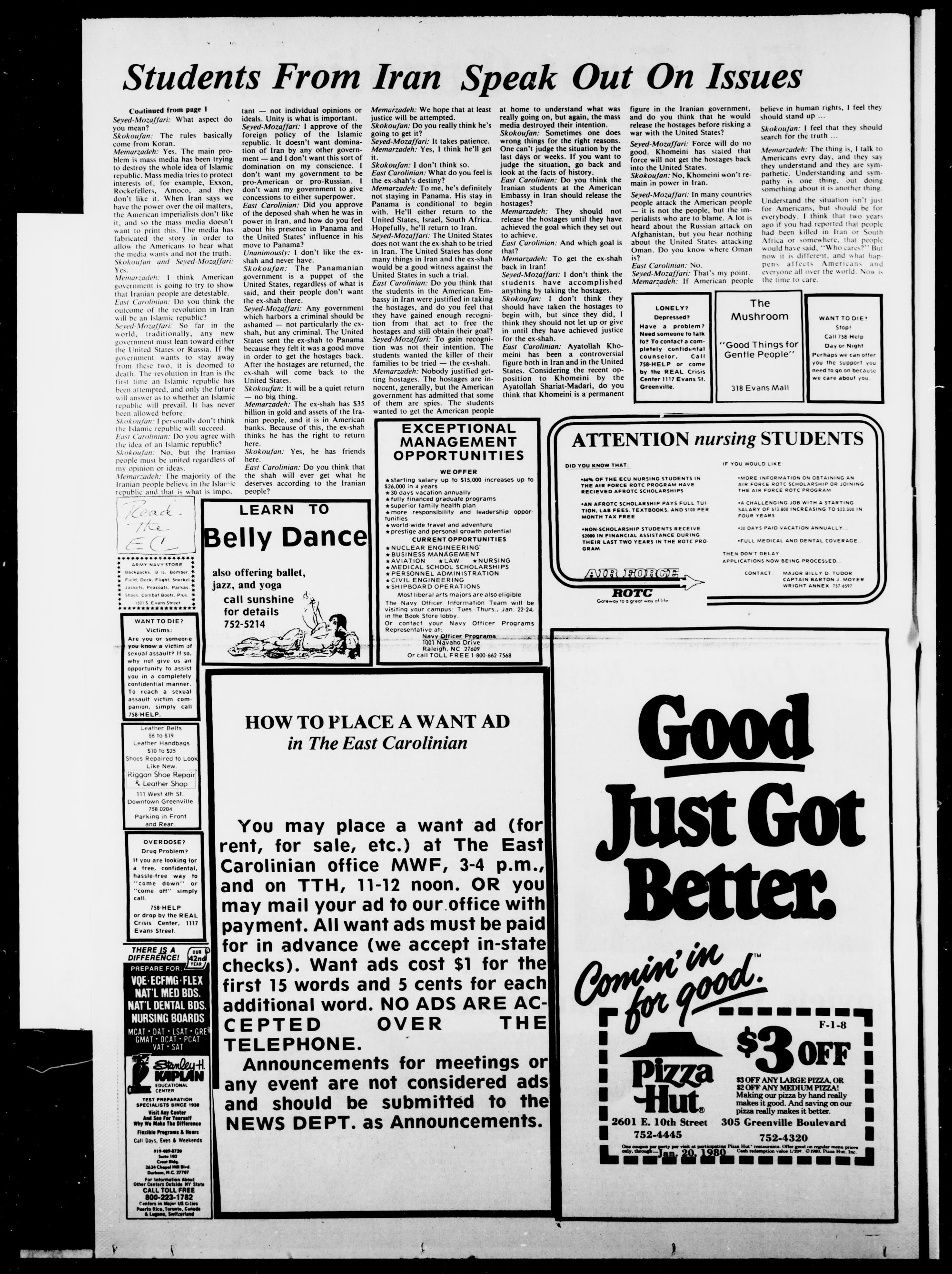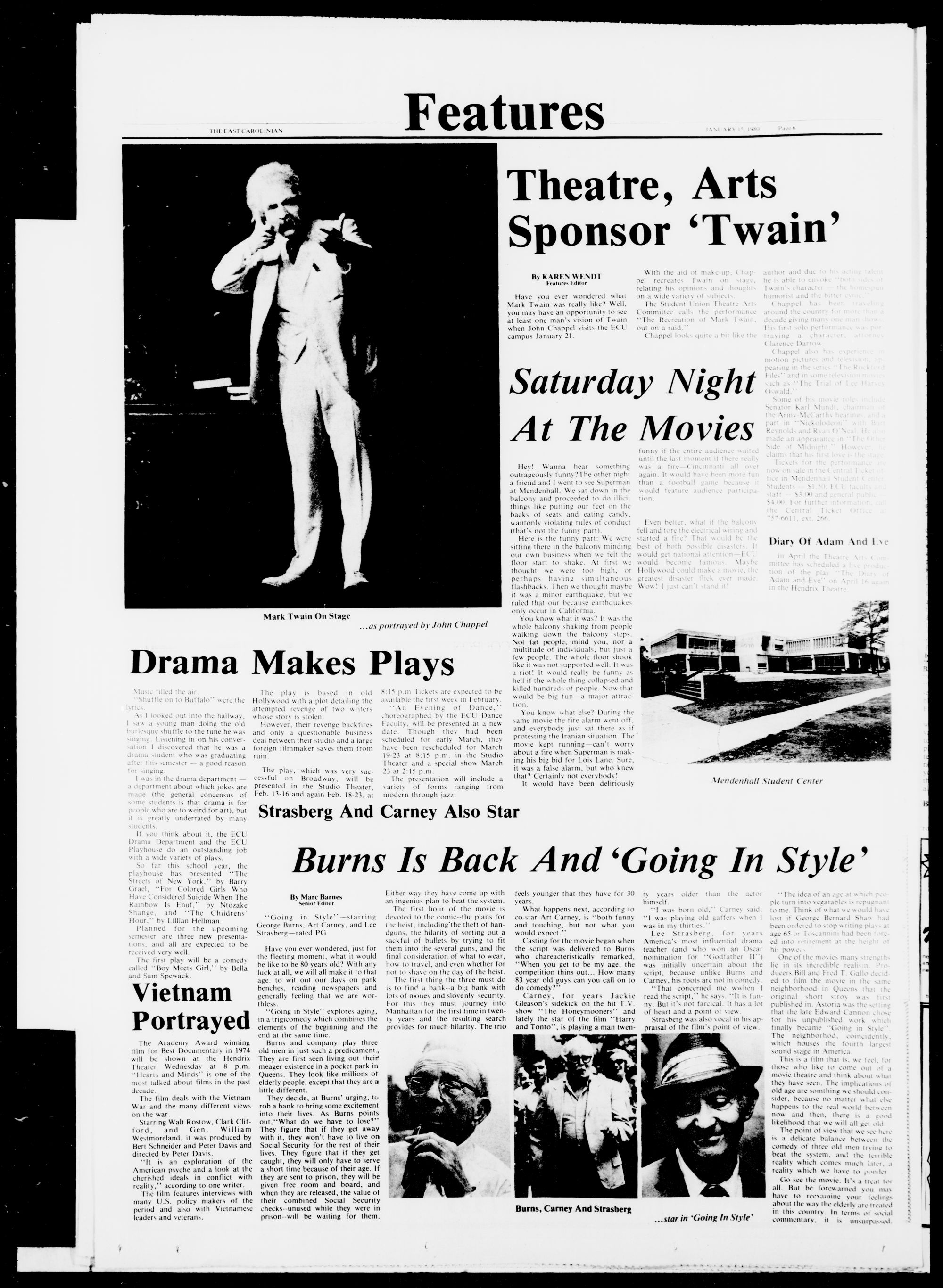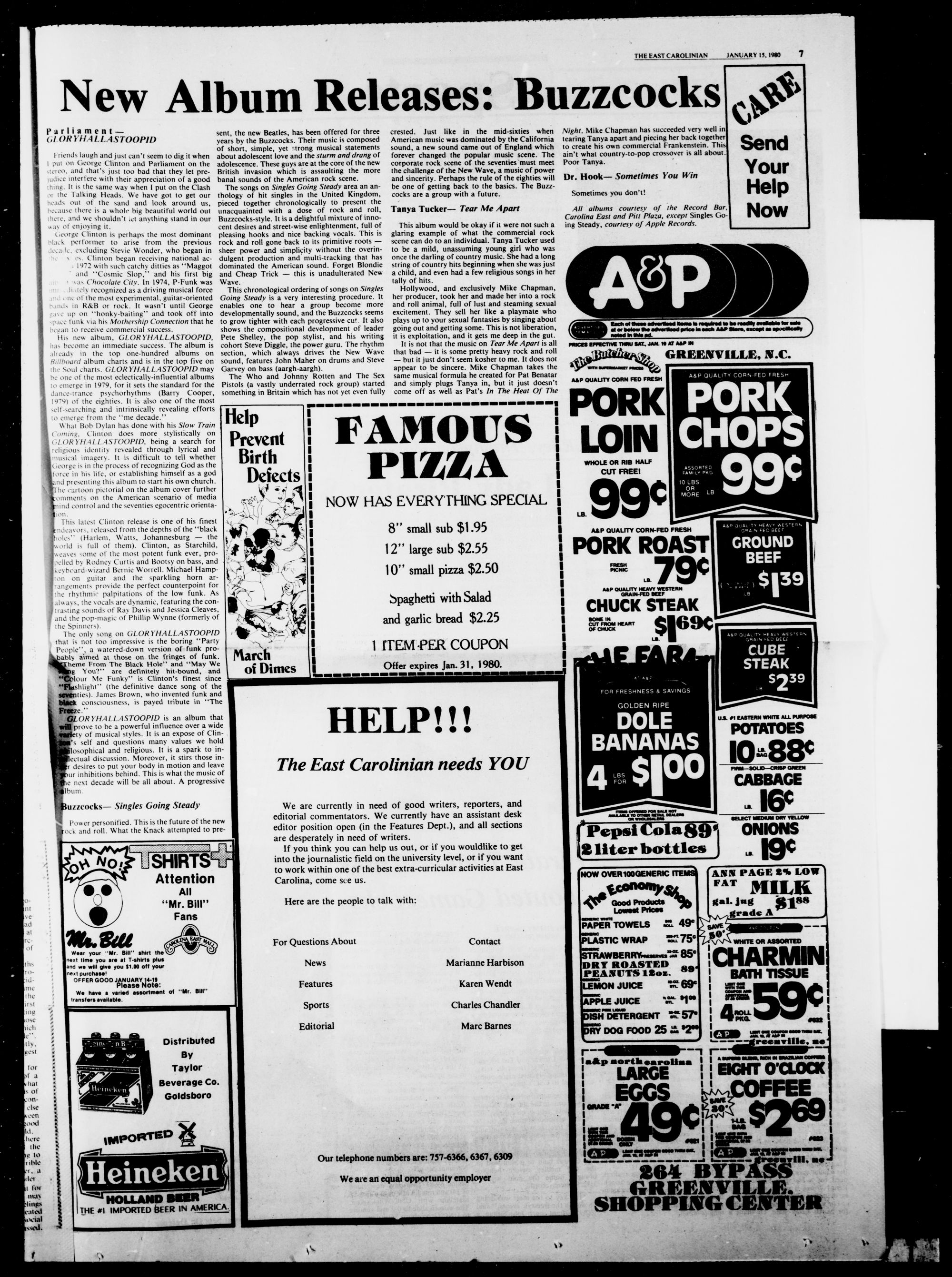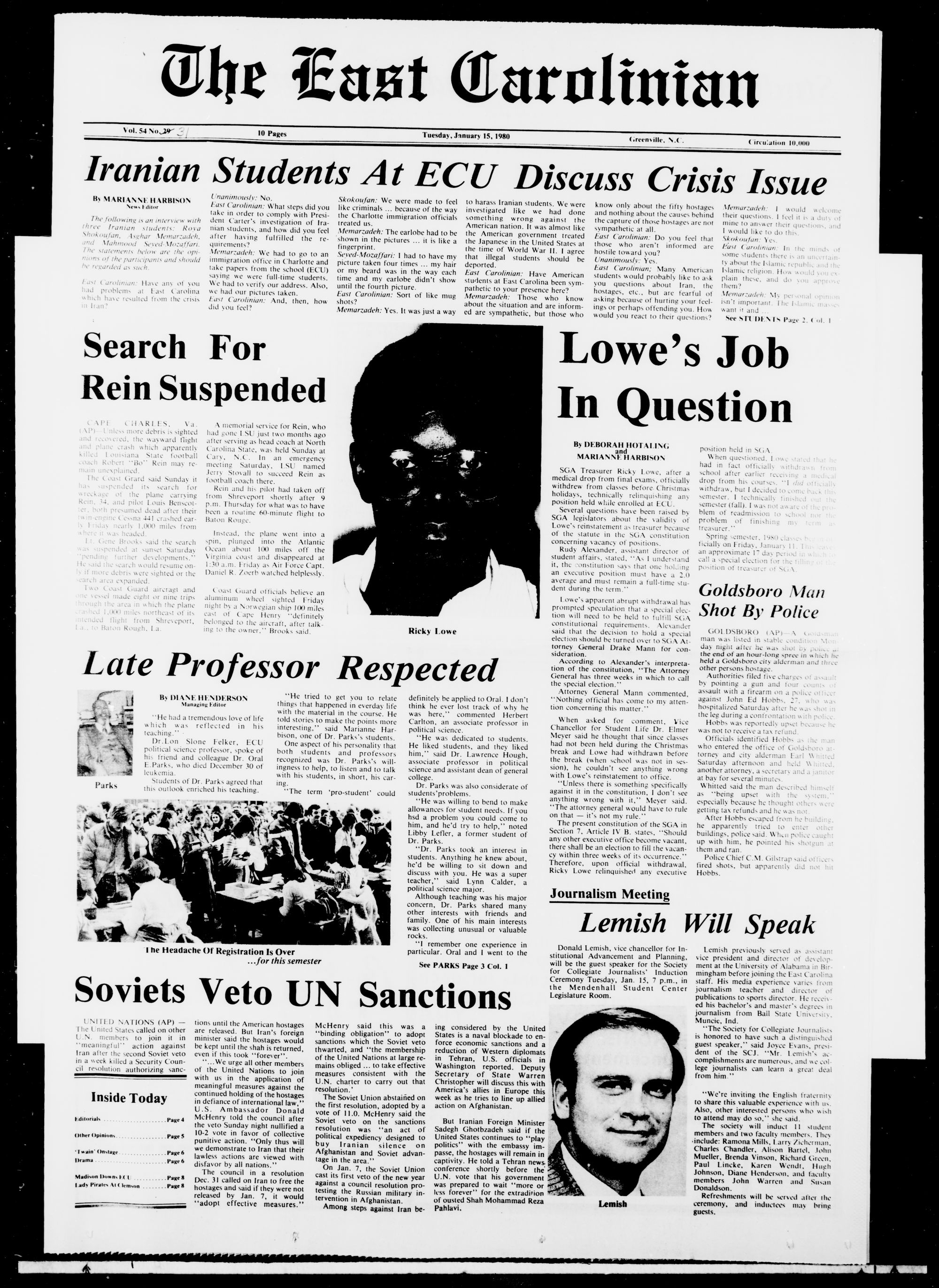 East Carolina's student-run campus newspaper was first published in 1923 as the East Carolina Teachers College News (1923-1925). It has been re-named as The Teco Echo (1925, 1926-1952), East Carolinian (1952-1969), Fountainhead (1969-1979), and The East Carolinian (1969, 1979-present). It includes local, state, national, and international stories with a focus on campus events.