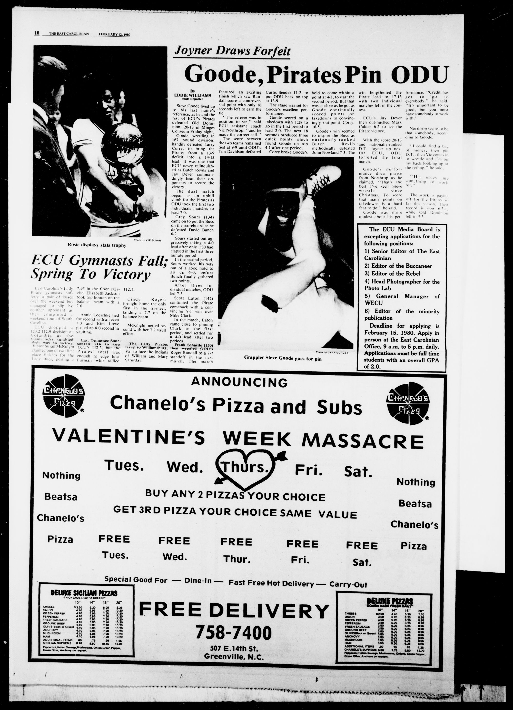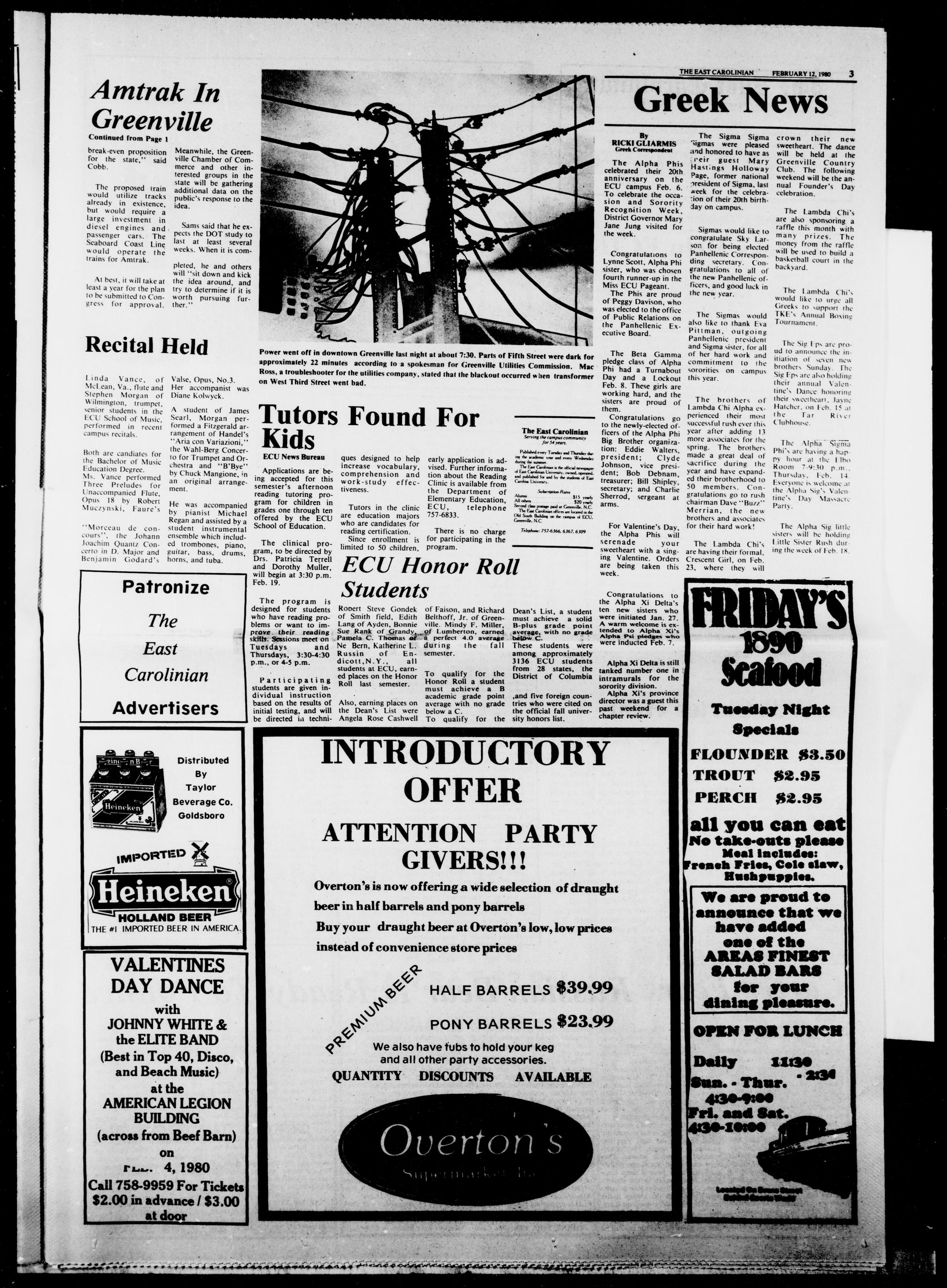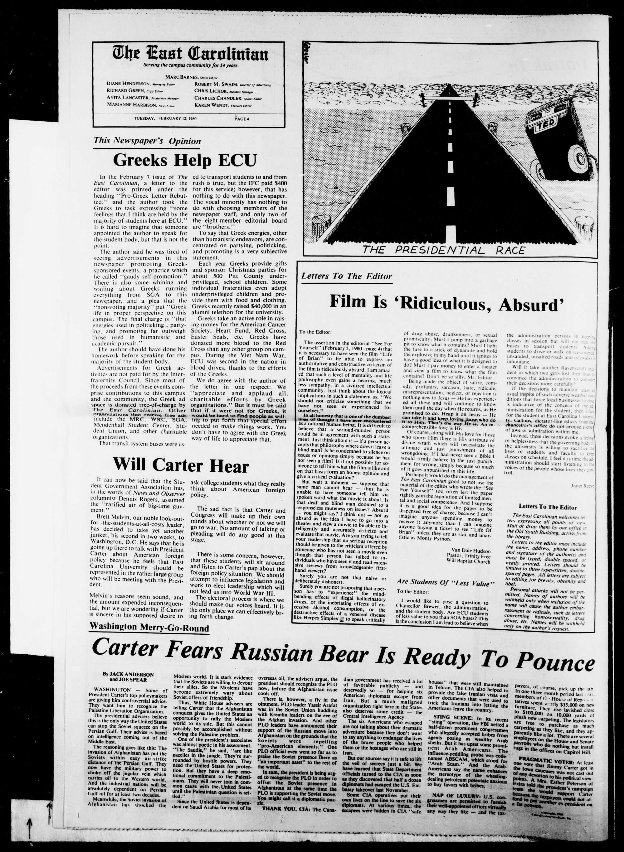 East Carolina's student-run campus newspaper was first published in 1923 as the East Carolina Teachers College News (1923-1925). It has been re-named as The Teco Echo (1925, 1926-1952), East Carolinian (1952-1969), Fountainhead (1969-1979), and The East Carolinian (1969, 1979-present). It includes local, state, national, and international stories with a focus on campus events.