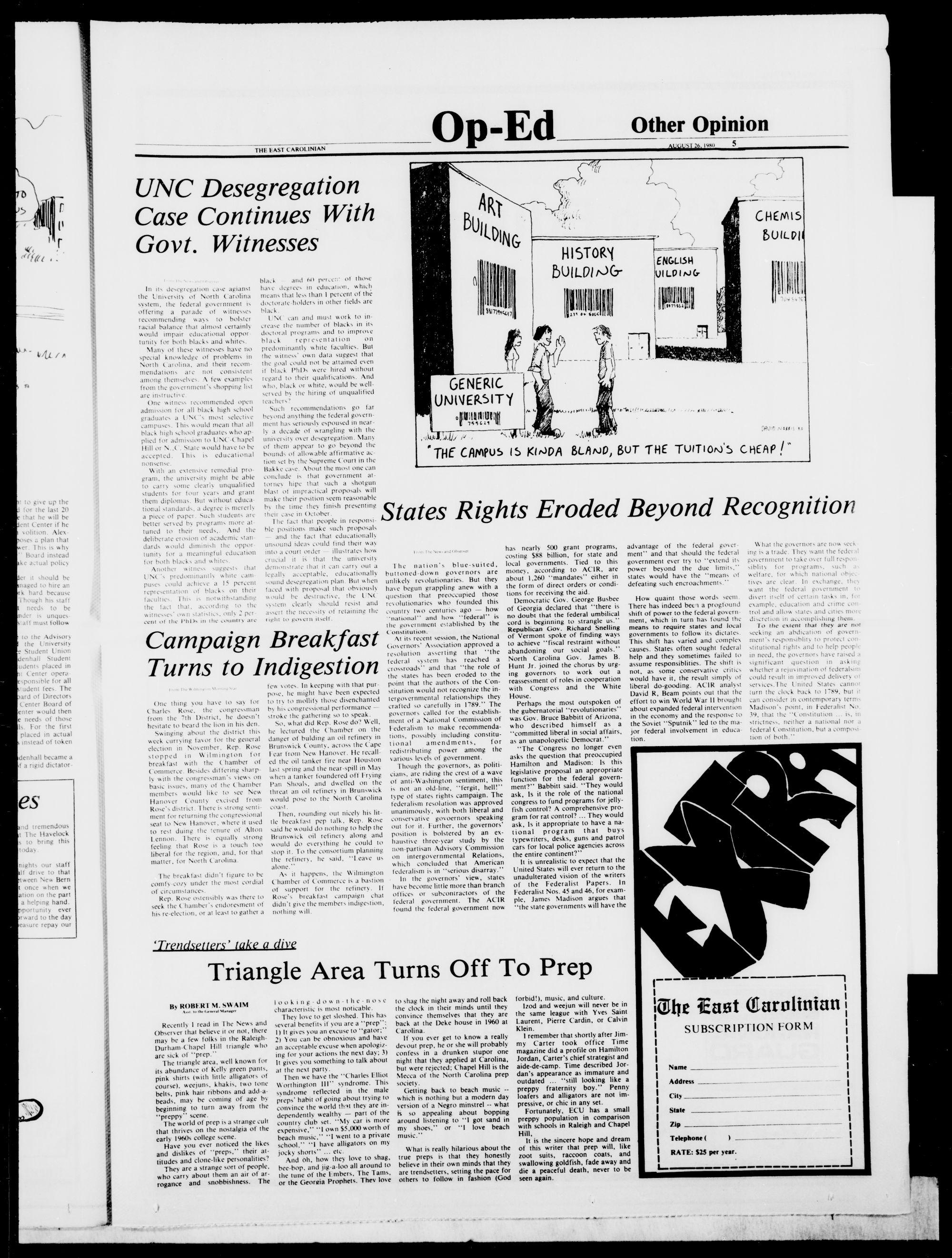 subscribe to the East Carolinian for one year by