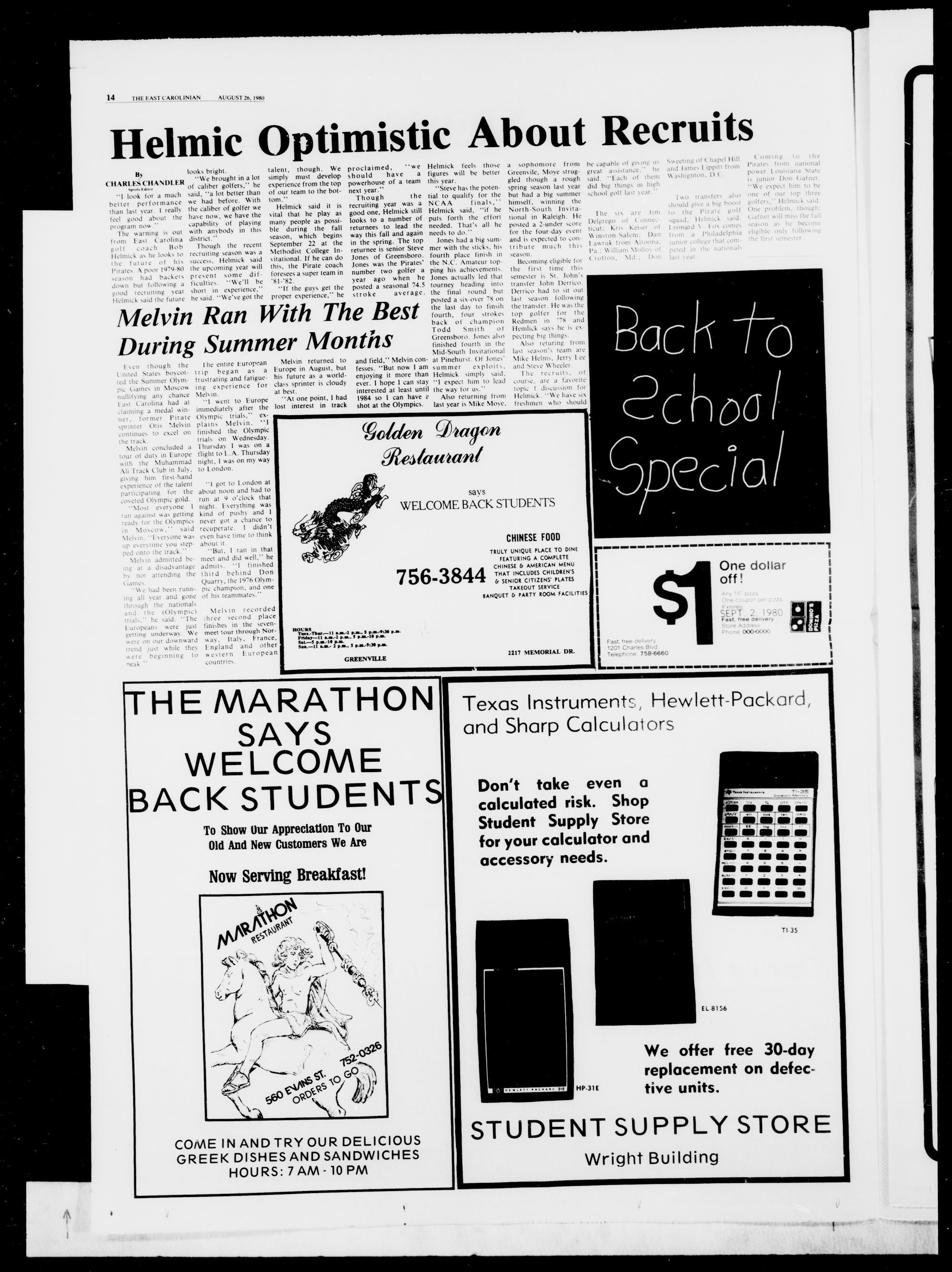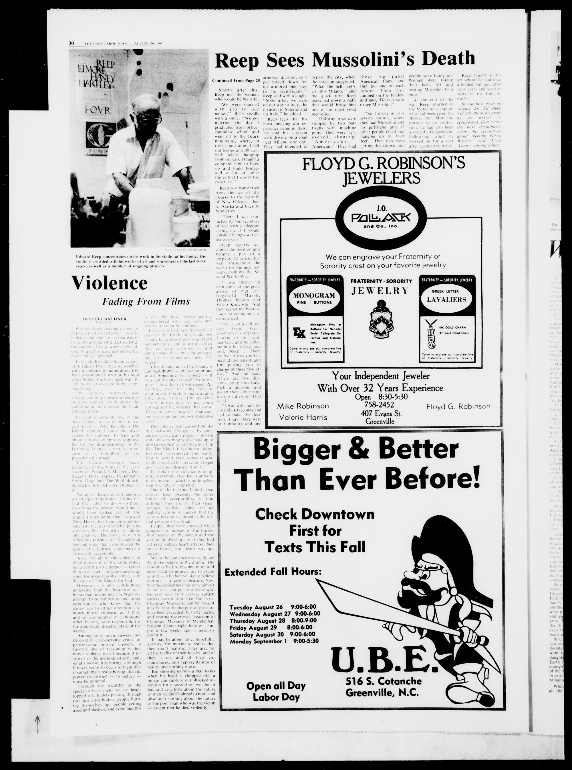 below to the East Carolinian, or just drop by the