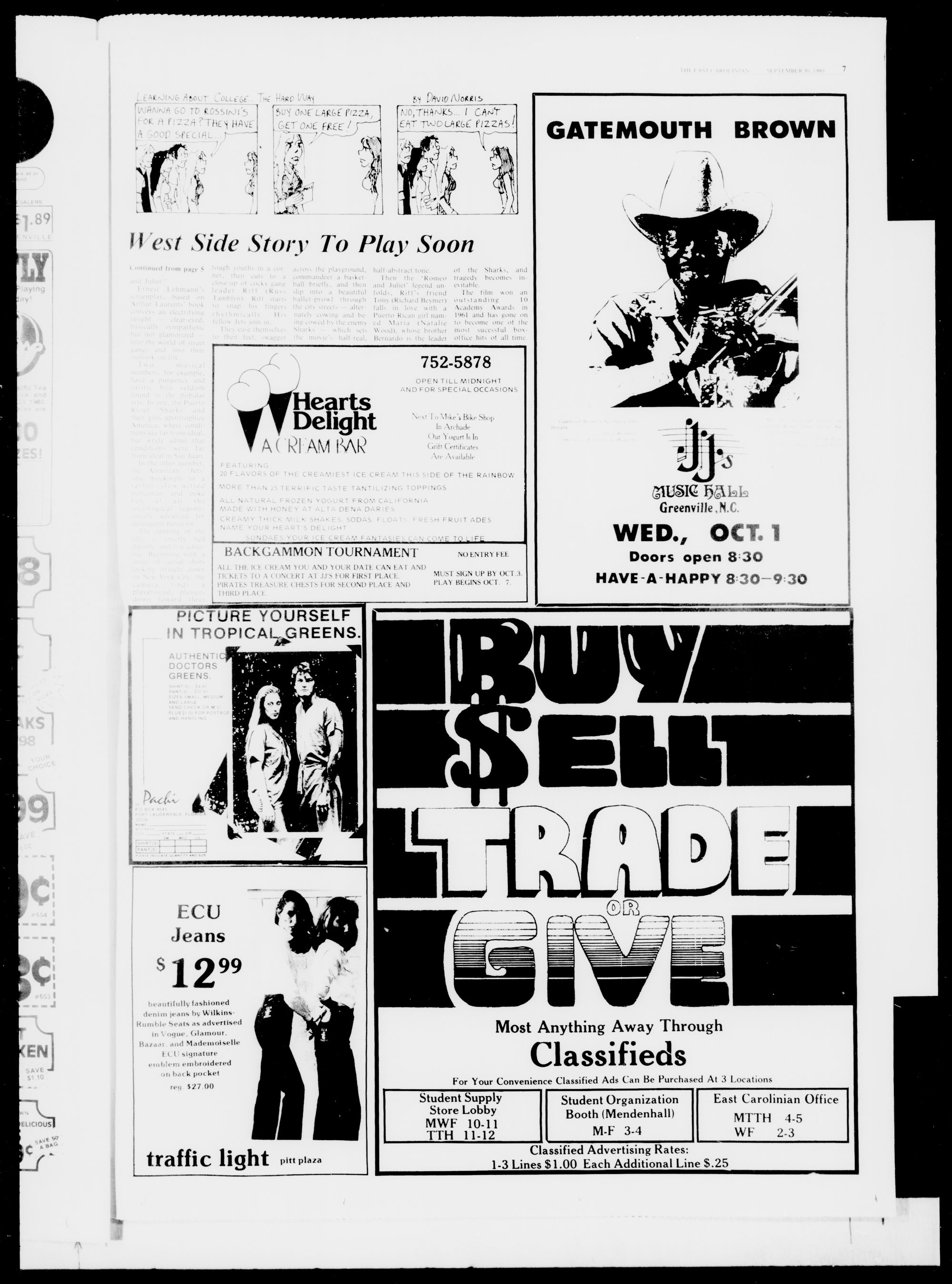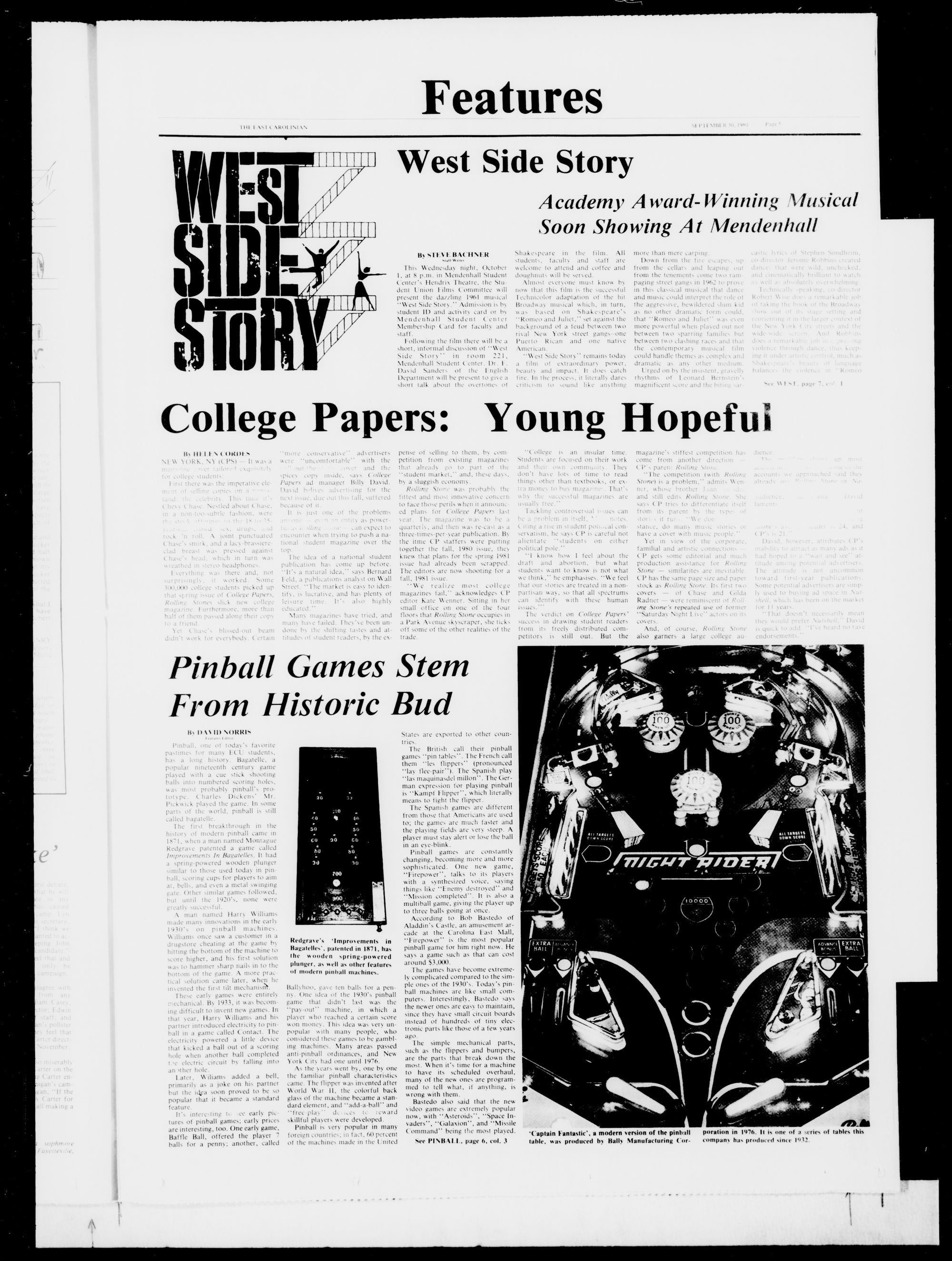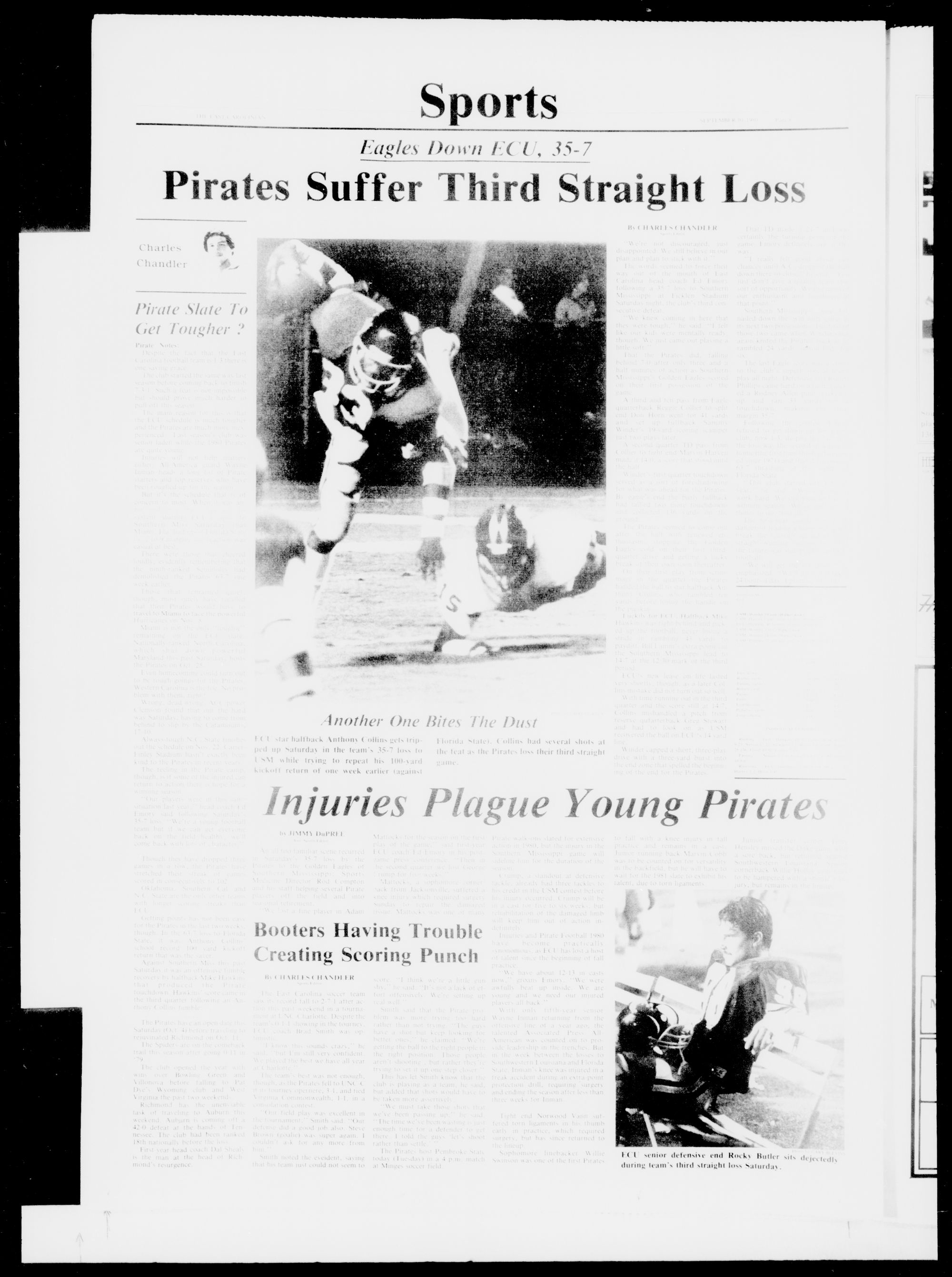 East Carolina's student-run campus newspaper was first published in 1923 as the East Carolina Teachers College News (1923-1925). It has been re-named as The Teco Echo (1925, 1926-1952), East Carolinian (1952-1969), Fountainhead (1969-1979), and The East Carolinian (1969, 1979-present). It includes local, state, national, and international stories with a focus on campus events.