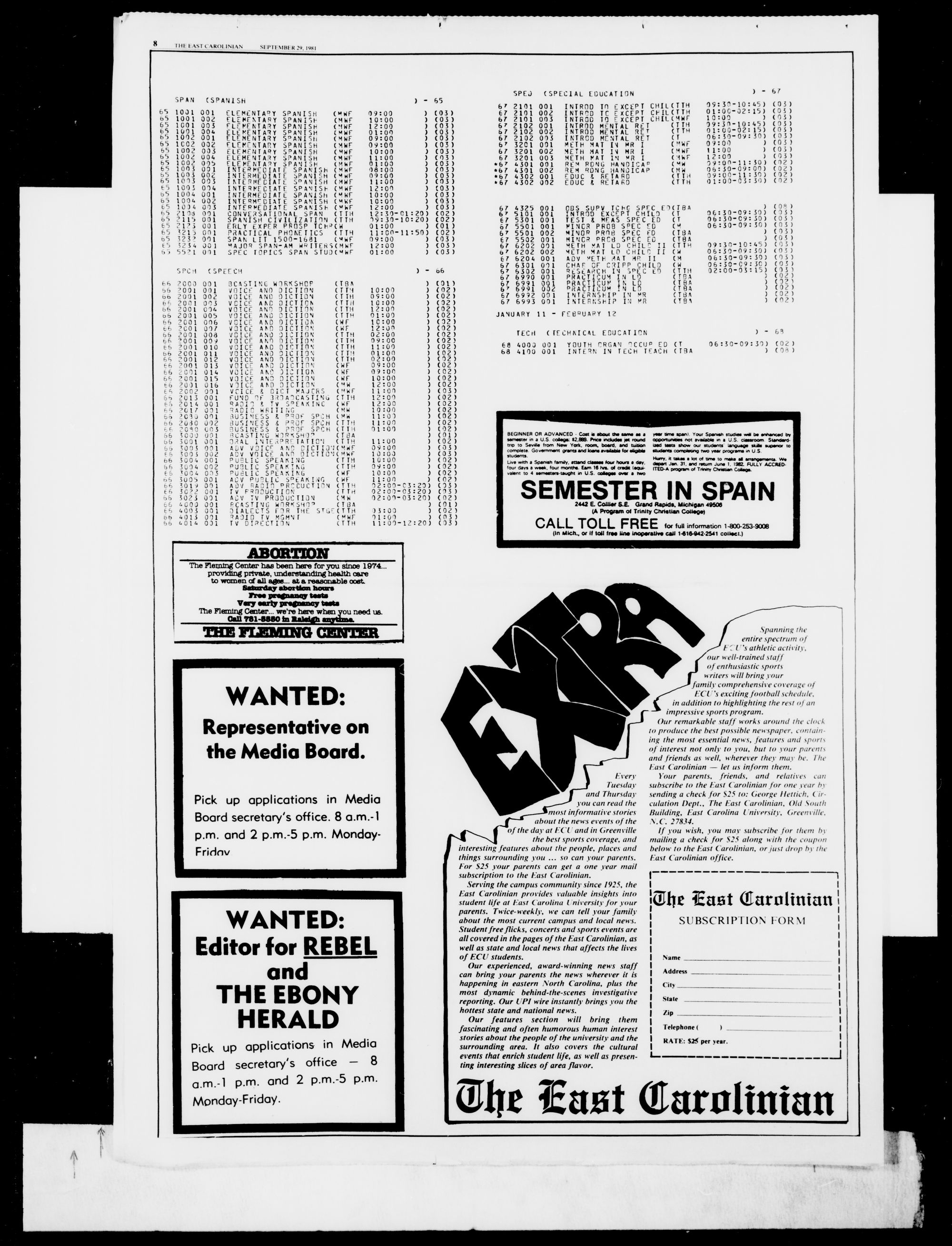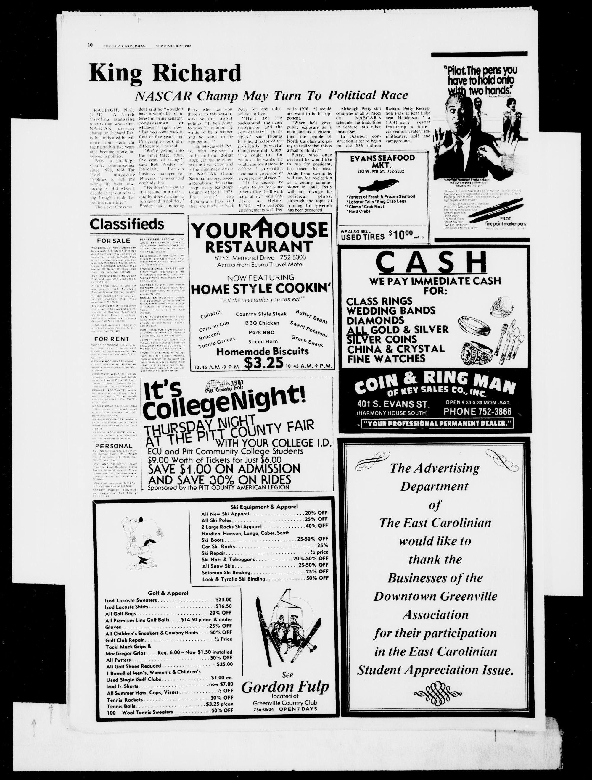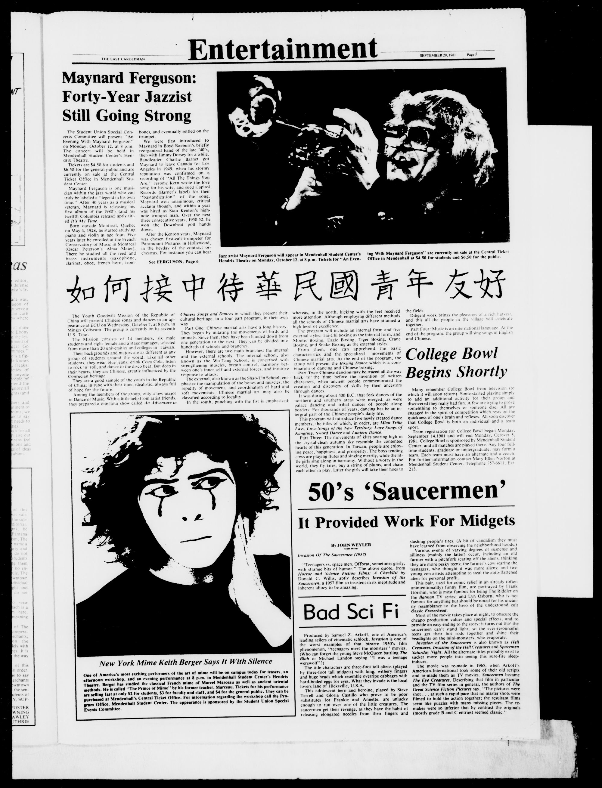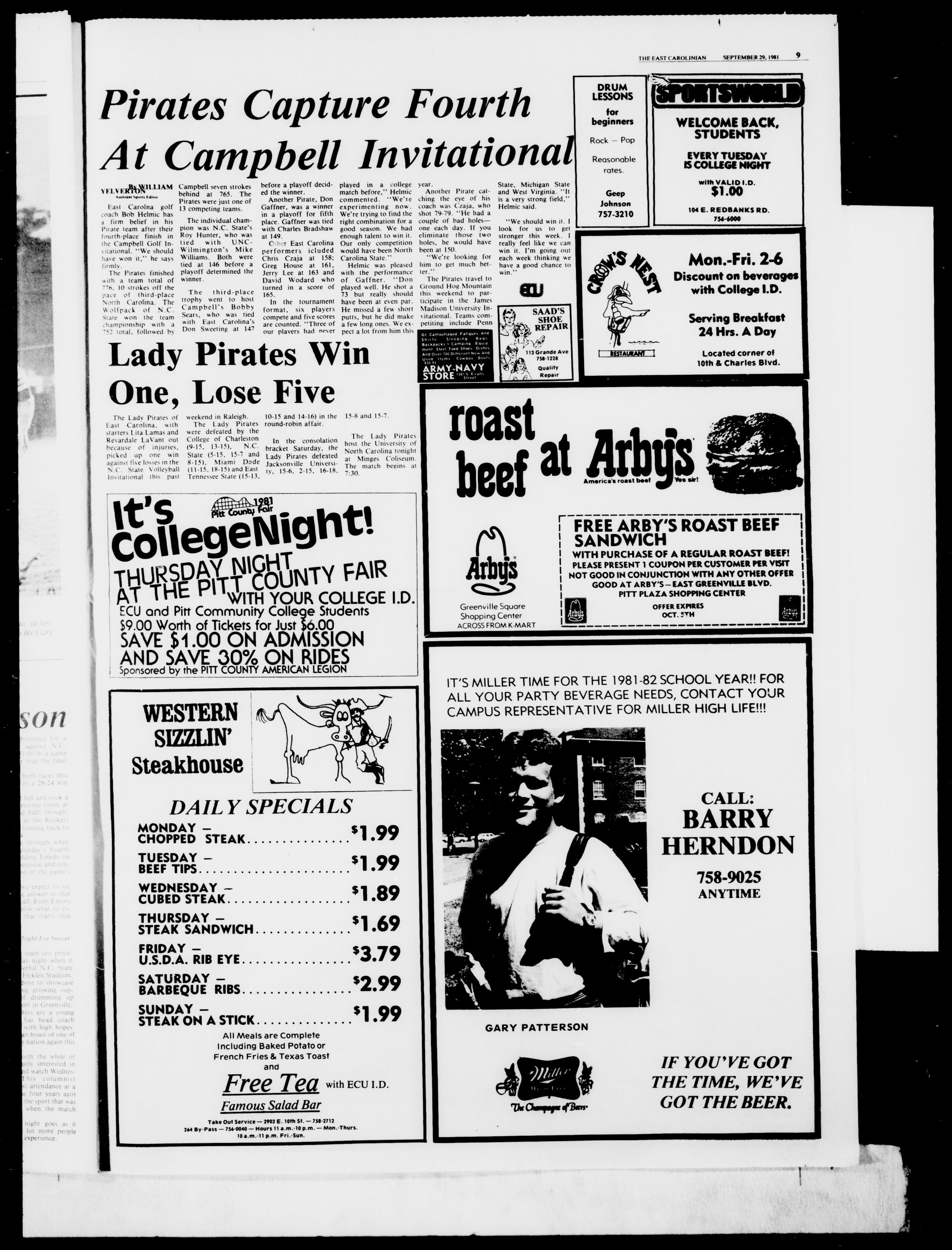 Tuesday, September 29, 1981 Greenville, North Carolina